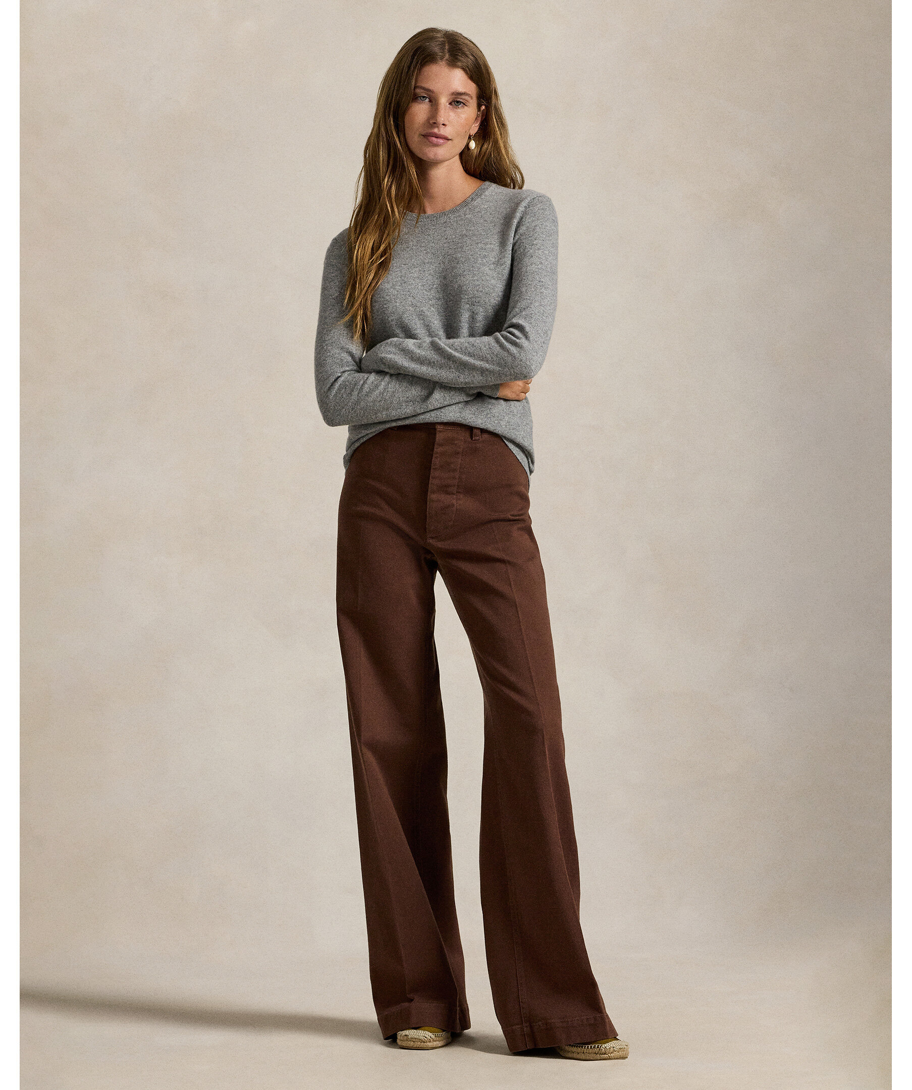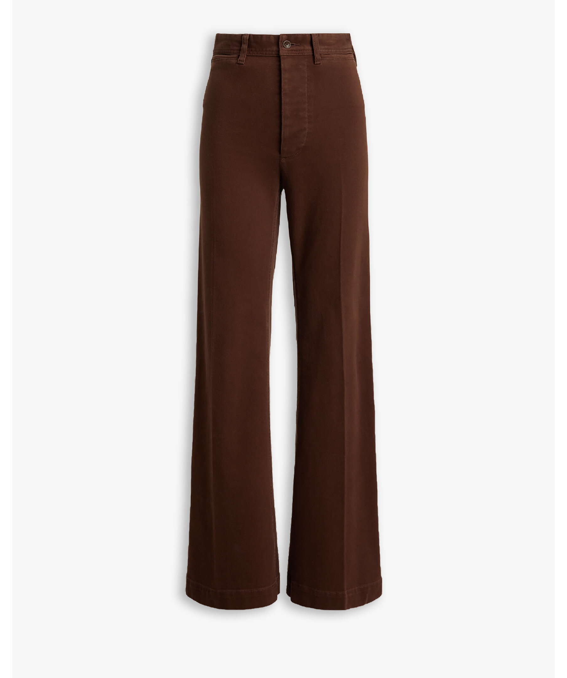 Rostbruna chinos med hög midja och utsvängd benvidd från Lauren Ralph Lauren. Detaljer som tydliga pressveck fram, sidofickor och bakficka med knapp ger funktionell och klassisk finish. Perfekta för både kontorsstil och mer avslappnade vardagsoutfits där du vill kombinera modern form med Lauren Ralph Laurens klassiska estetik.