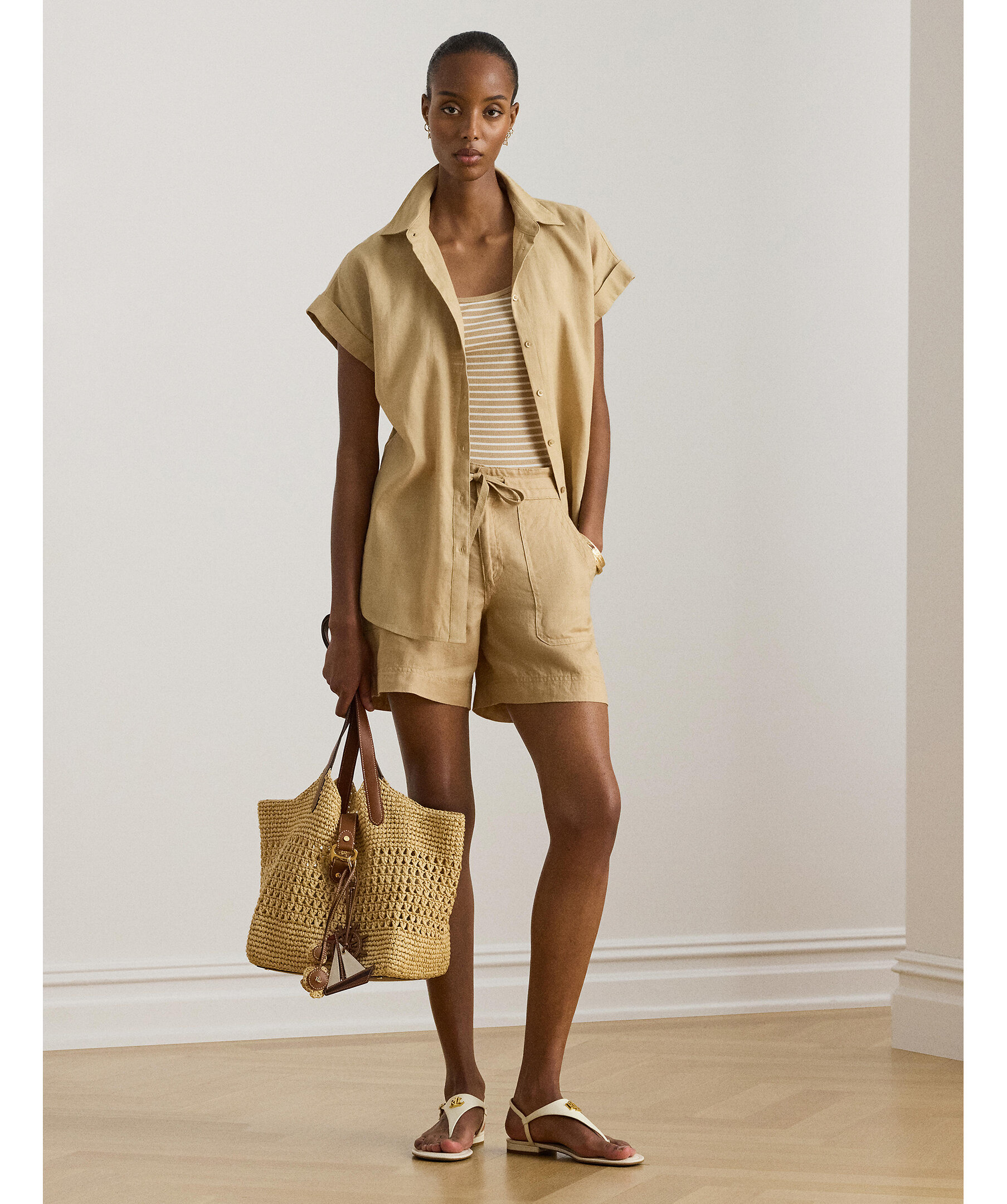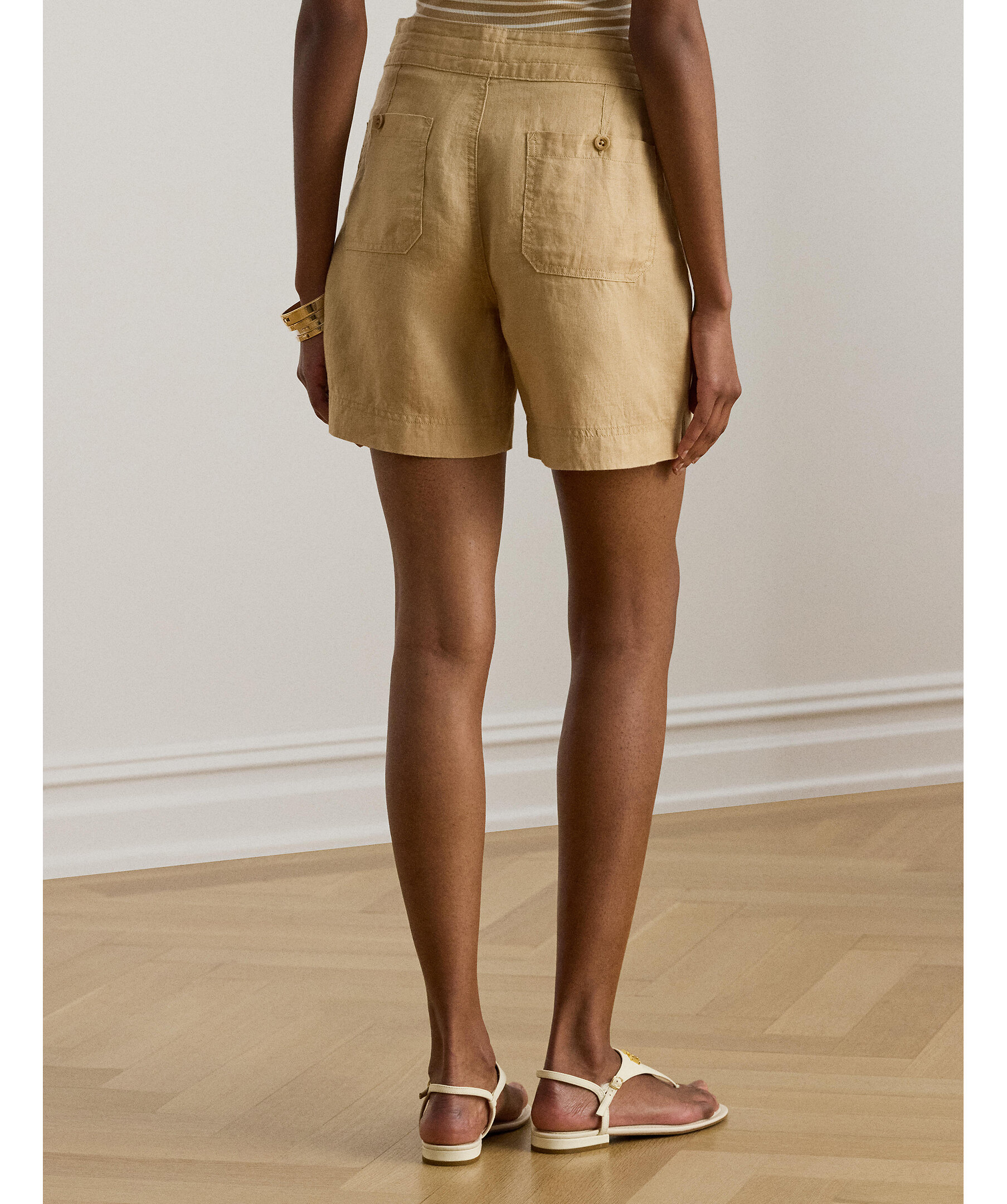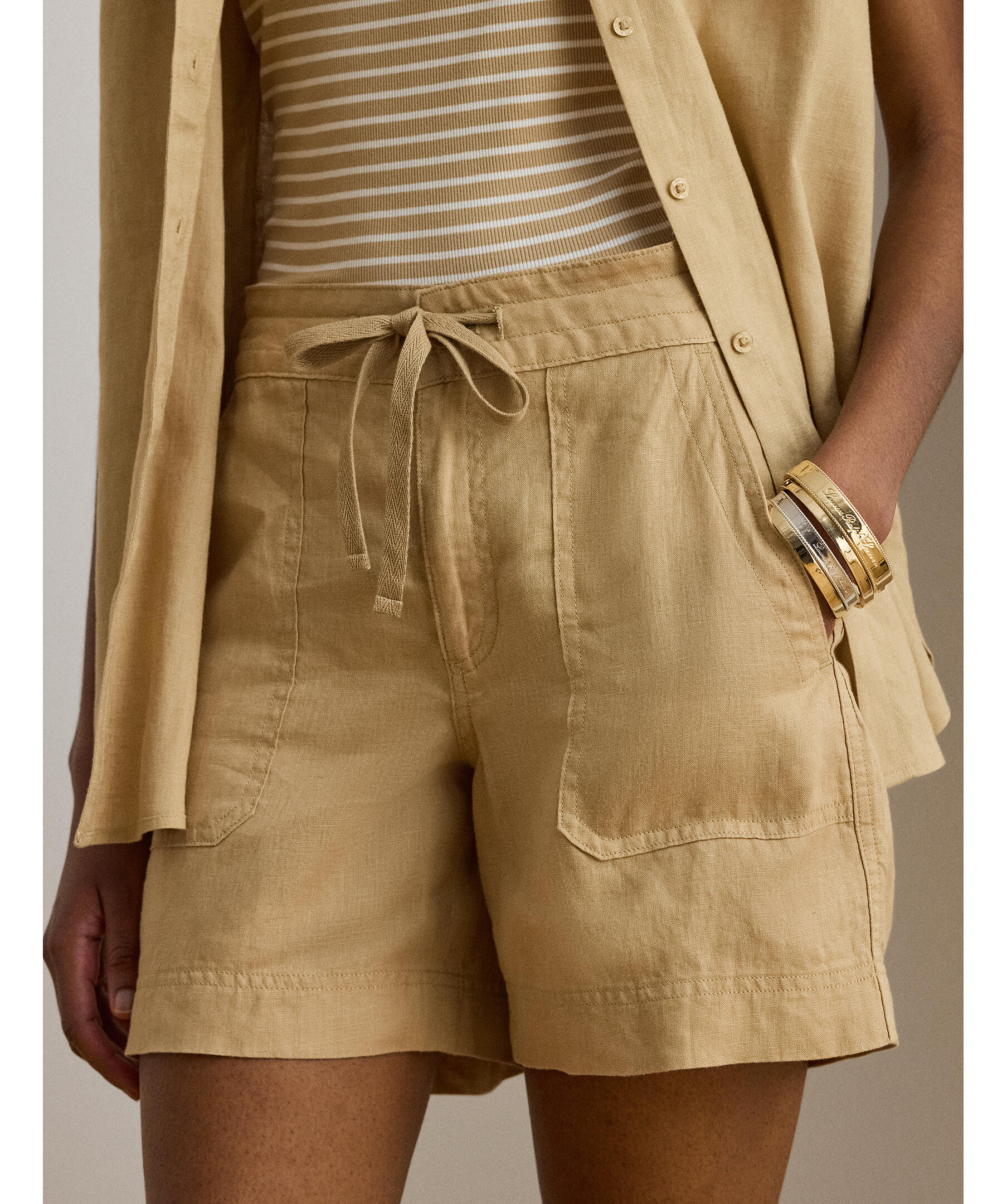 Shorts från Lauren Ralph Lauren i lättviktslinne med snörning i midjan.