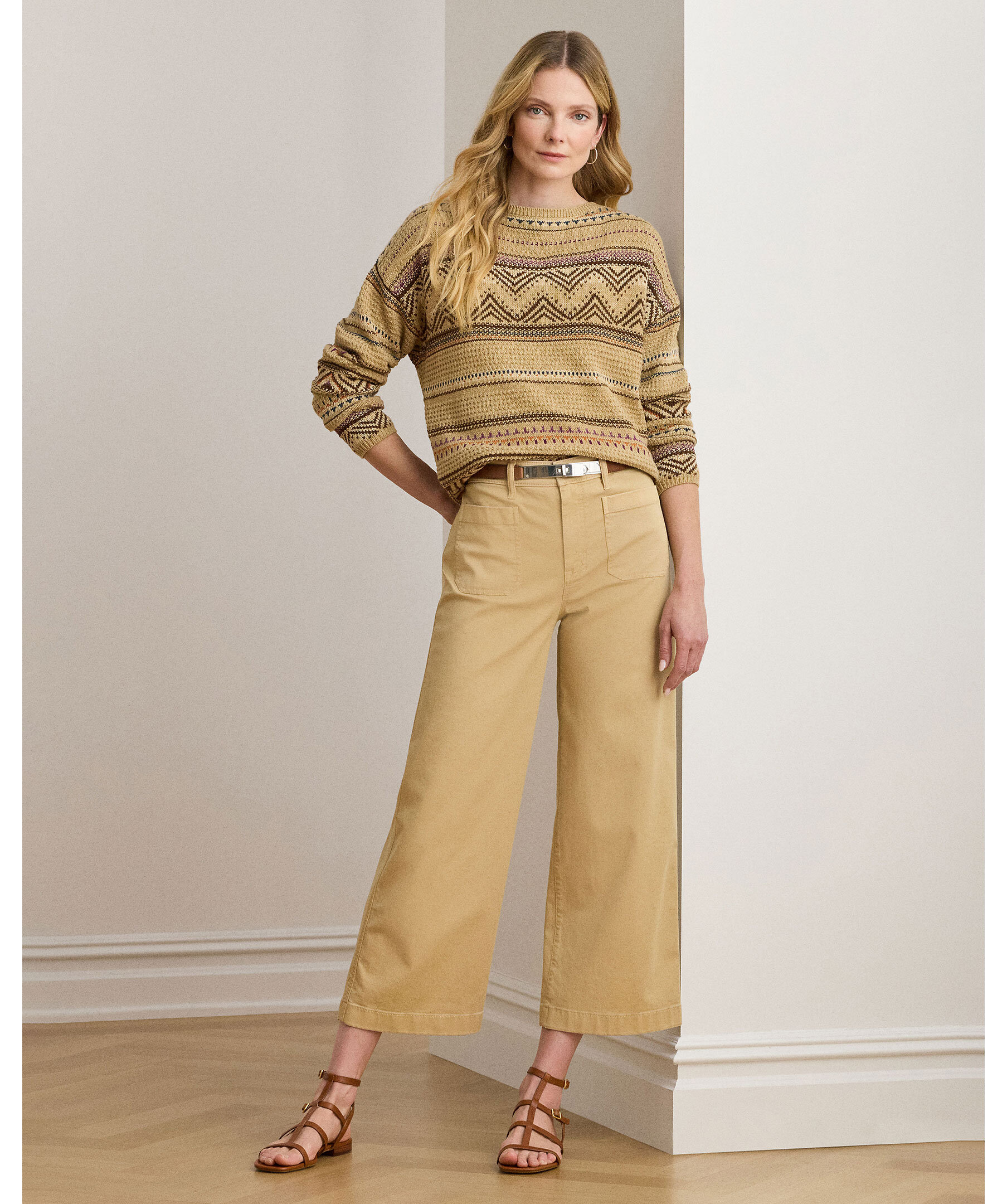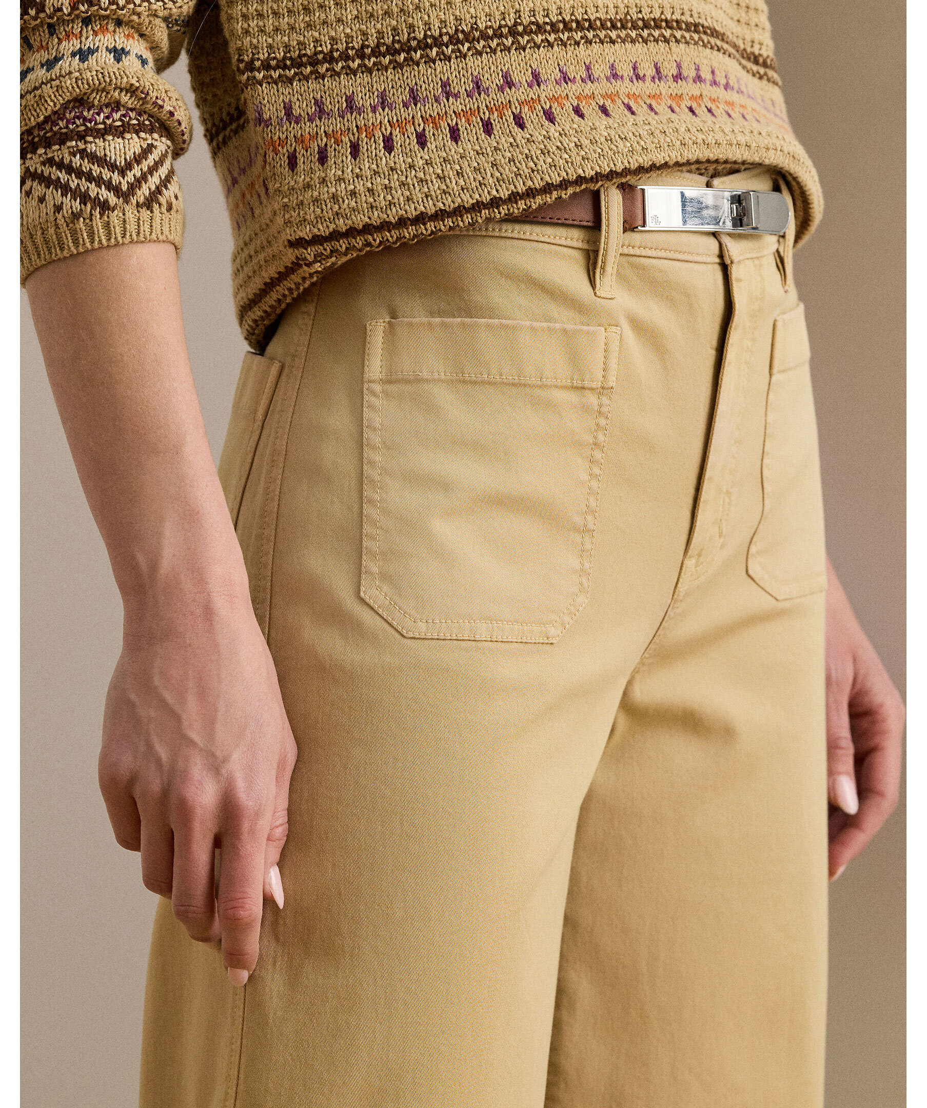 Högmidjade byxor från Lauren Ralph Lauren. Byxorna är gjorda i en stretchigt bomullsblandning och har vida och croppade byxben. Figurnära över höften och avslappnad passform över låret. Utrustade med bältesöglor, dragkedja och praktiska fickor.