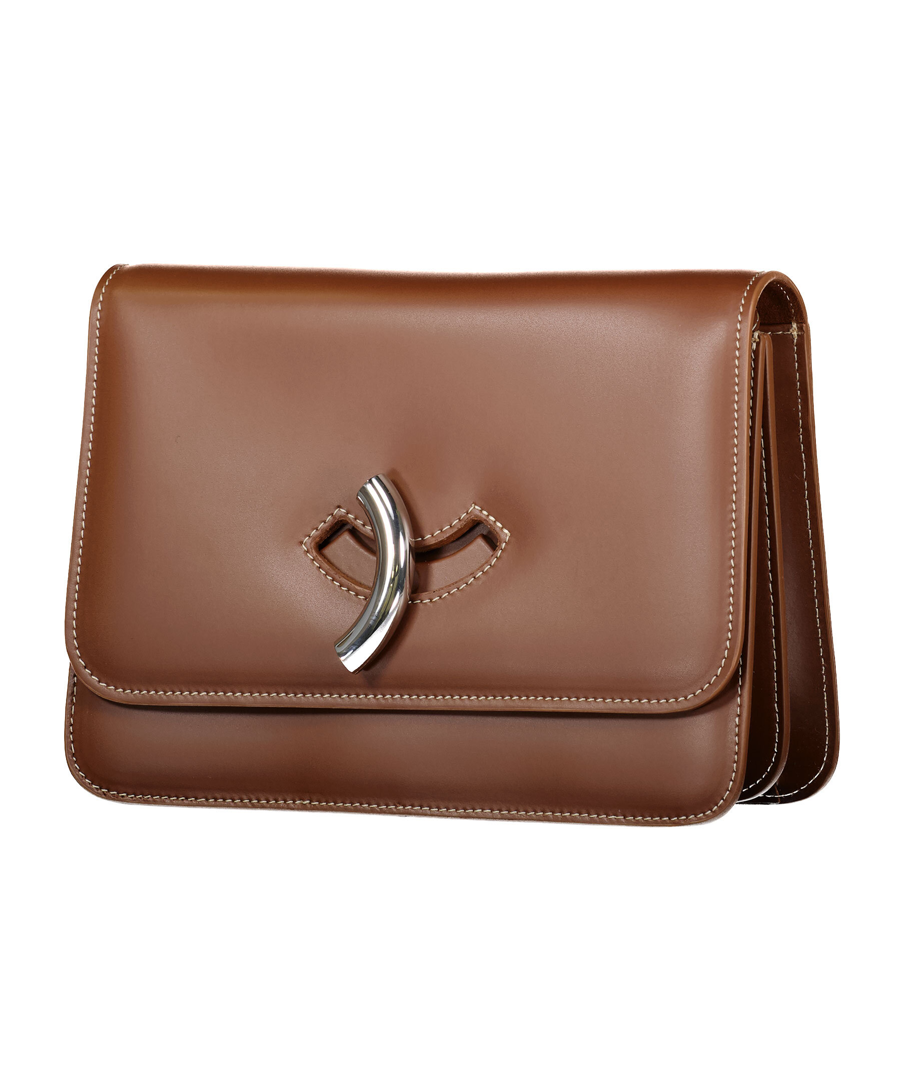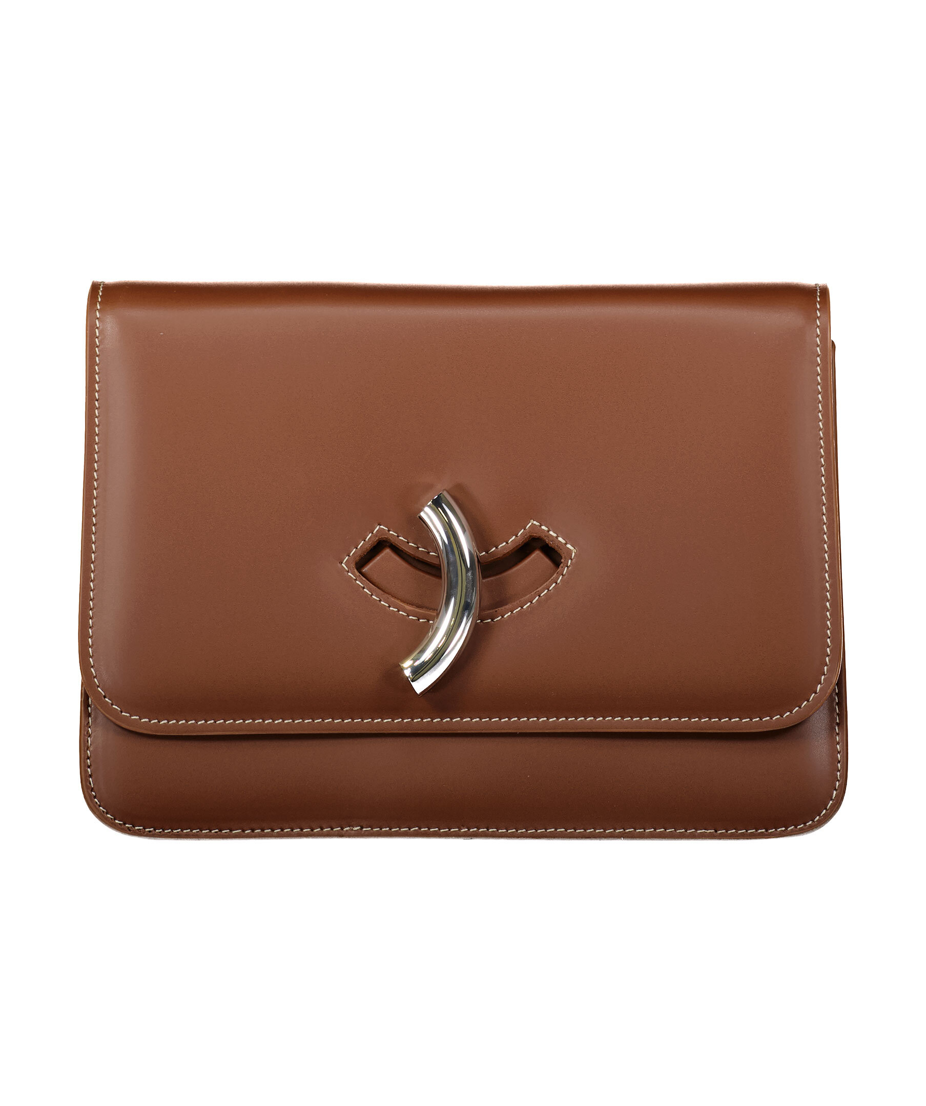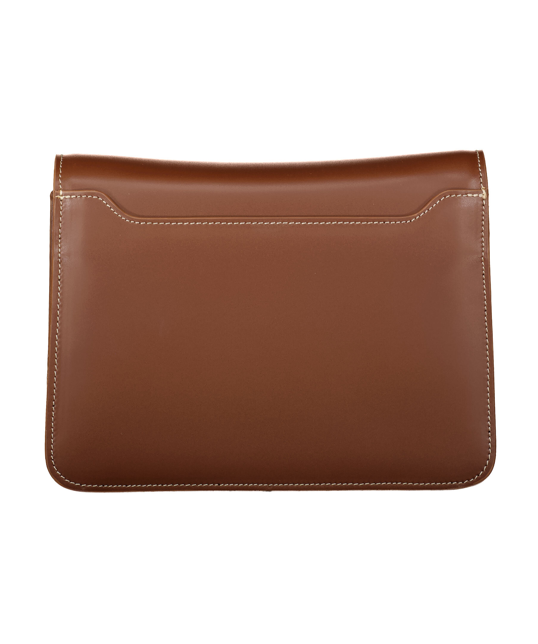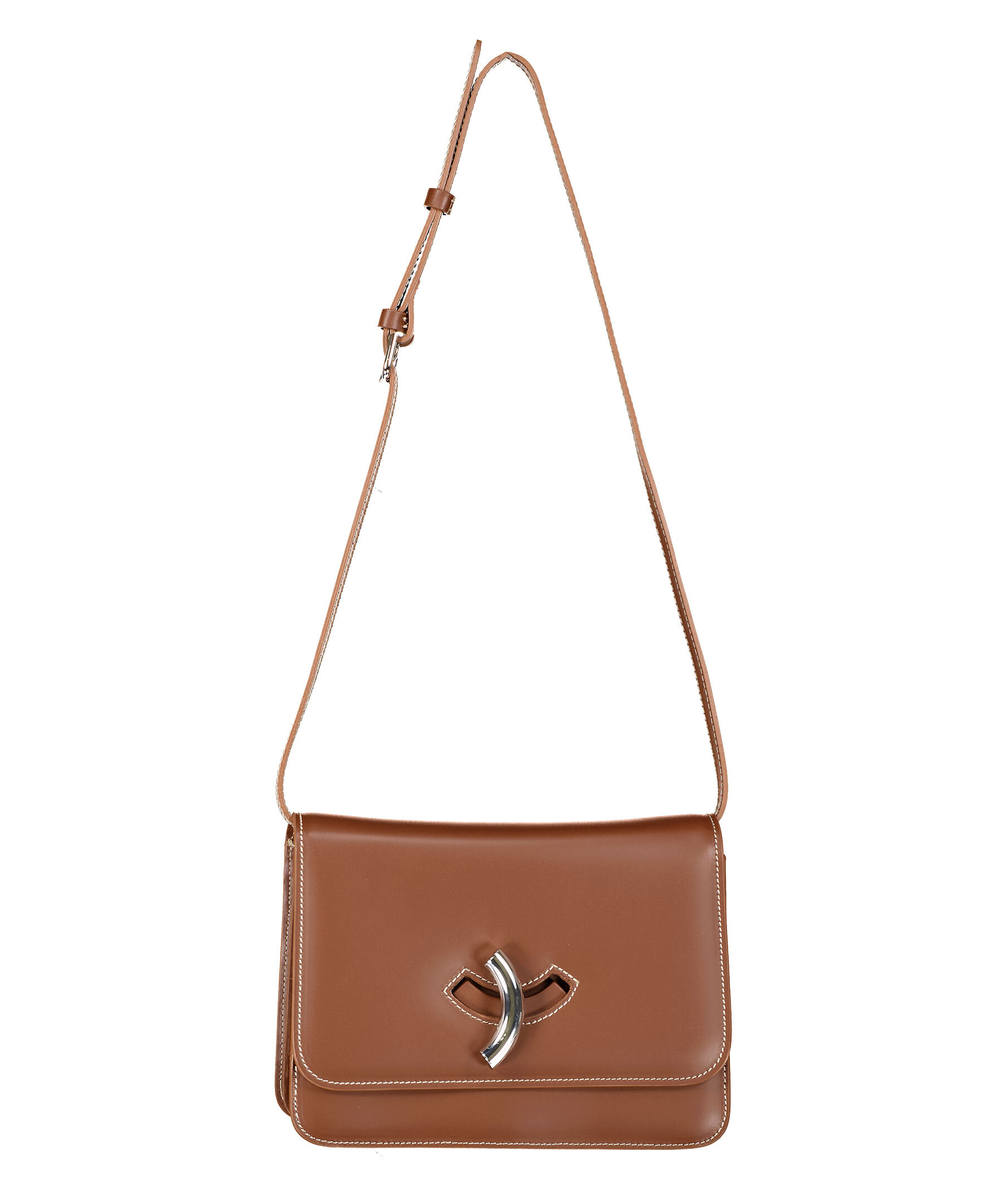 Brun handväska från Little Liffner. Stängs med lås i metall. Vita sömmar. Justerbar axelrem. Innerfack med som stängs med dragkedja. Ytterfack på väskans baksida. Tillverkad i läder. Väskans mått: H: 17 x W: 23 x D: 9 cm.