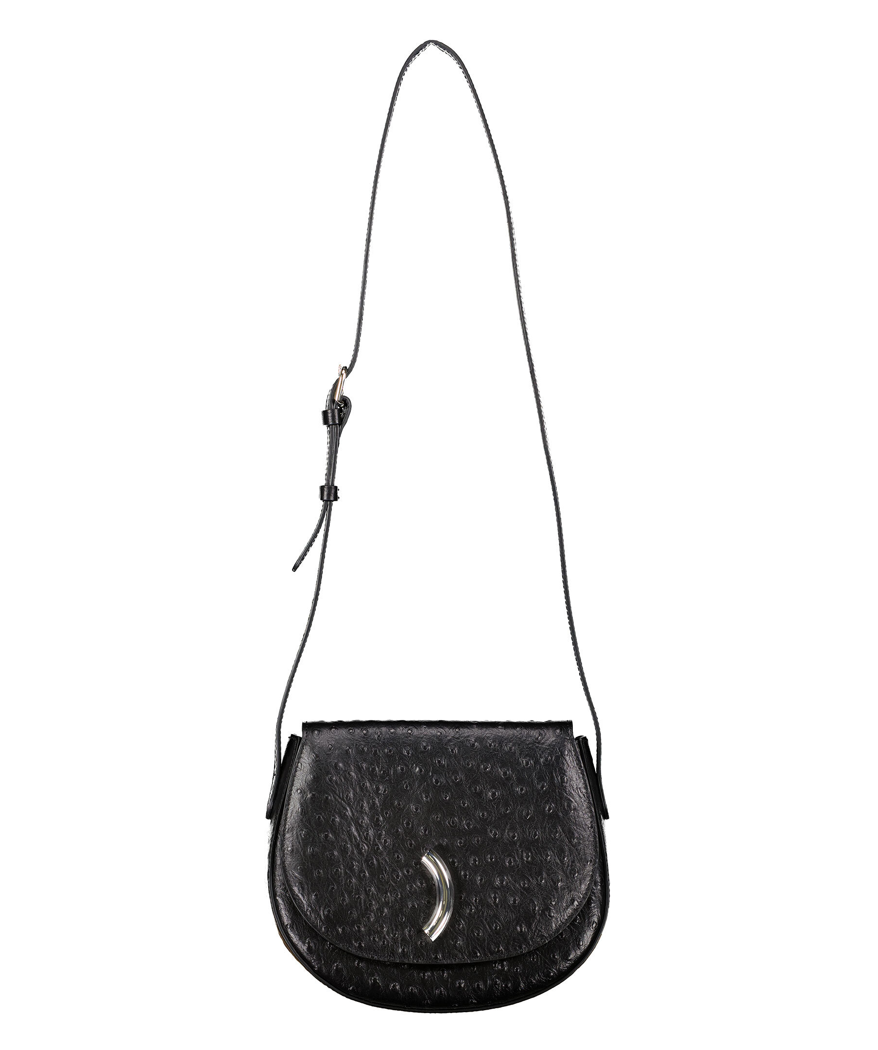 Svart väska från Little Liffner med embossat mönster. Justerbar axelrem. Stängs med lock. Innerfack. Silverfärgad detalj i metall framtill på väskans lock. Väskans mått: H 19 cm B 23 cm D 6 cm.