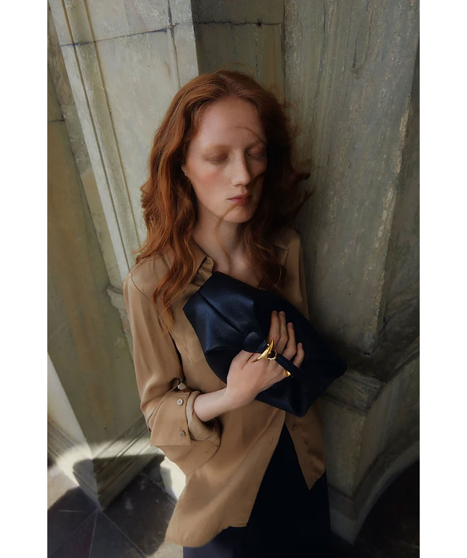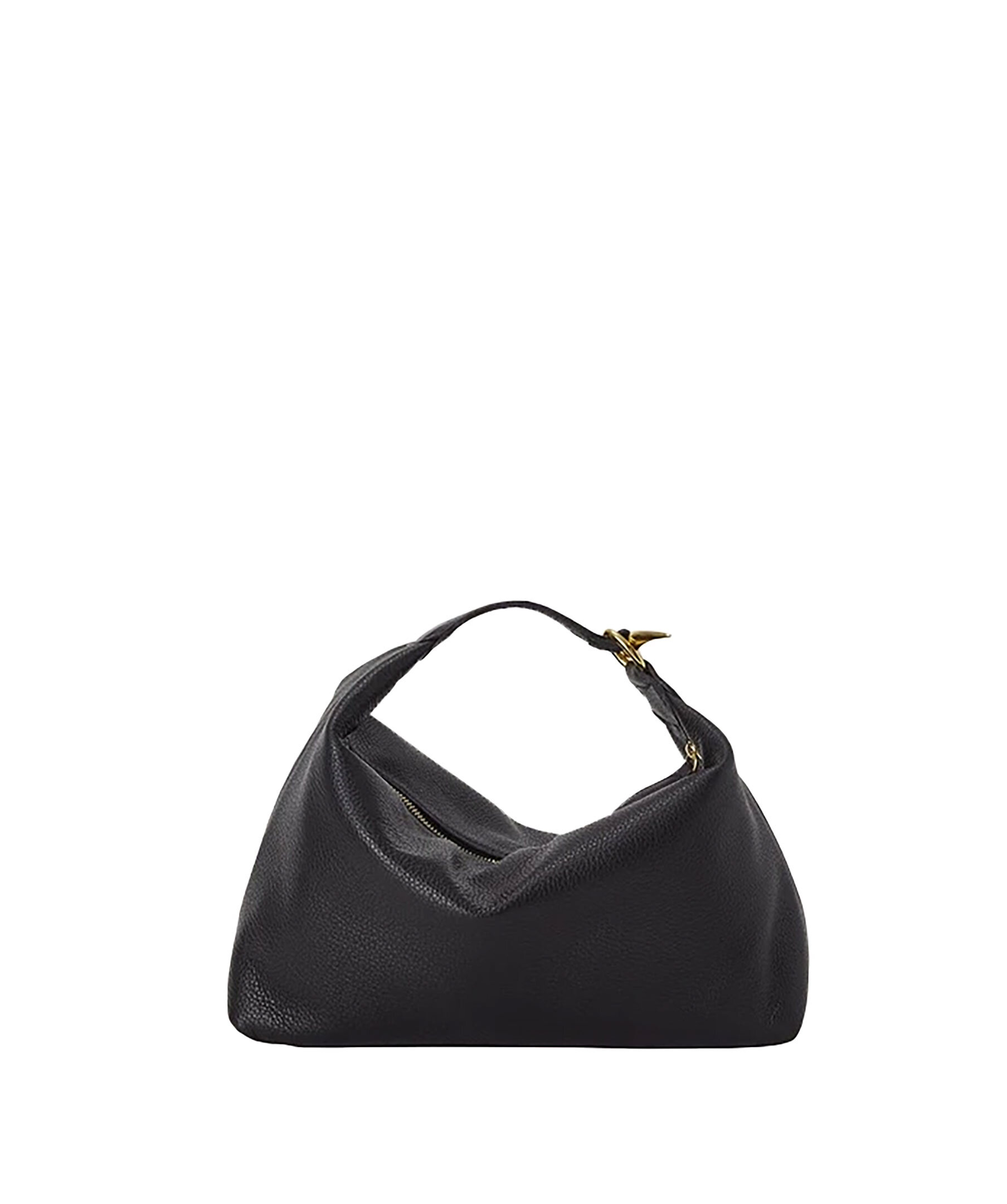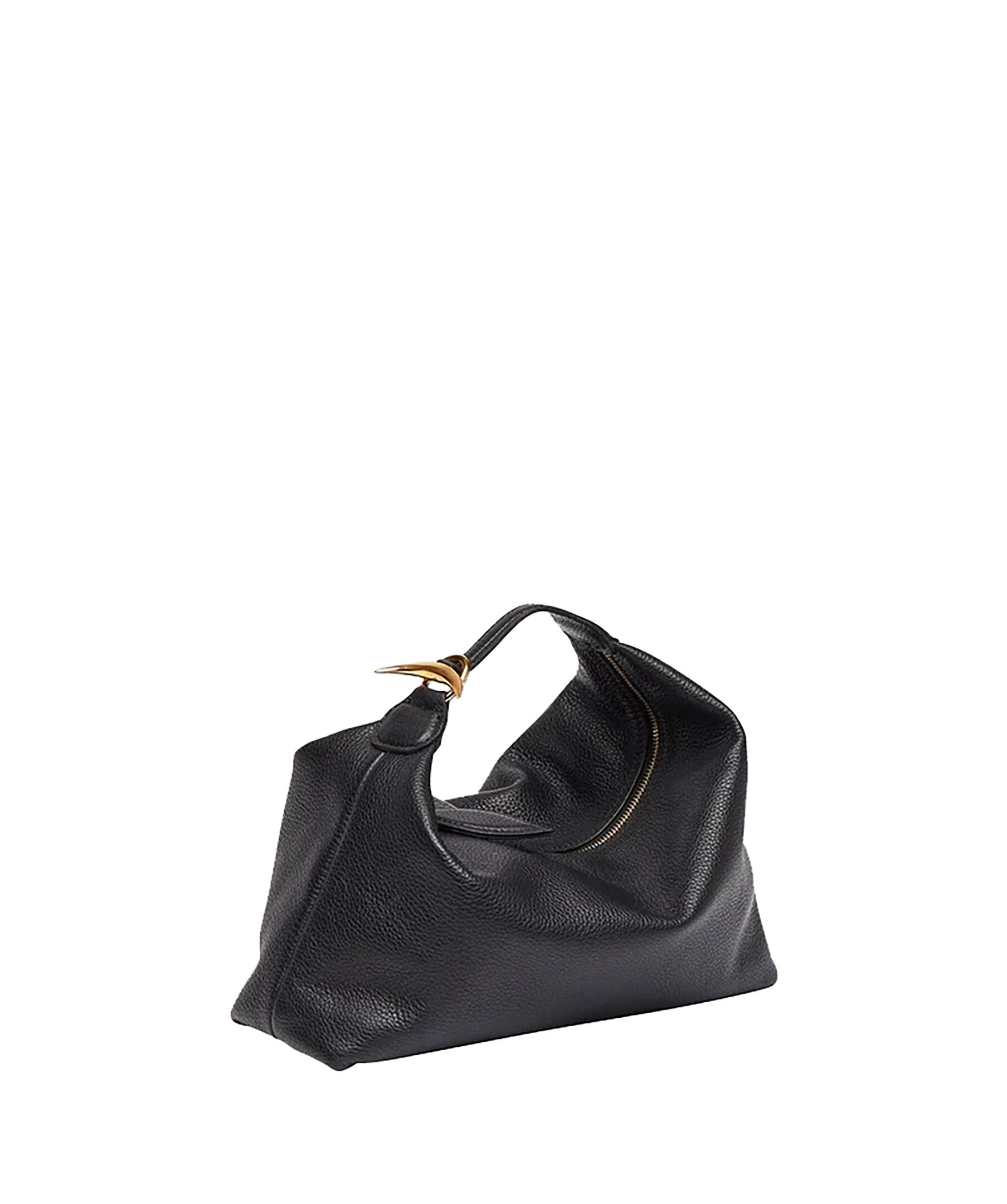Svart handväska i läder från Little Liffner. Huvudfacket stängs med dragkedja. Guldfärgad detalj i metall på väskans handtag. Väskans mått: H: 16 x W: 25 x D: 10 cm