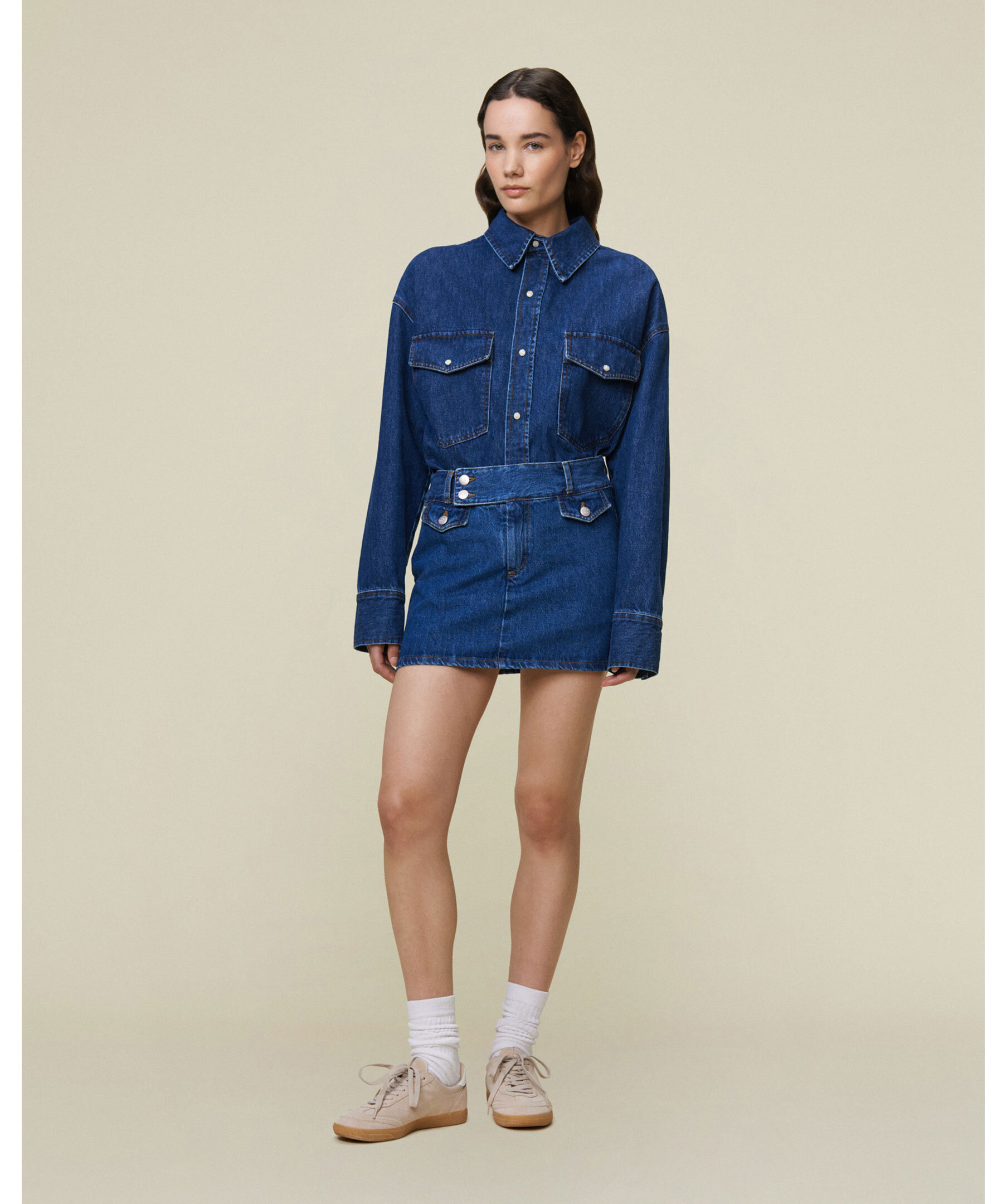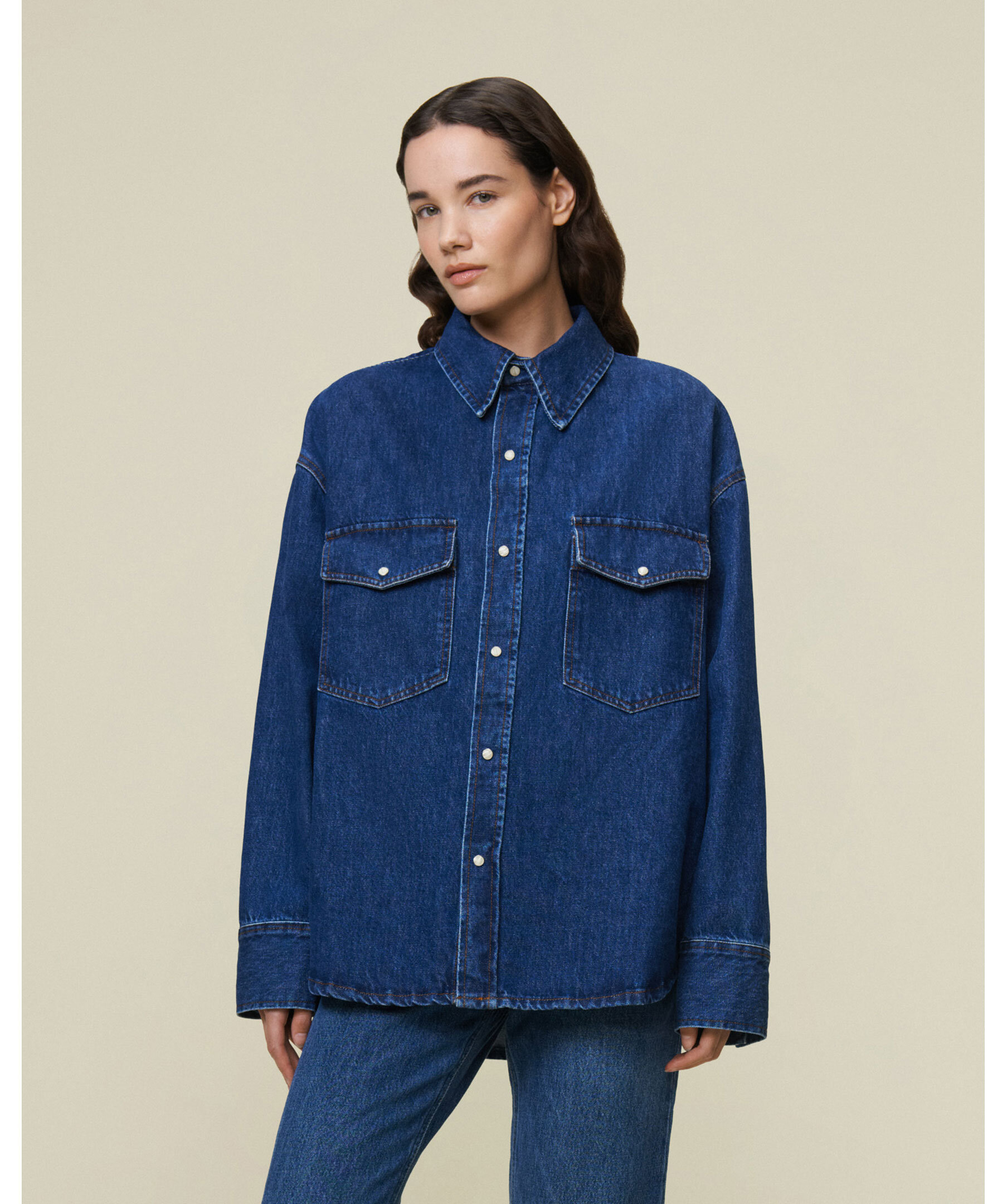 Blå western inspirerad denimskjorta från Lois. Skjortan har två bröstfickor med ficklock. Avslappnad passform.