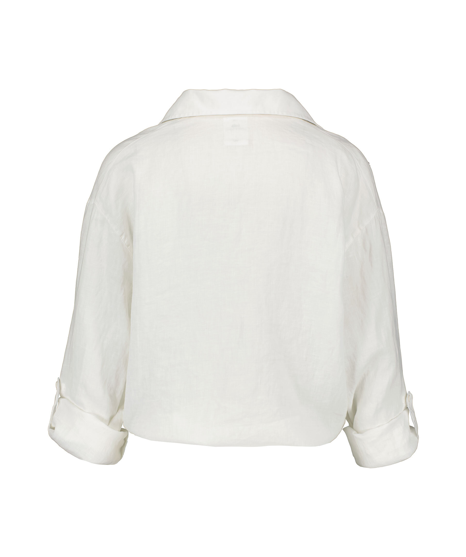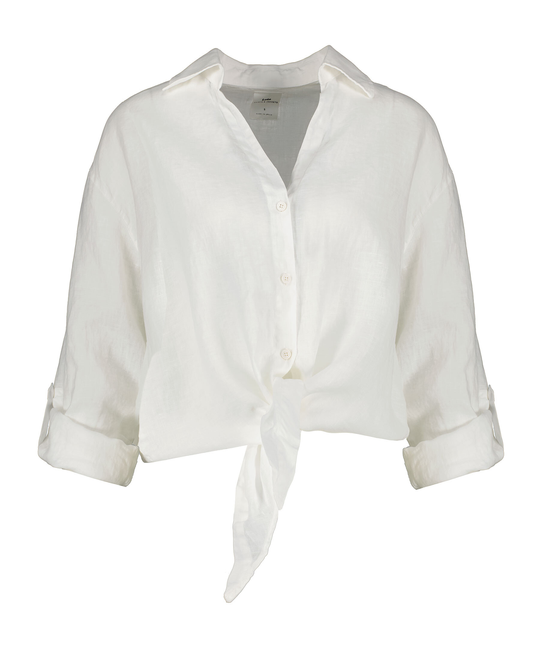 Vit linneskjorta från Lois. Skjortan har v-ringad hals med knappar som avslut samt möjlighet till knytning vid plaggslut. Uppvikta ärmar med knapp. Tillverkad i 100% linne.