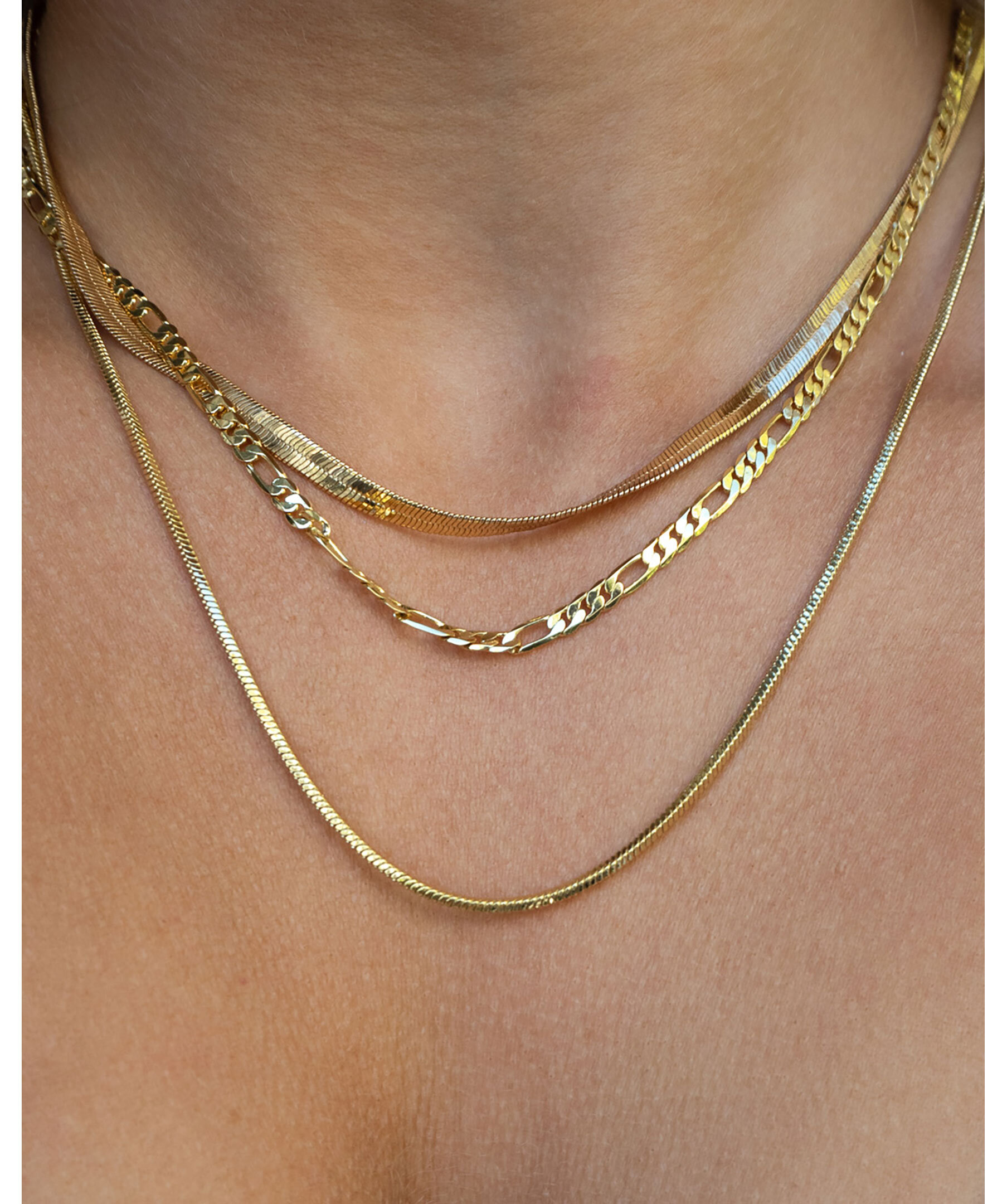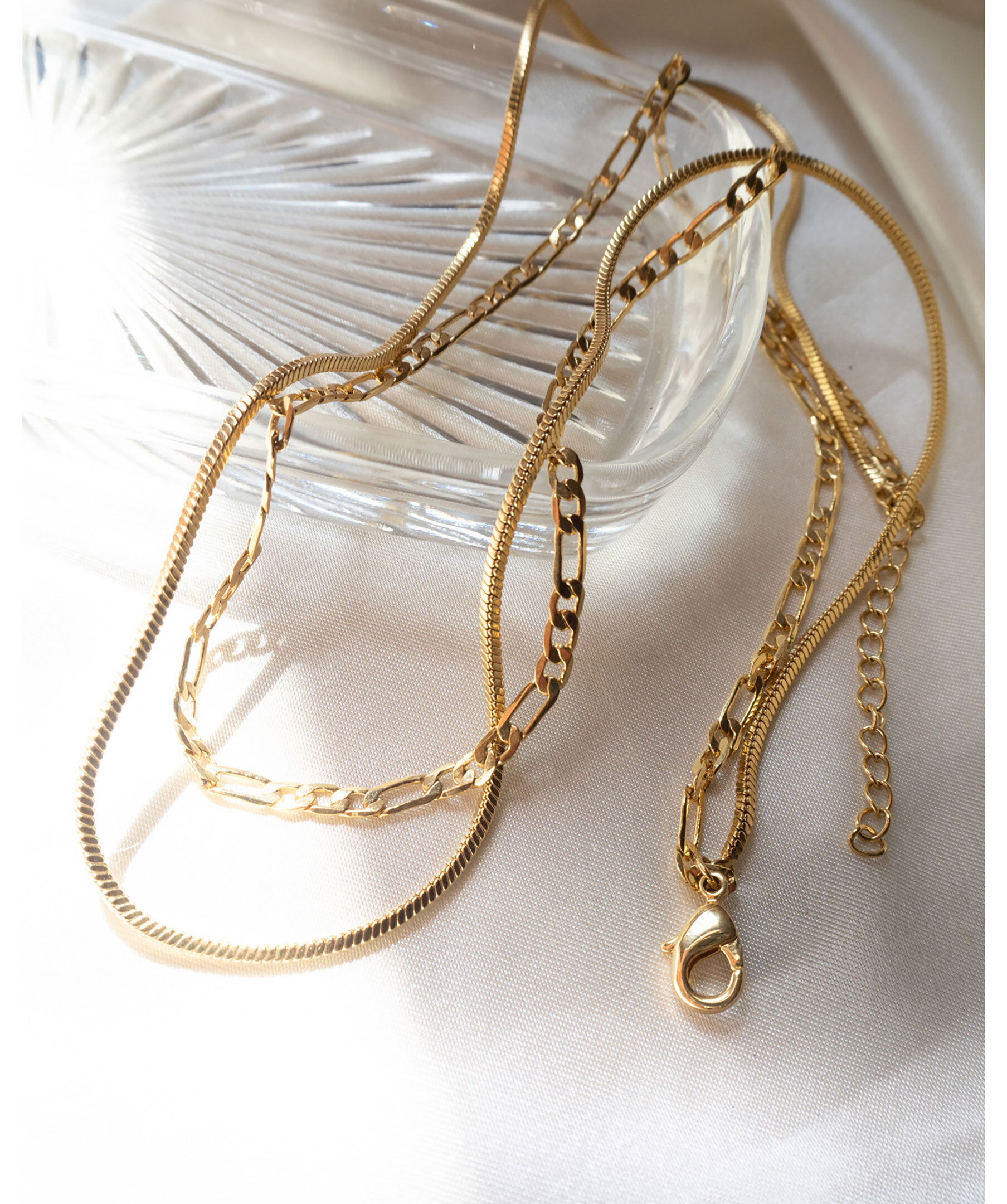 Guldfärgathalsband med två tunna kedjor från Luv Aj. En kedja i figaro modell och en fiskbenskedja.