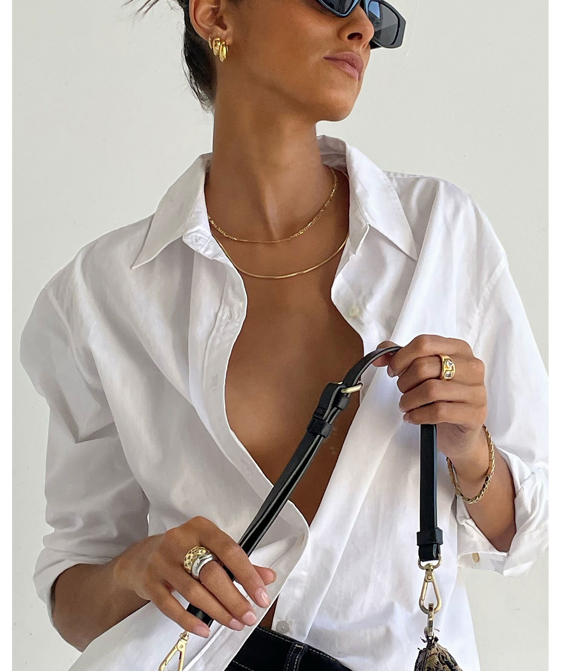Kedjorna är 40 och 45 cm långa med en 5 cm lång förlängningskedja. Tillverkad av guldpläterad mässing och har ett hummerklolås. Halsbandet är 100% nickelfritt och kadmiumfritt.