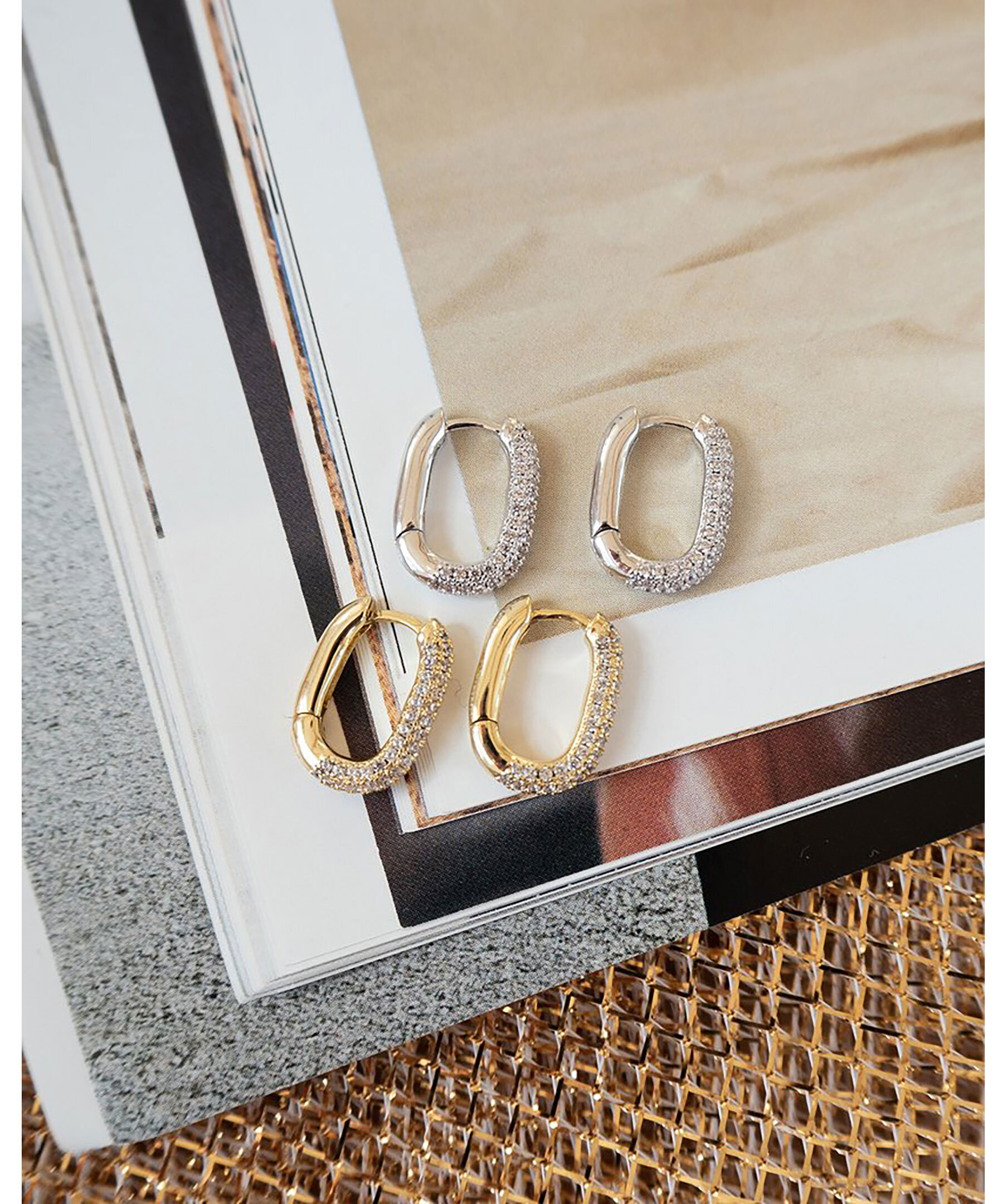 Silverfärgade, enkla kedjelänkformade örhängen med stenar fram från Luv Aj. Perfekta för vardagsbruk. Tillverkade av silverpläterad mässing och Cubic Zirconia stenar. Tryckknappstängning som är böjd för komfort.