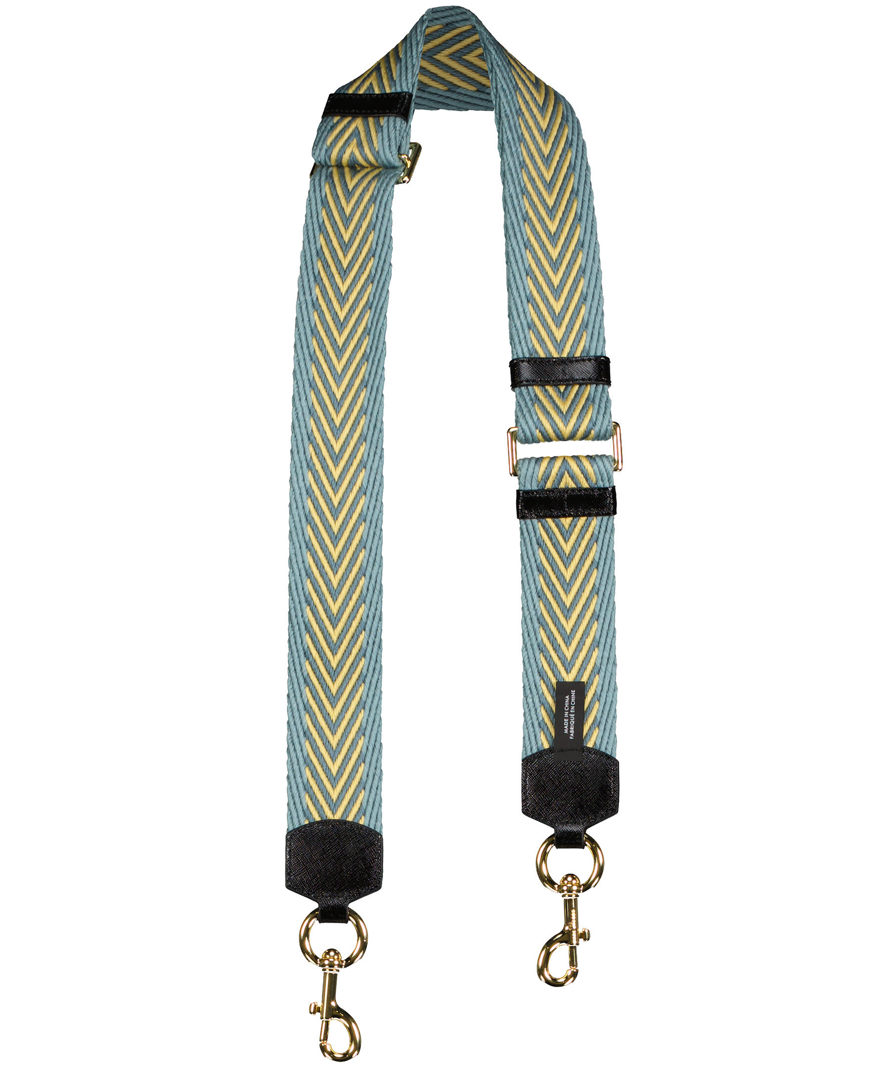 Blå och beige mönstrad justerbar vävd axelrem från Marc Jacobs. Med konstläder detaljer och guldfärgade spännen. 6 cm bred