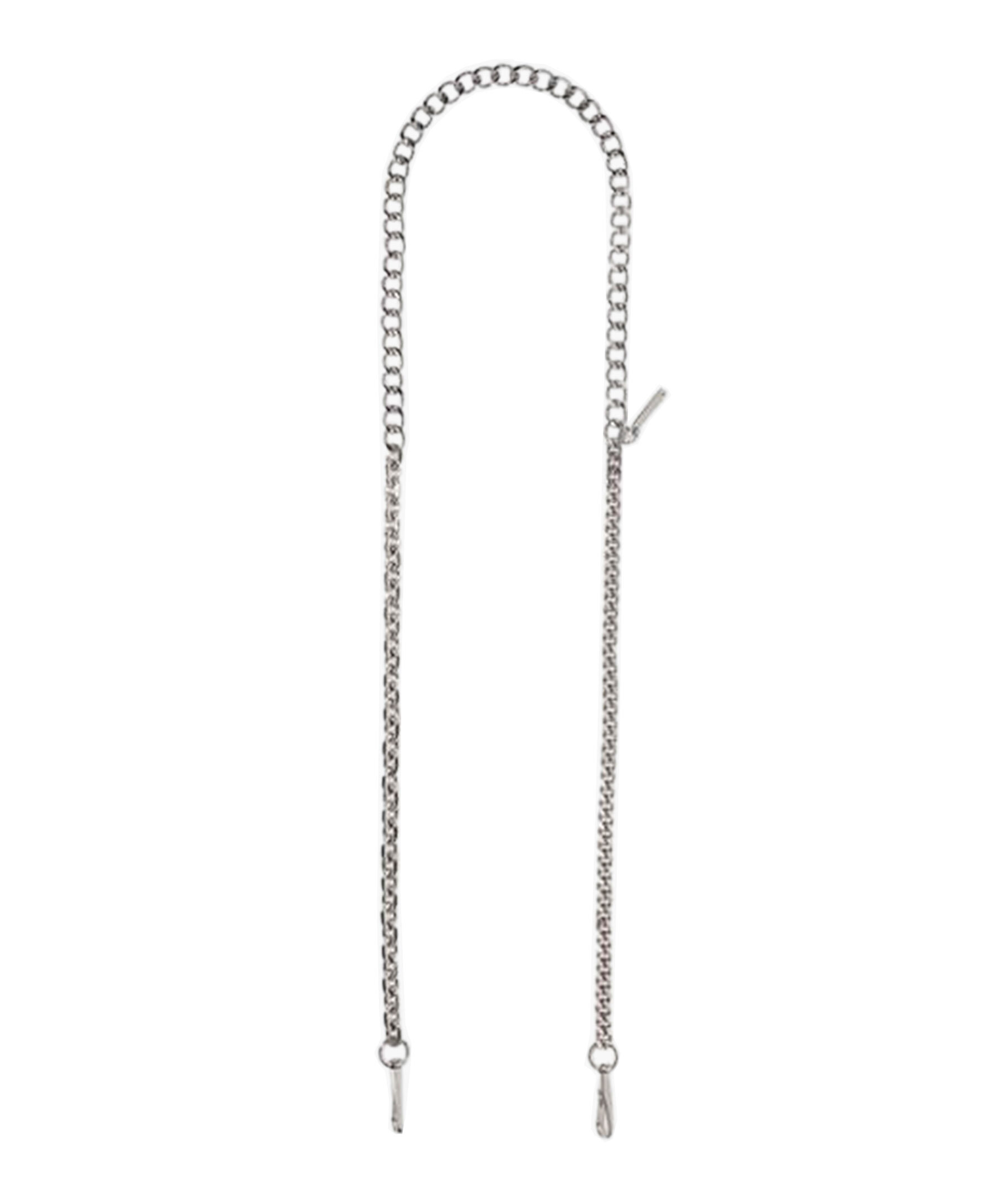 Silvrig kedja till handväskan från Marc Jacobs. Tillverkad i järn och zink. Dubbla silverfärgade spännen. Mått: 125 cm L x 2 cm B.