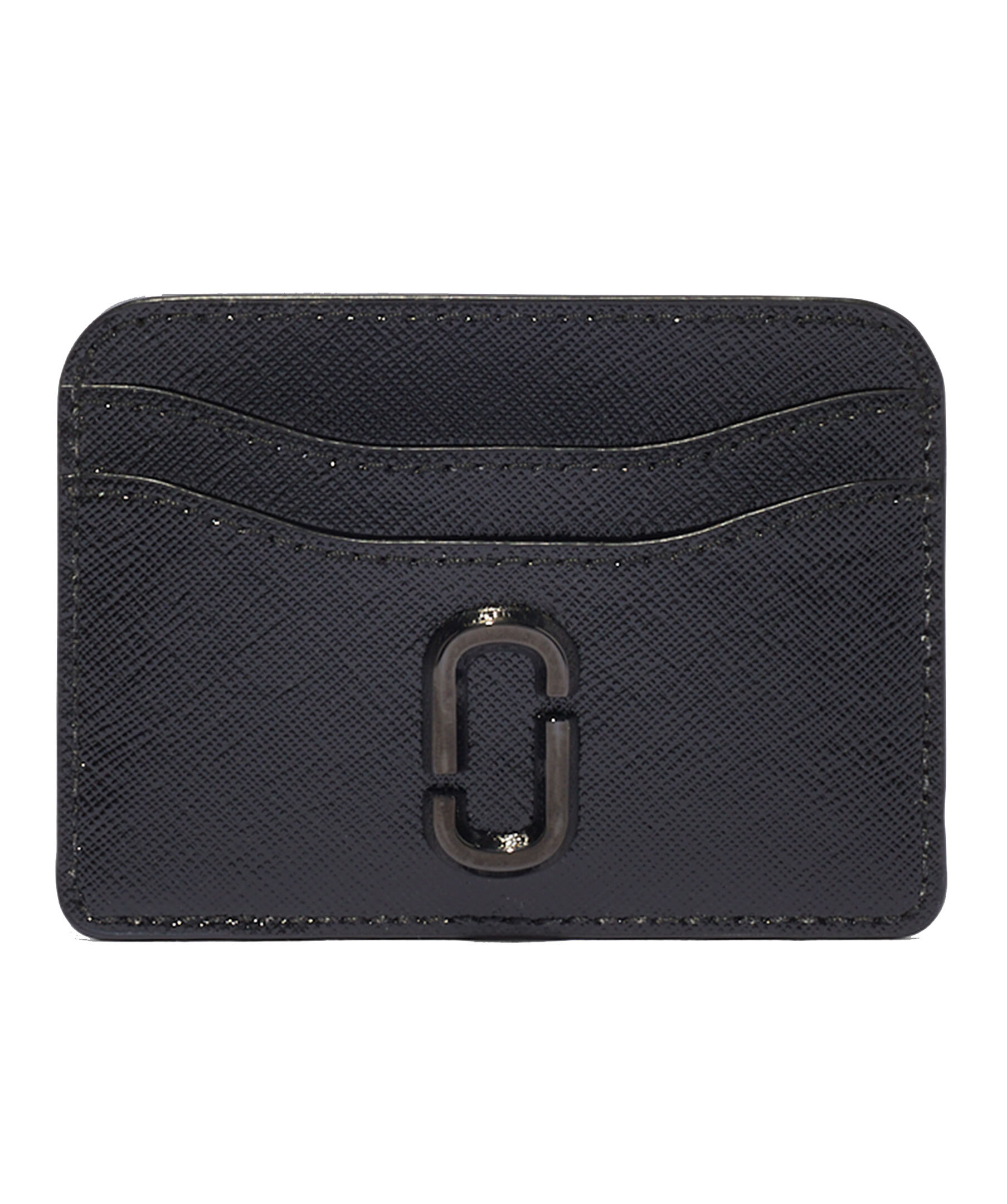 Svart korthållare i läder från Marc Jacobs. Två fickor på vardera sida och svart märke i plast på framsidan.