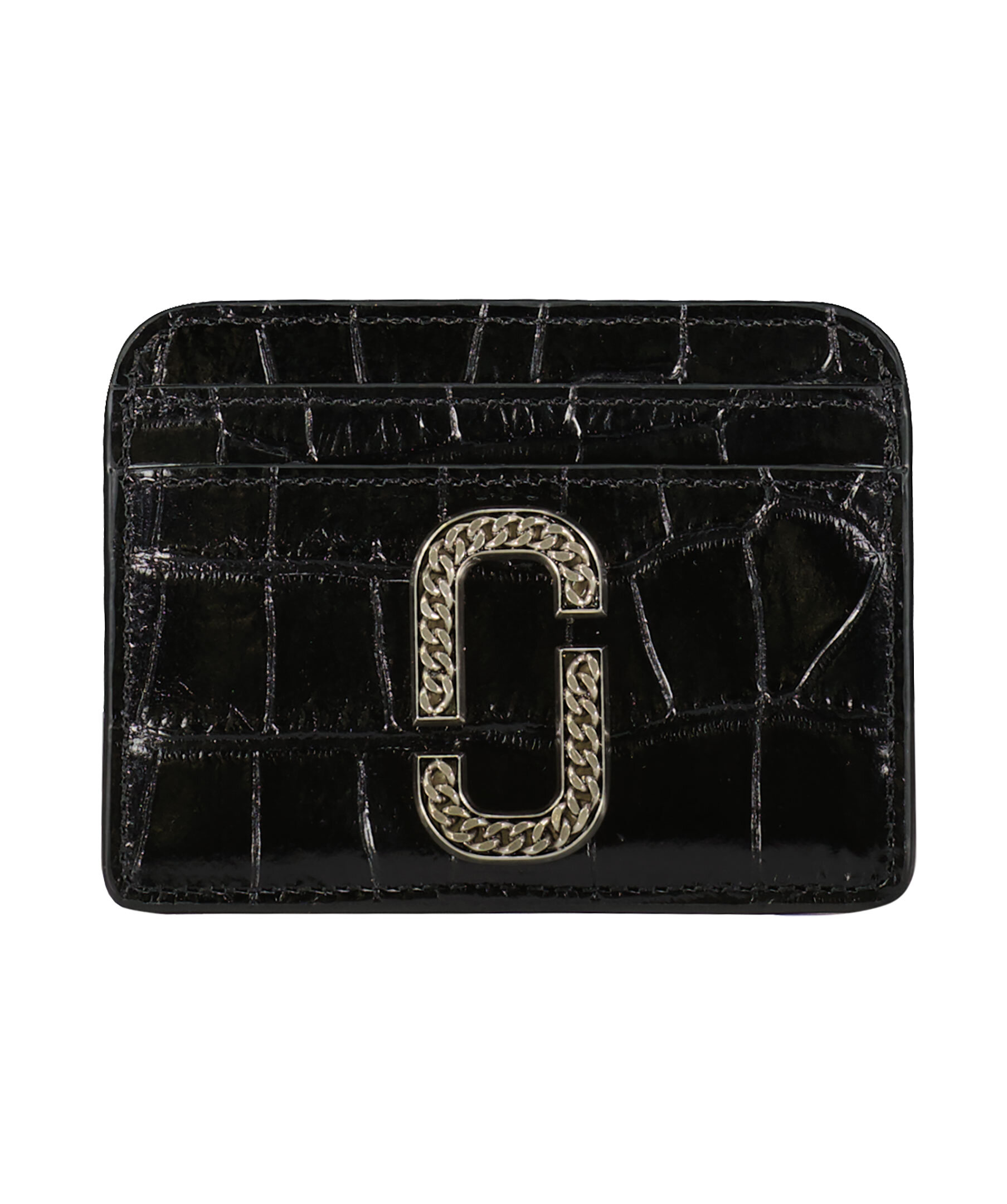 Svart korthållare i läder från Marc Jacobs. Krokodiltextur på lädret och logotyp fram med kedja i. tillverkad i 100 % läder. Fyra kortfack, två på varje sida och ett fack i mitten. Mått: 10 cm L x 7 cm H x 0,5 cm D.