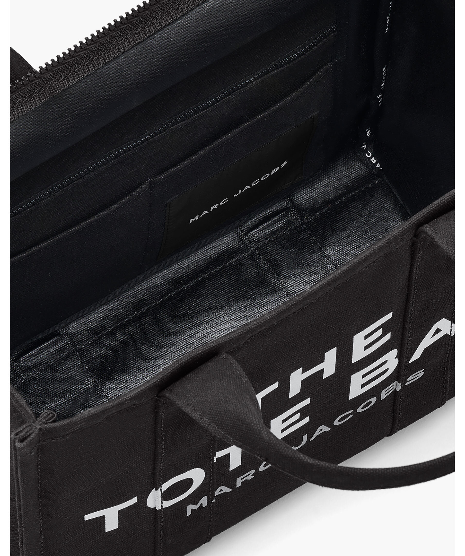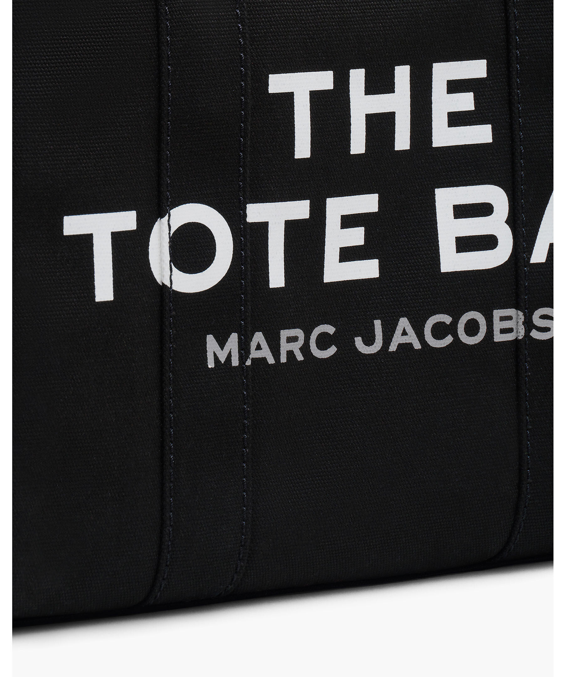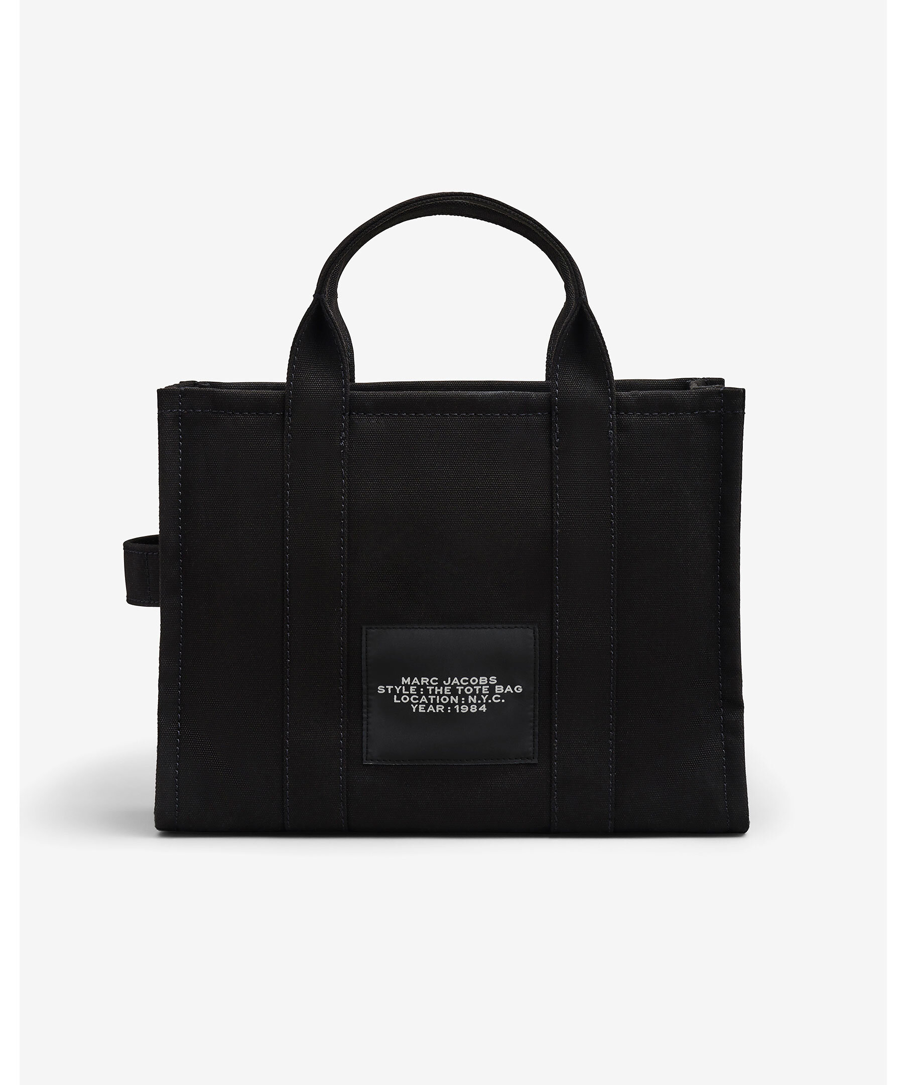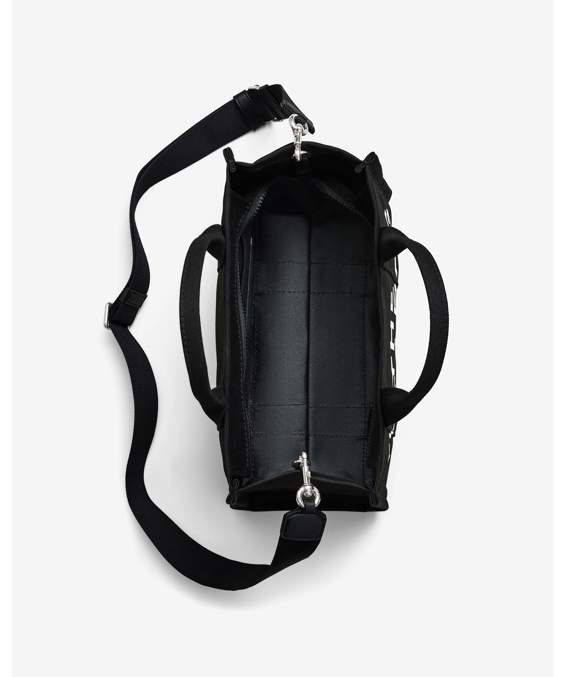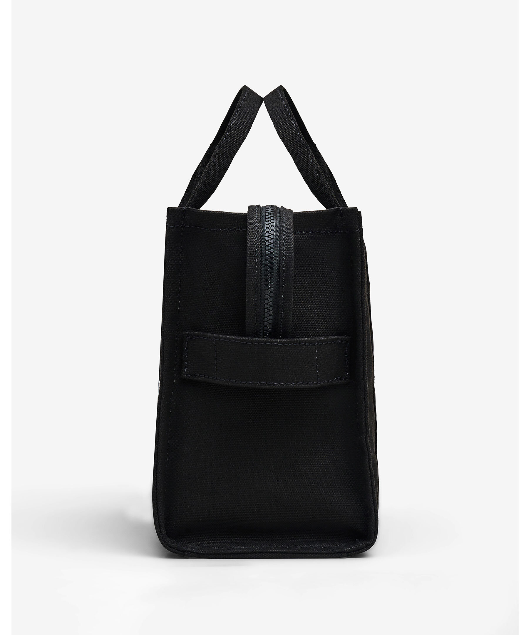 Svart, canvas-tote i bomull från Marc Jacobs. Tryckt logotyp fram och liten patch med logotyp på baksidan. Stängs med blixtlås och har en innerficka med blixtlås samt två mindre öppna fickor. Axelband tillkommer. Mått: 34cm L x 15cm D x 27cm H, handtag 12cm och axelrem 69cm.