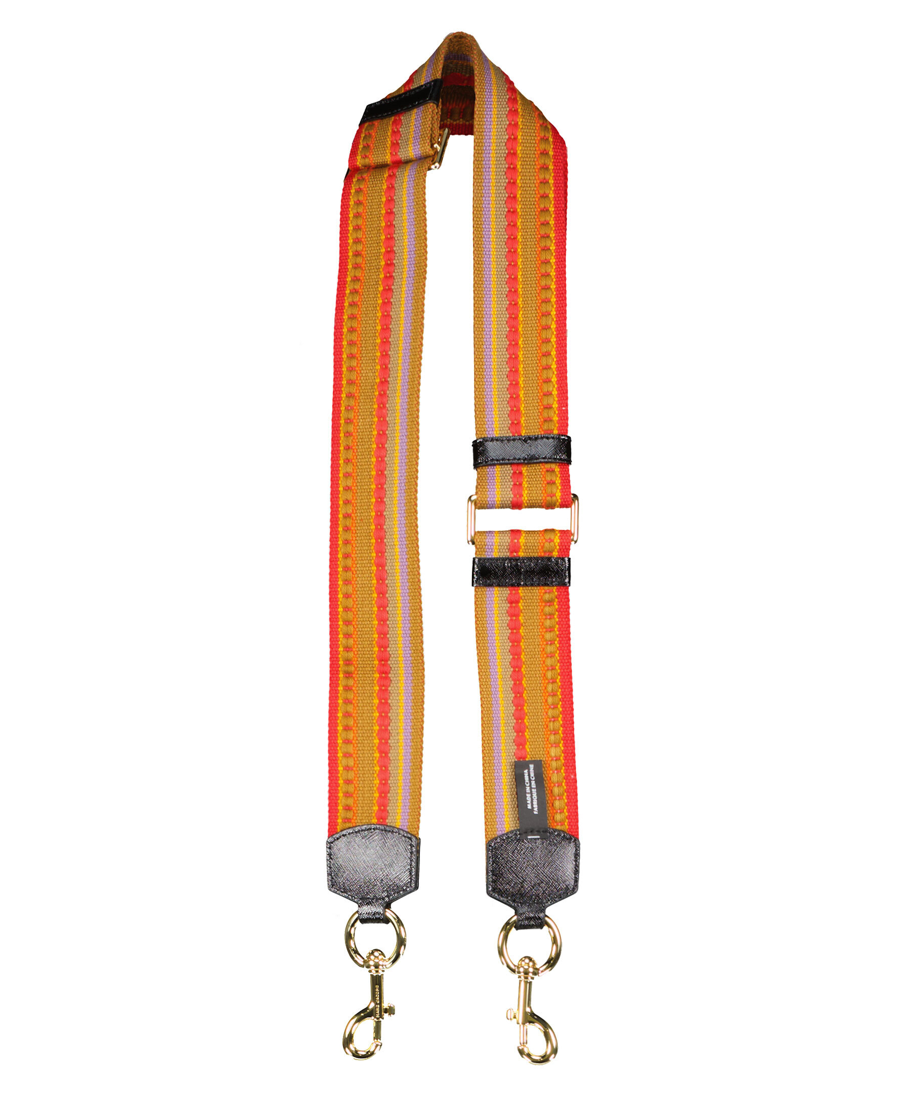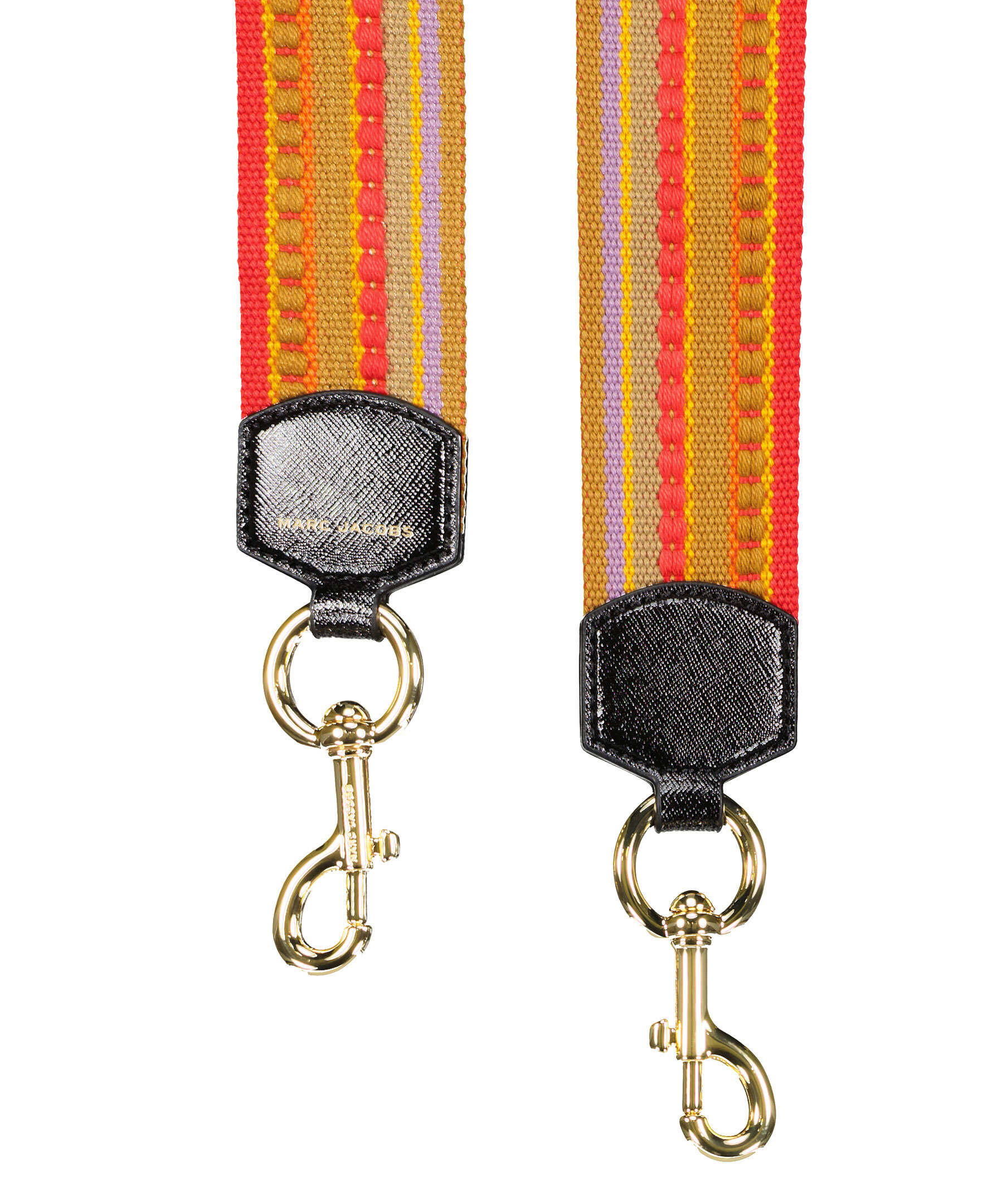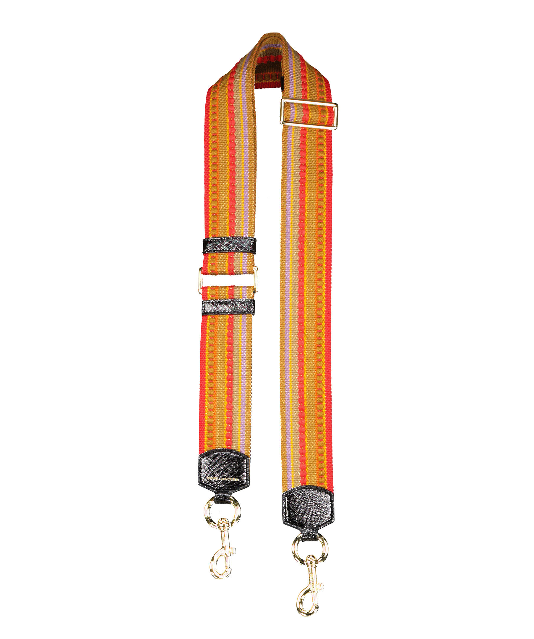 Beige, rosa, gul och orange mönstrad justerbar vävd axelrem från Marc Jacobs. Med konstläder detaljer och guldfärgade spännen. 5 cm bred