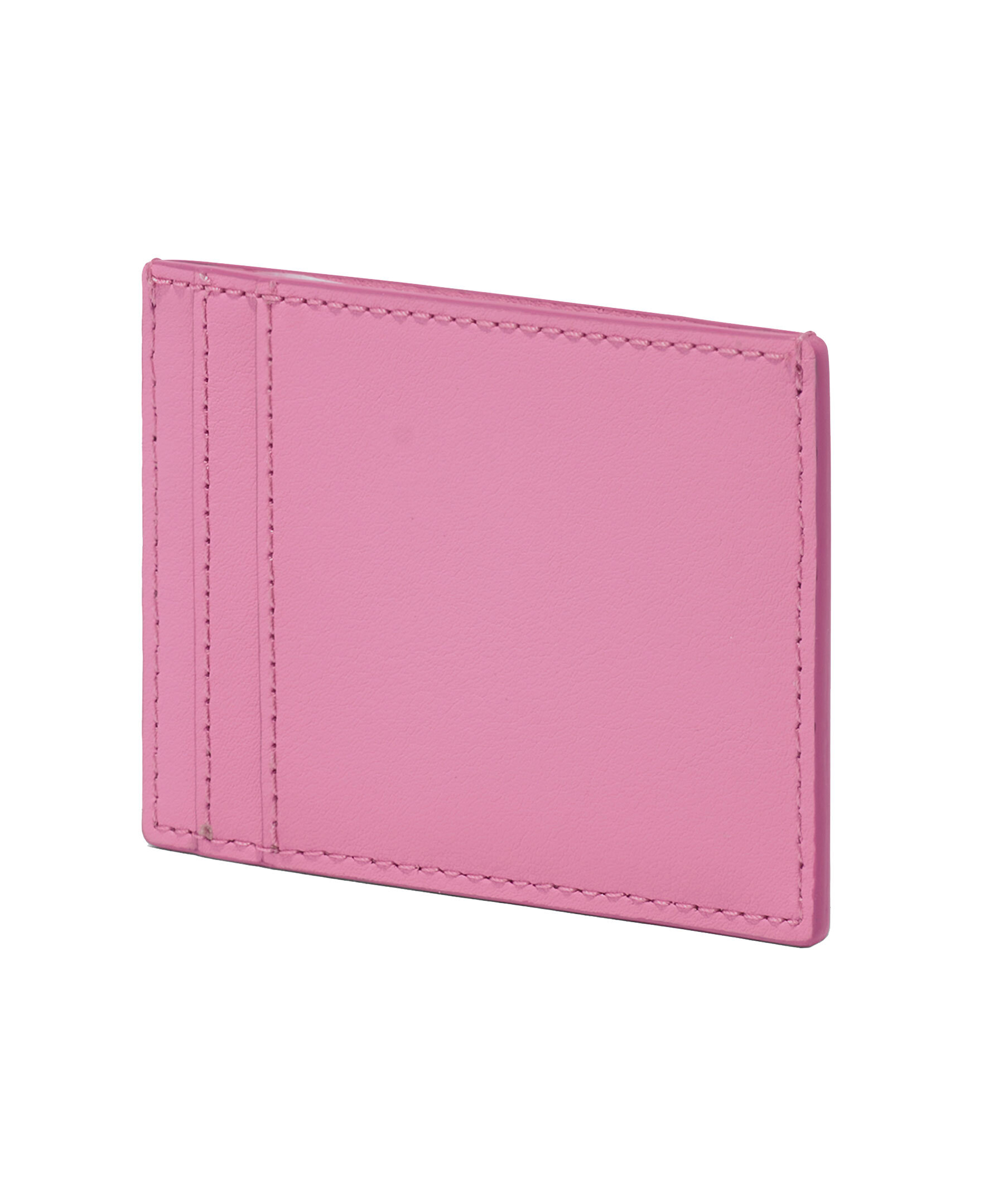 Rosa korthållare i läder från Marc Jacobs. Två fickor på vardera sida och guldfärgad logotyp i metall på framsidan.