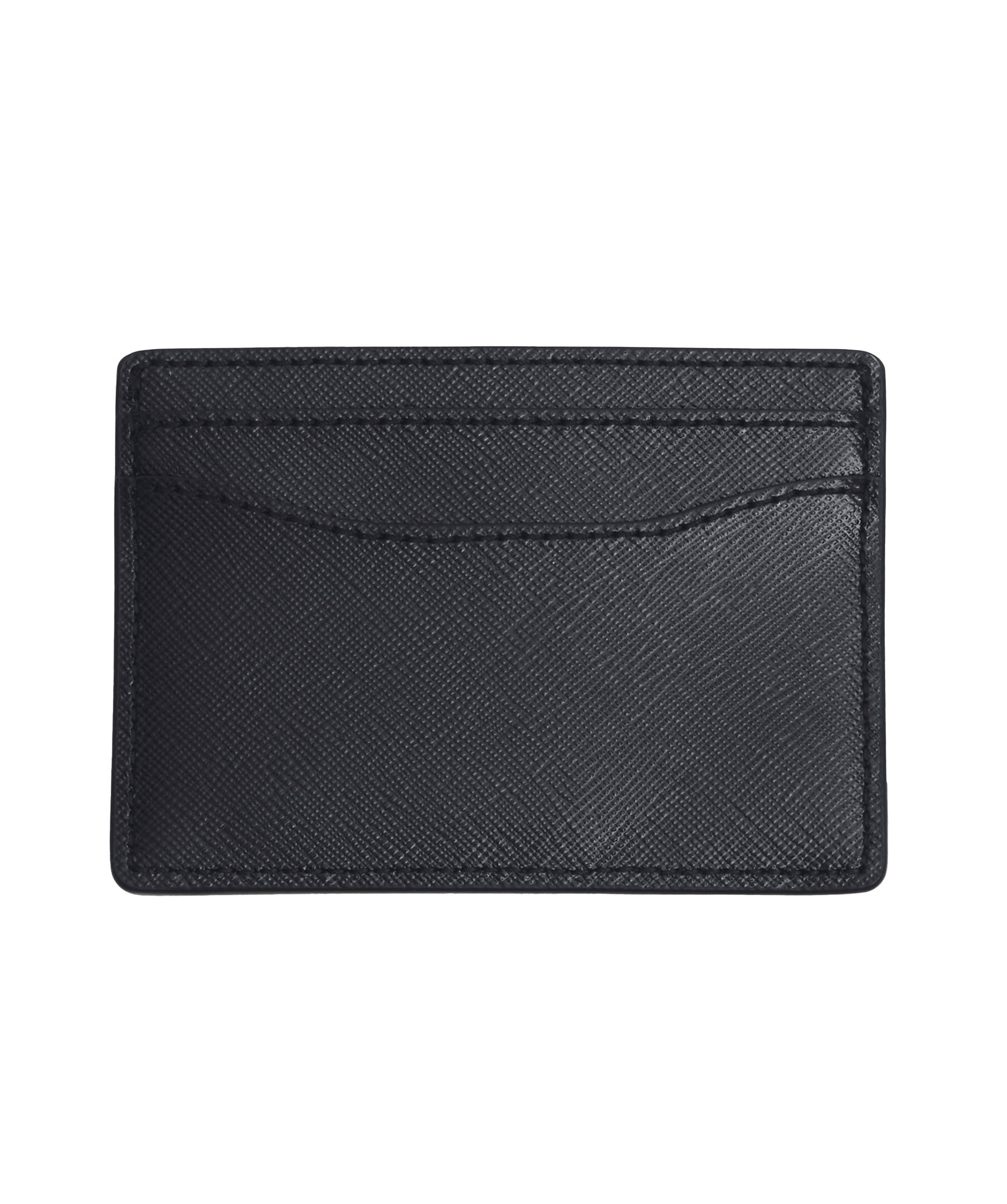 Svart plånbok från Marc Jacobs. Inspirerad av design-DNA från deras ikoniska Snapshot, är detta kortfodral tillverkat i Saffiano-läder med en tonal J Marc framtill. Den innehåller fyra kortplatser och en mittficka. Mått: 10cm L x 0cm D x 7cm H