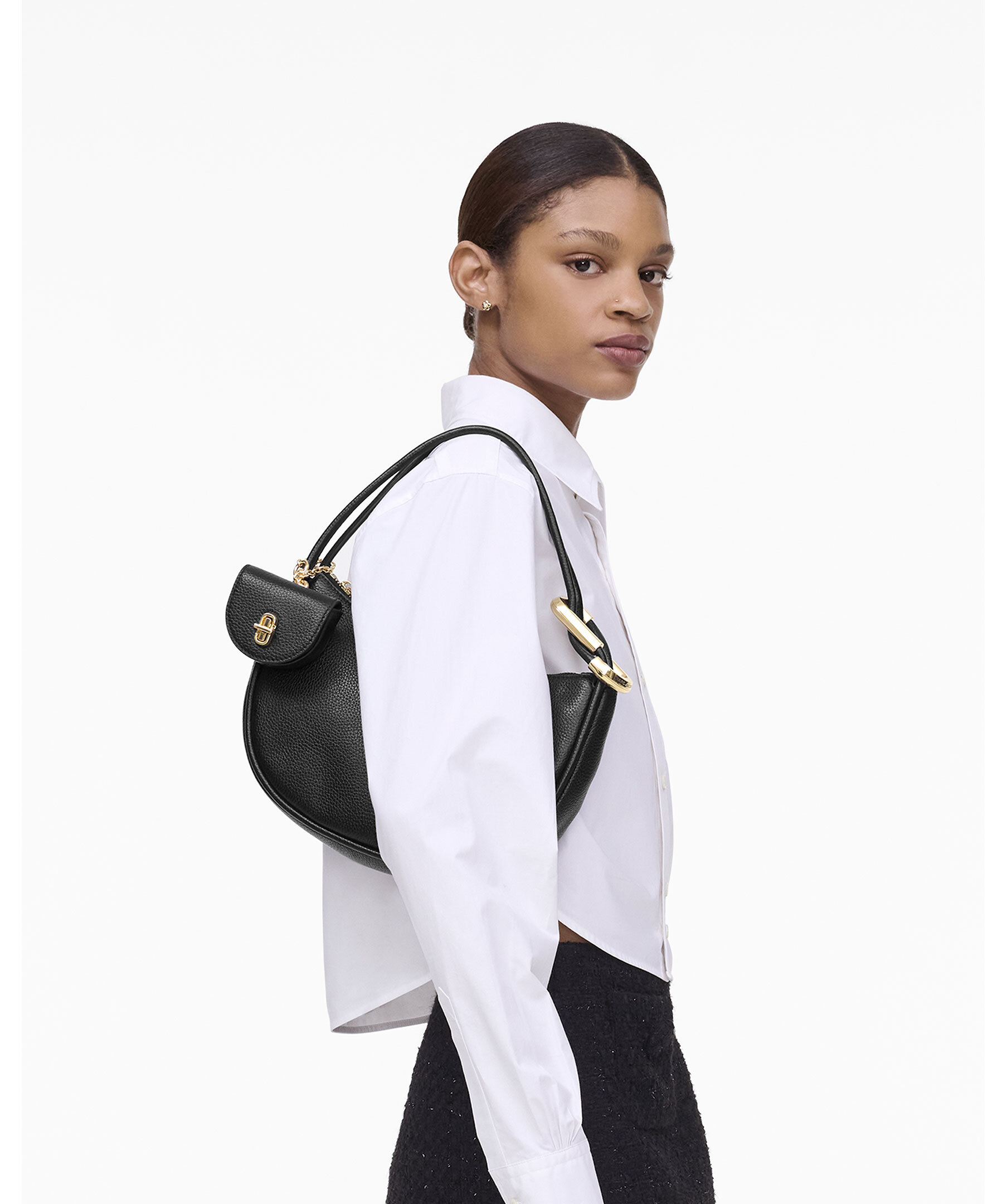 Svart handväska från Marc Jacobs i en halvmåneformad design. Väskan har ett avtagbart hörlursfodral, stängs med dragkedja och har en innerficka med dragkedja, en ytterficka med avtagbar vridlås samt foder i läder. Mått: 26 cm L x 8 cm D x 16 cm H, handtagshöjd 18cm.