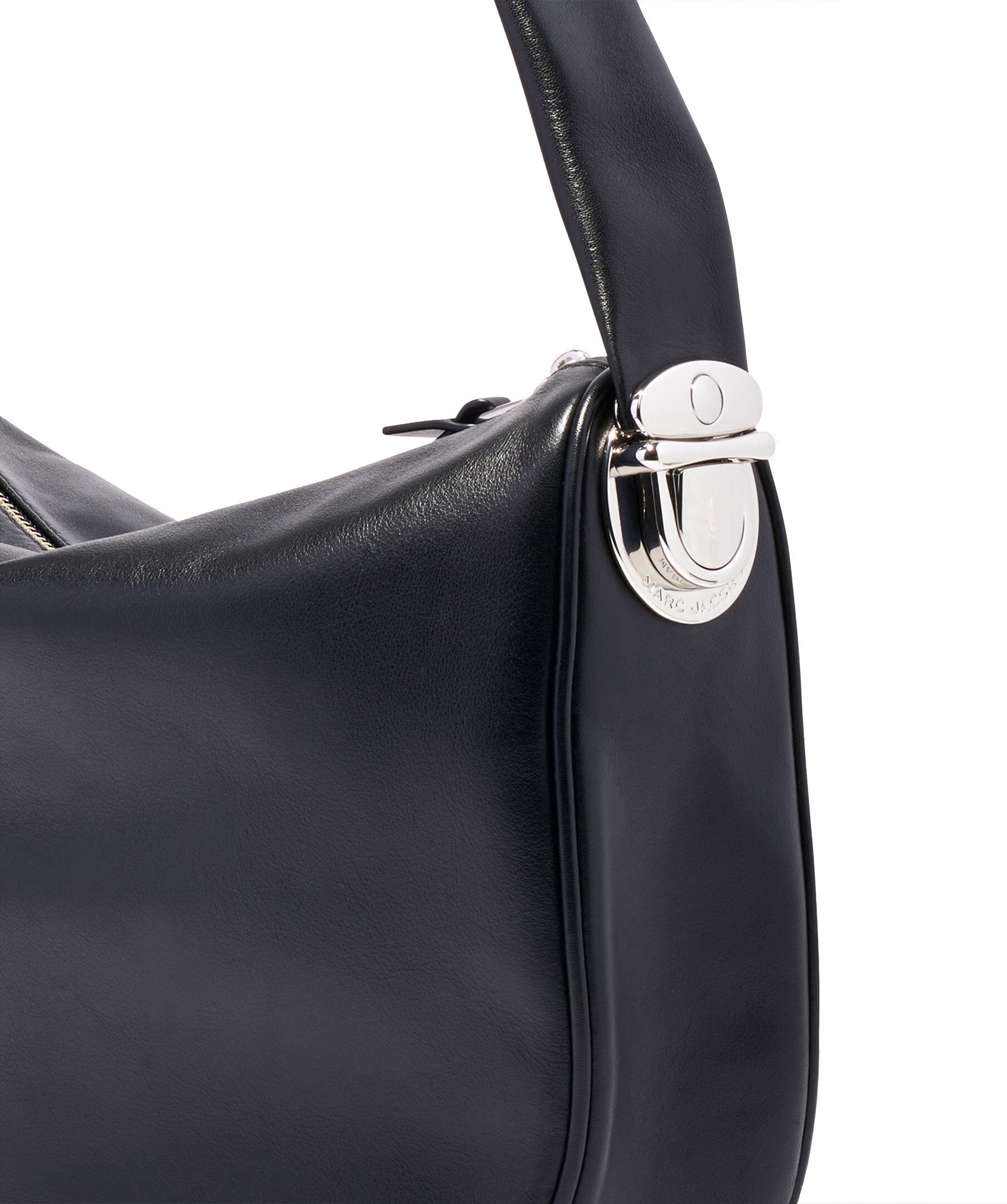 Svart handväska från Marc Jacobs. Huvudfacket stängs med dragkedja, tre innerfack varav ett som stängs med dragkedja. Silverfärgade spännen vid handtagen. Väskans mått: H 23 cm x B 35 cm x D 10cm.