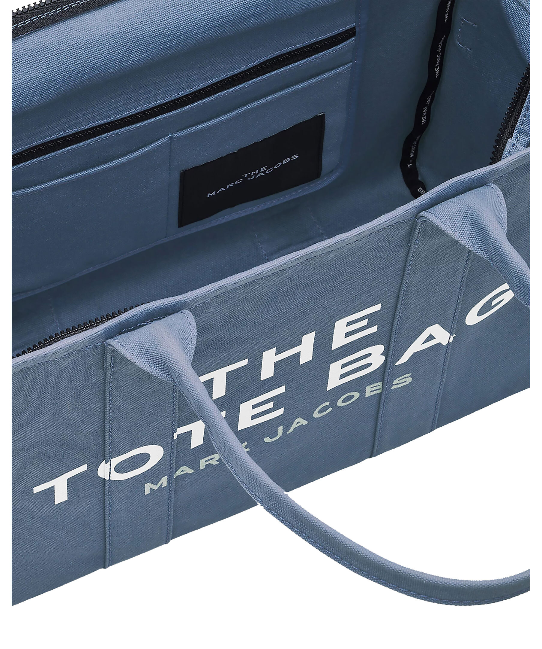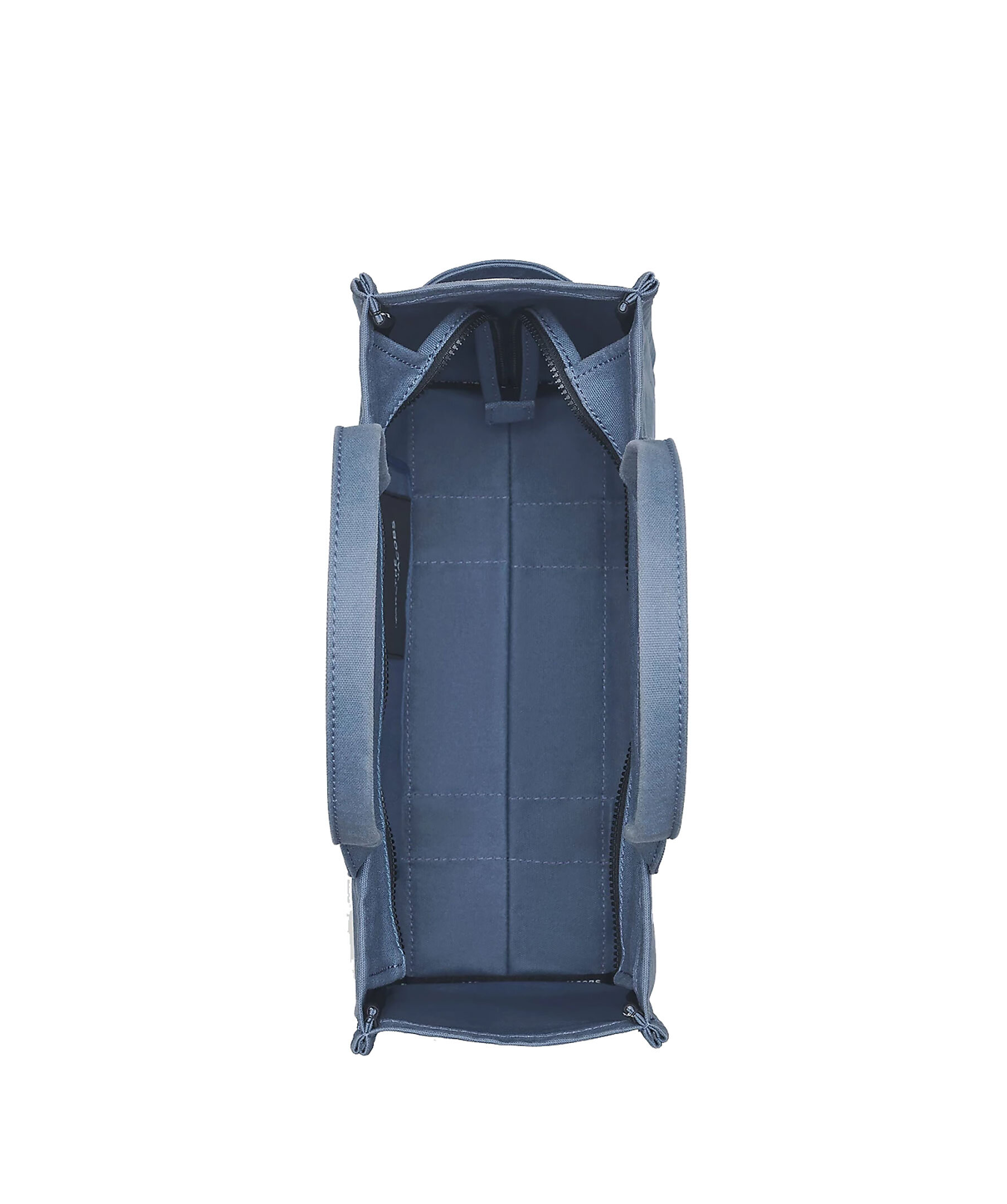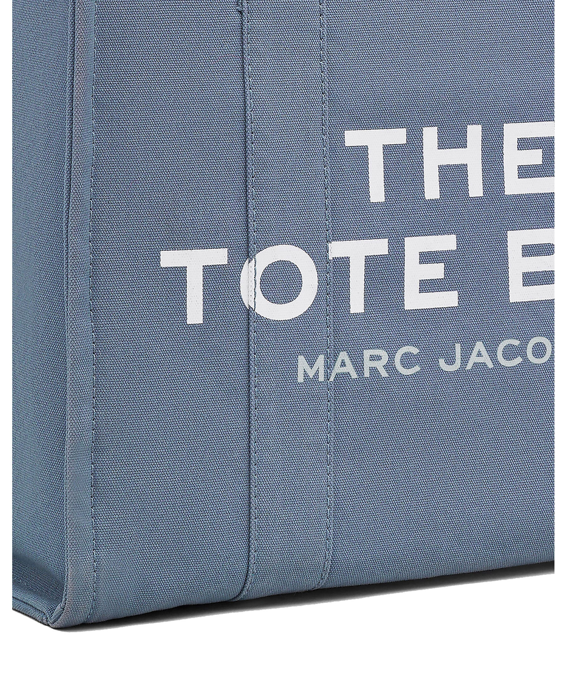Blågrå, stor canvas-tote i bomull från Marc Jacobs. Vit, tryckt logotyp fram och liten patch med logotyp på baksidan. Stängs med blixtlås och har en innerficka med blixtlås. Mått: 42cm L x 16cm D x 34cm H, handtag 24cm.