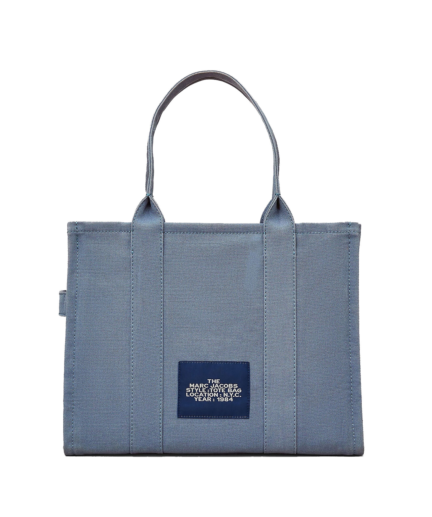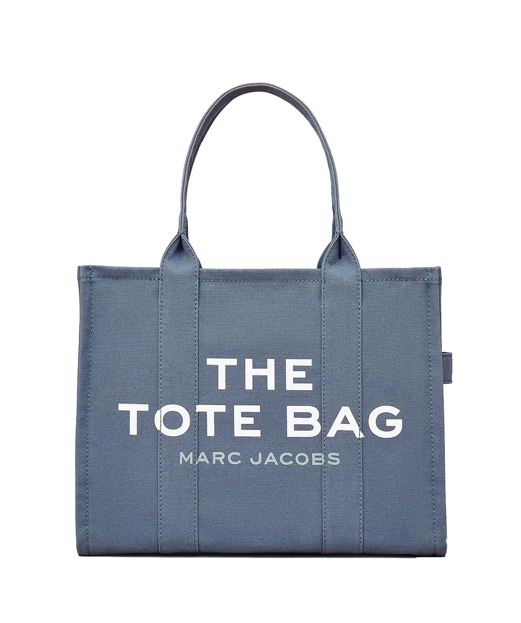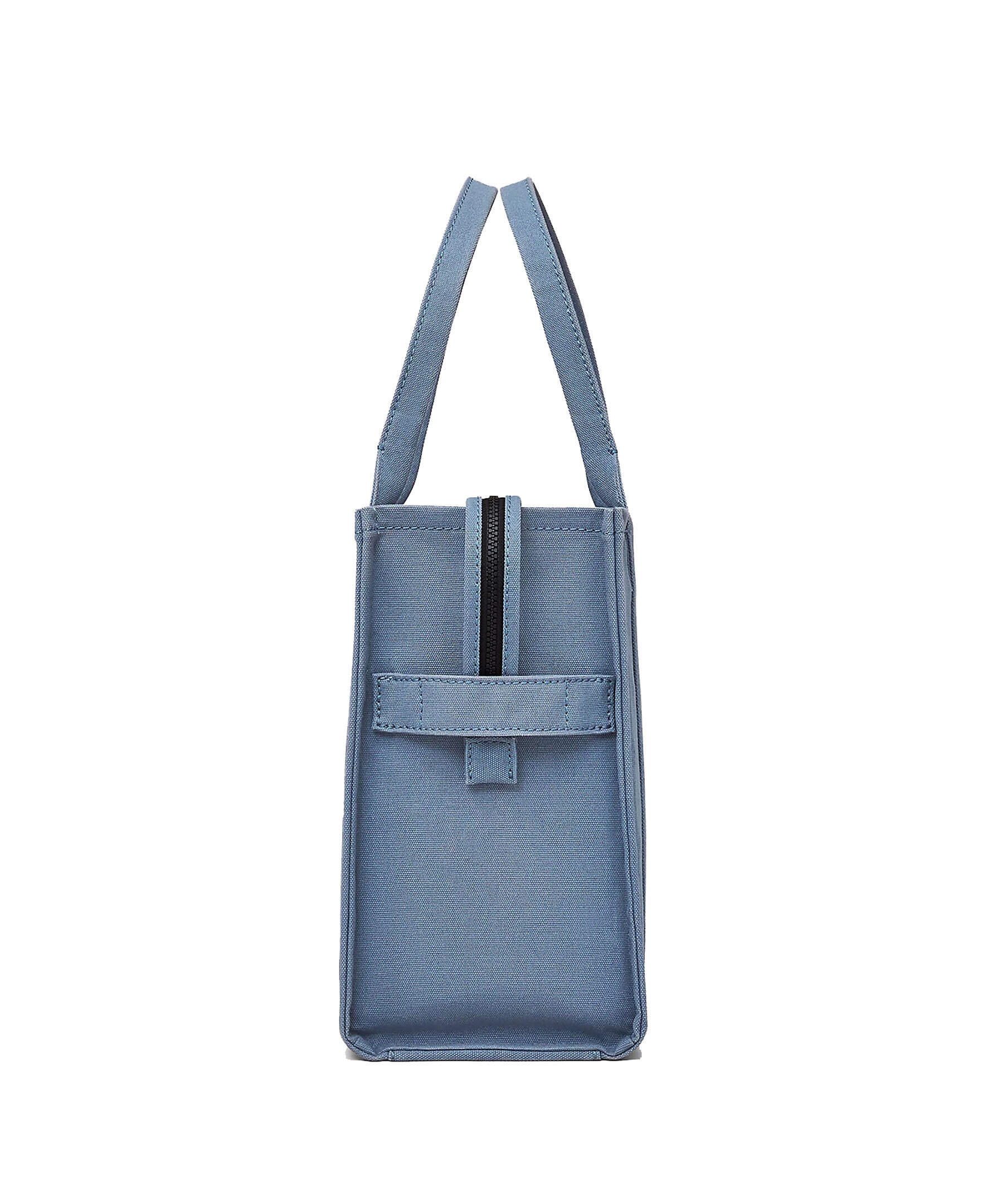 Blågrå, stor canvas-tote i bomull från Marc Jacobs. Vit, tryckt logotyp fram och liten patch med logotyp på baksidan. Stängs med blixtlås och har en innerficka med blixtlås. Mått: 42cm L x 16cm D x 34cm H, handtag 24cm.