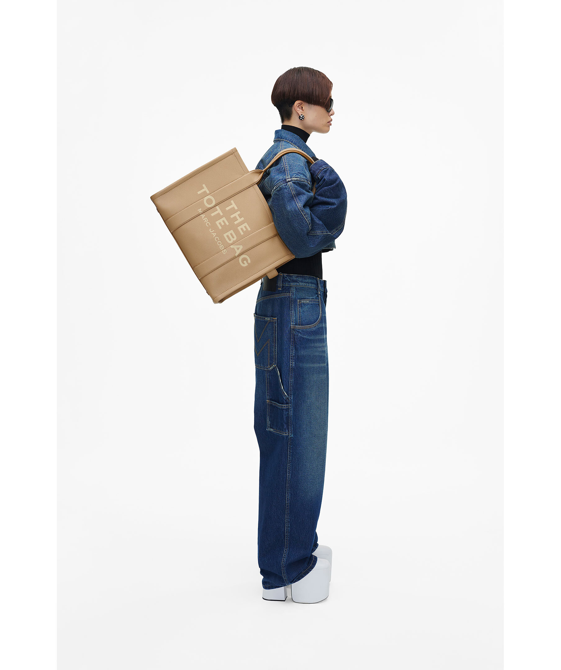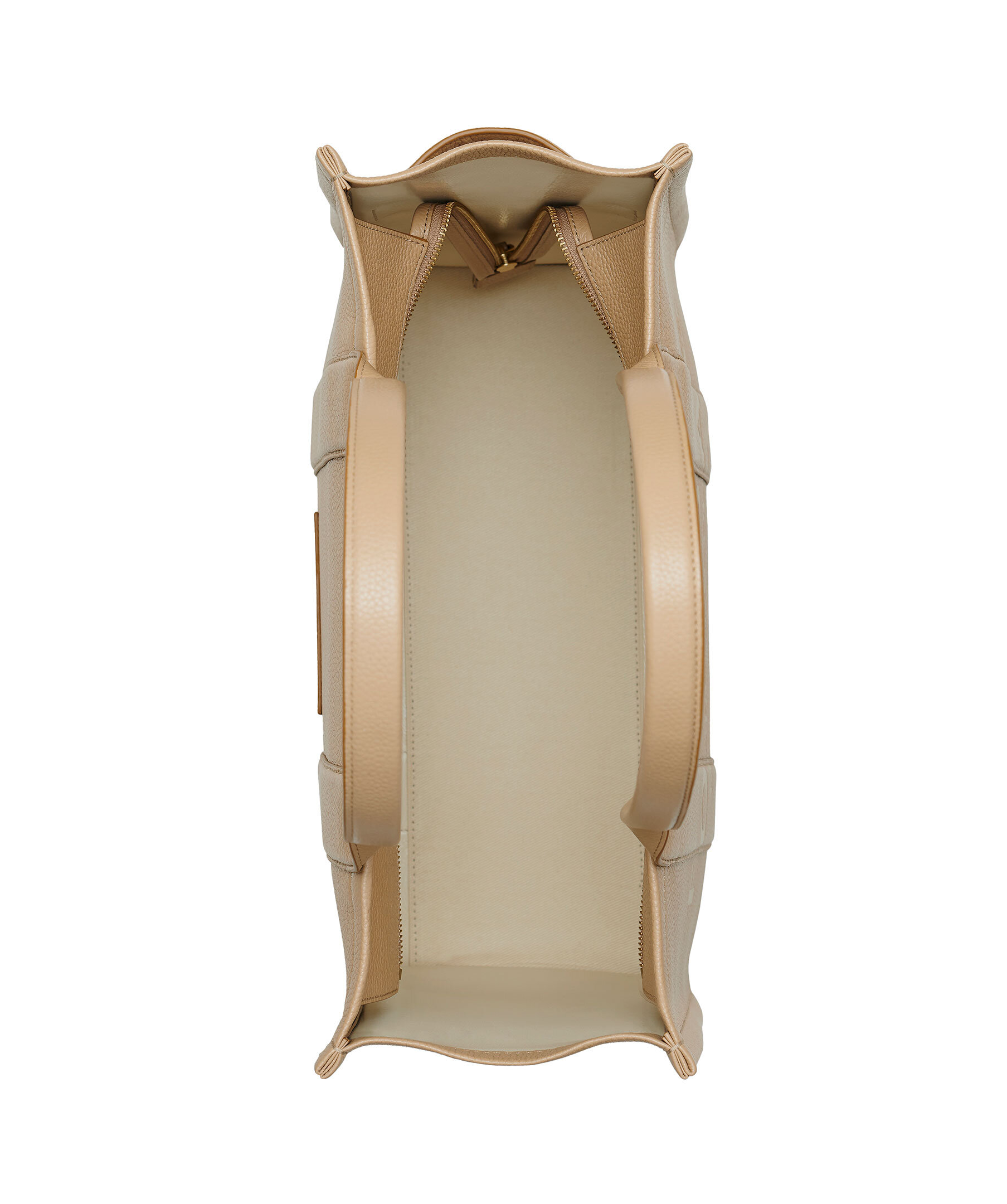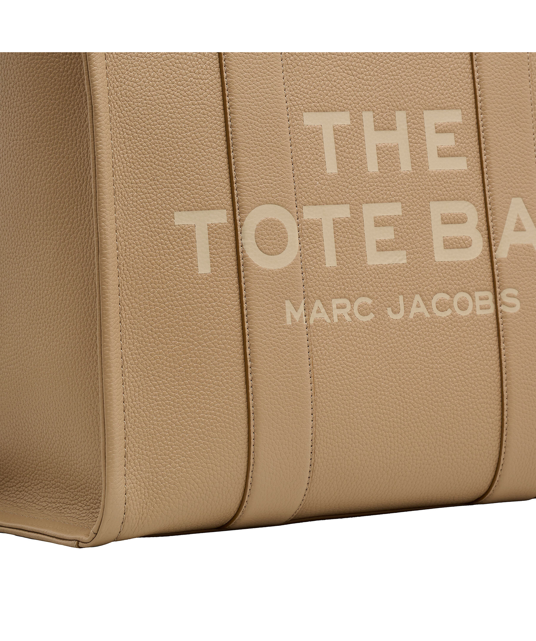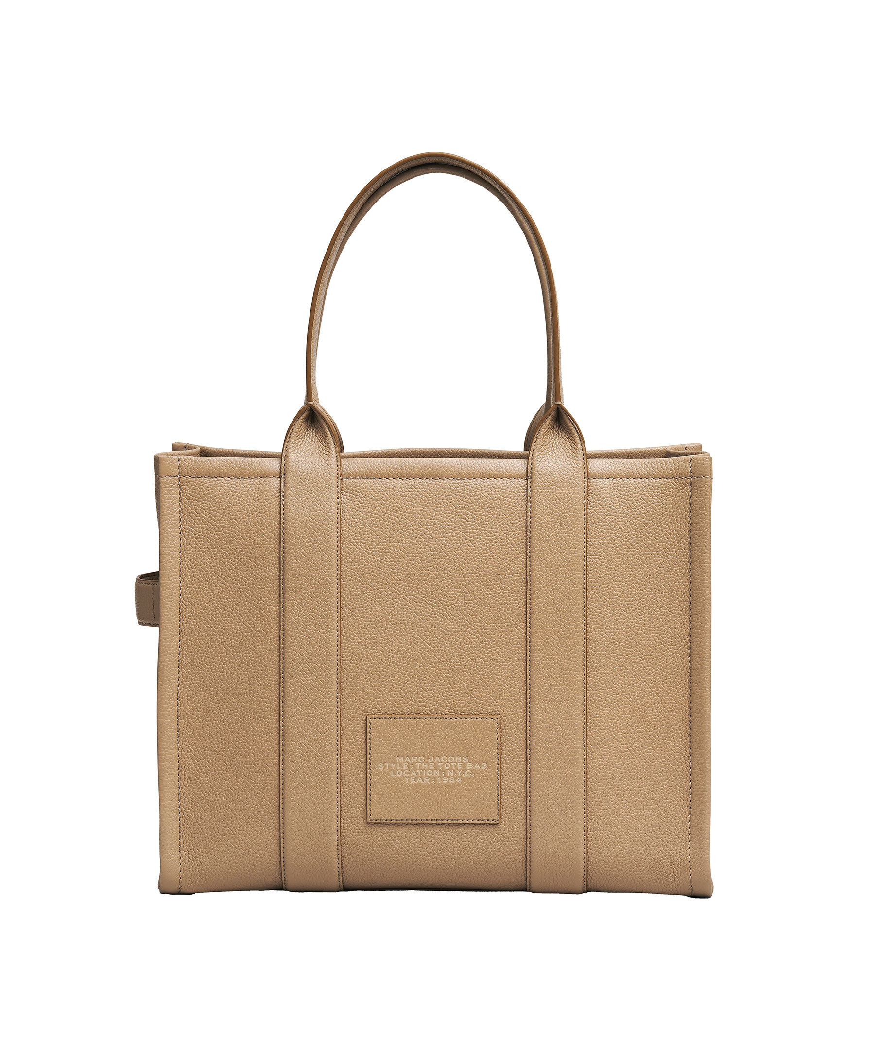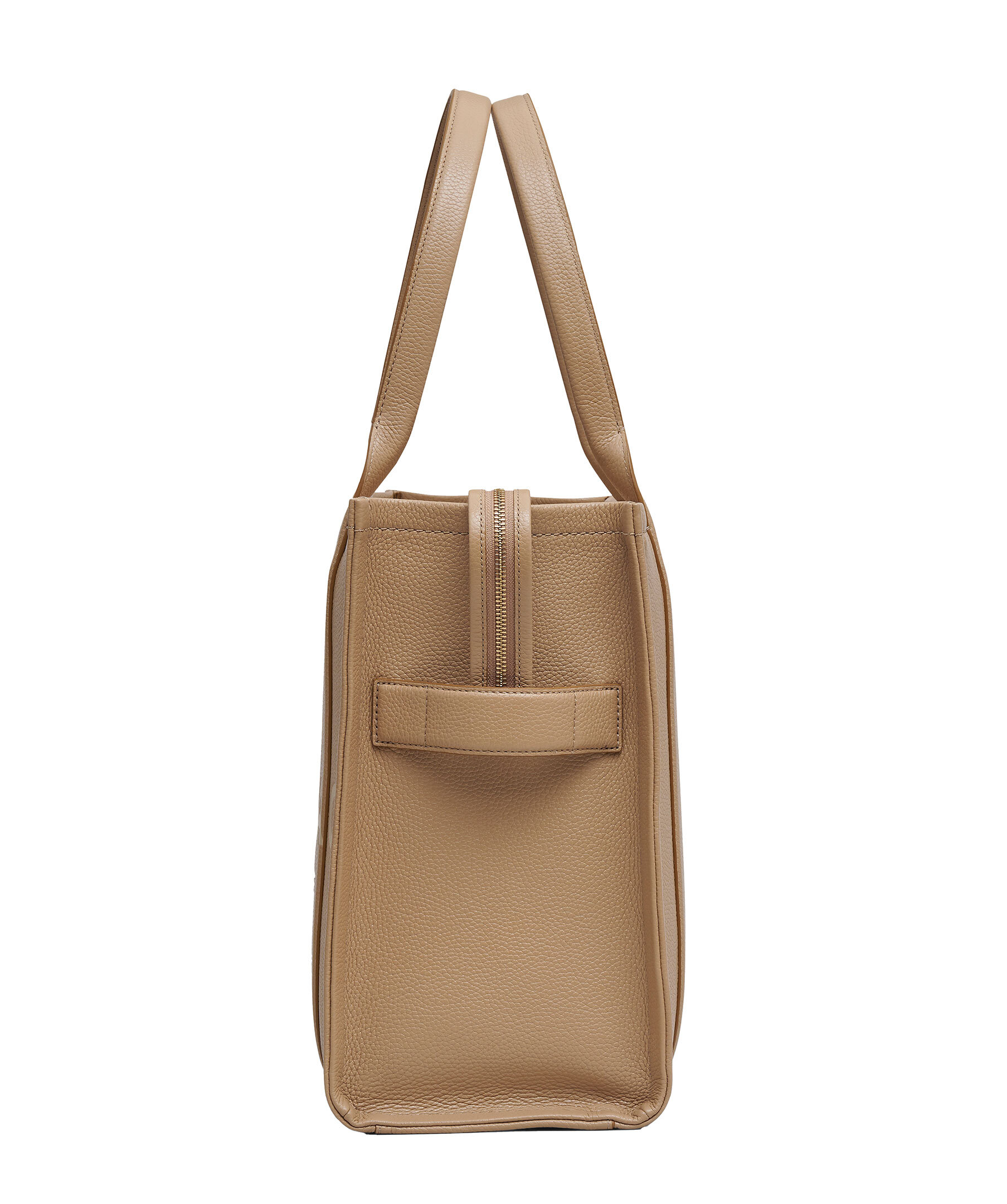 Kamelfärgad stor tote i läder från Marc Jacobs. Stansad logotyp fram och liten patch med logotyp på baksidan. Stängs med blixtlås och har en innerficka med blixtlås. Mått: 32 cm hög, 14 cm djup, 41 cm bred. Handtaget är 20 cm högt.