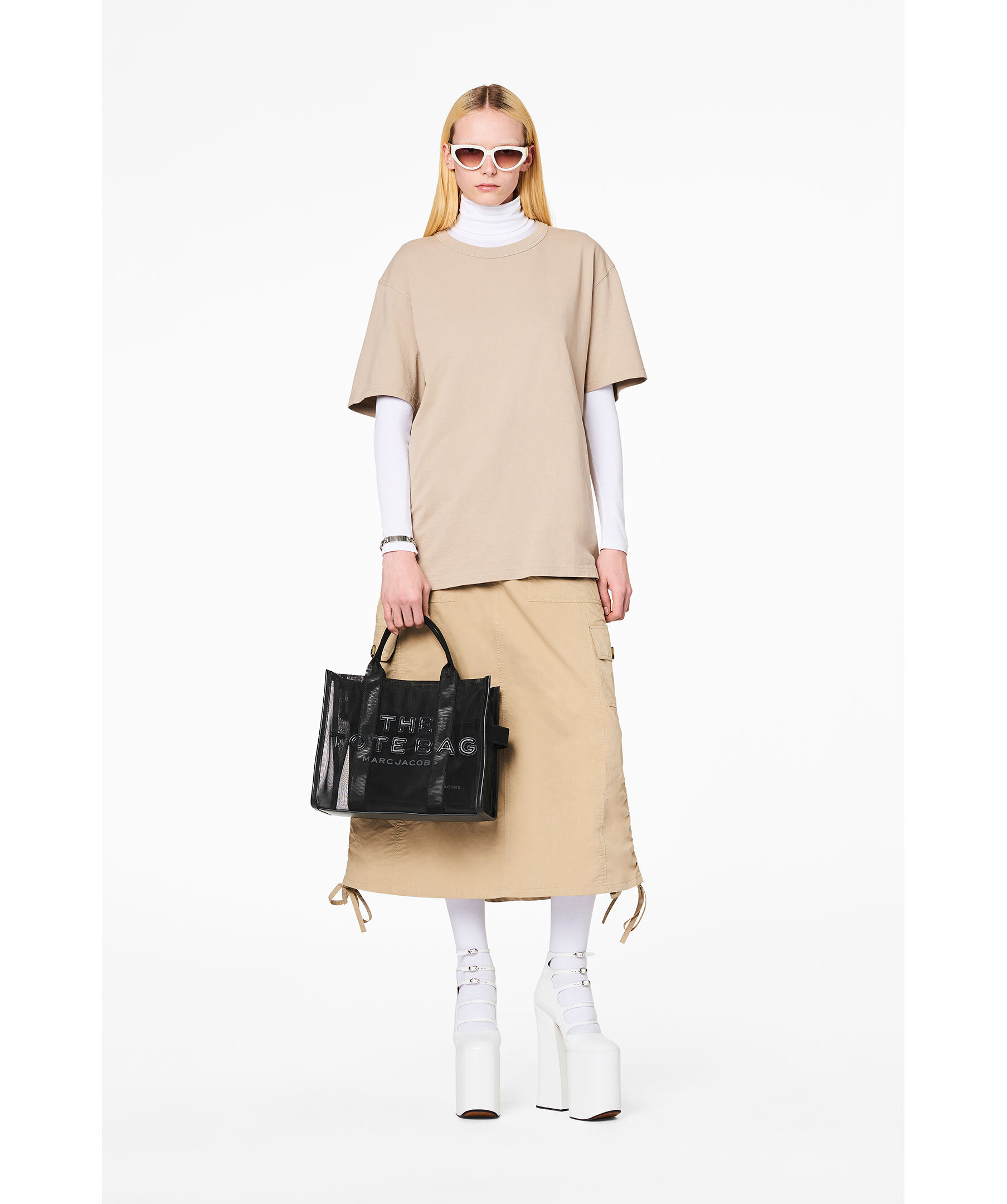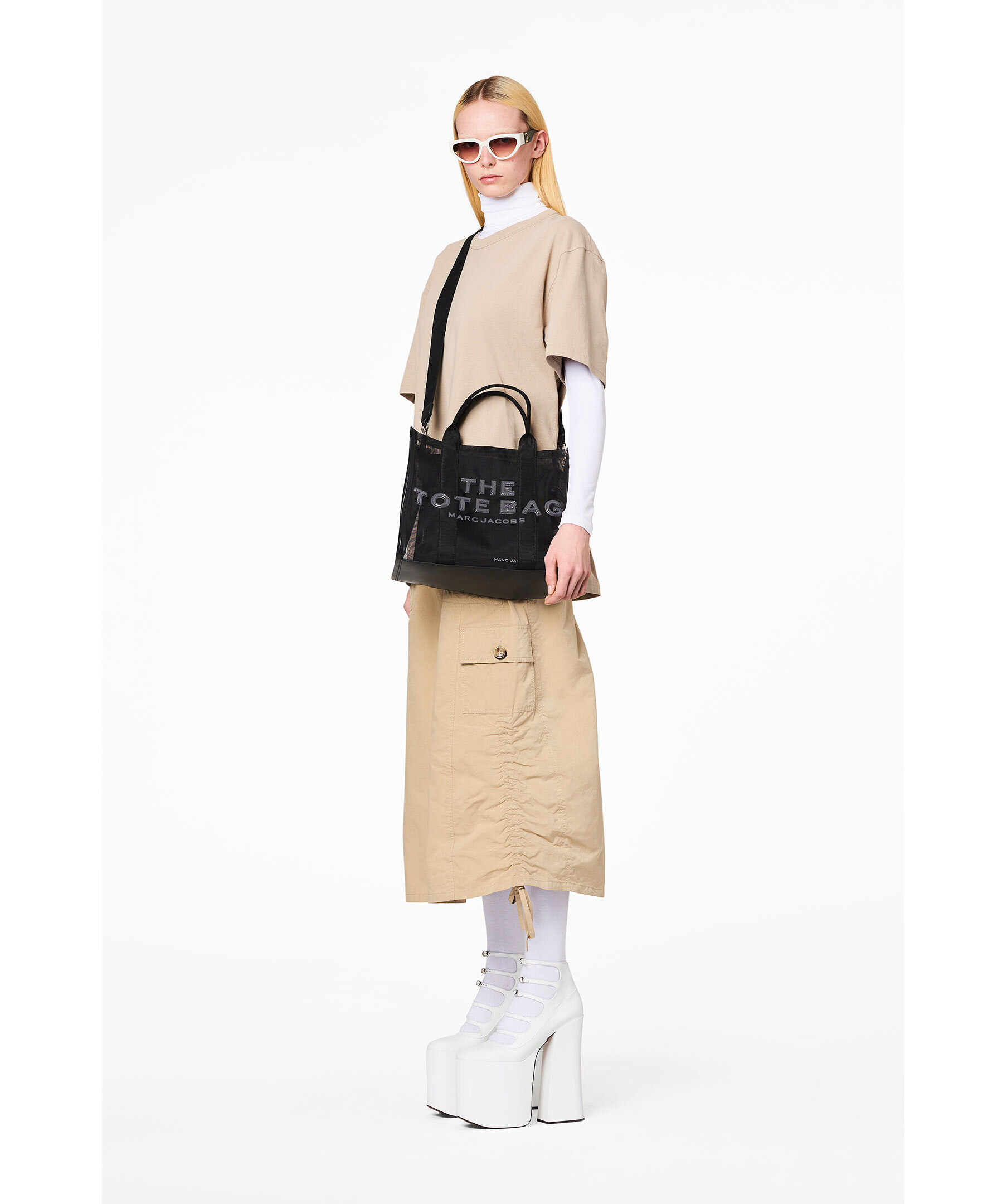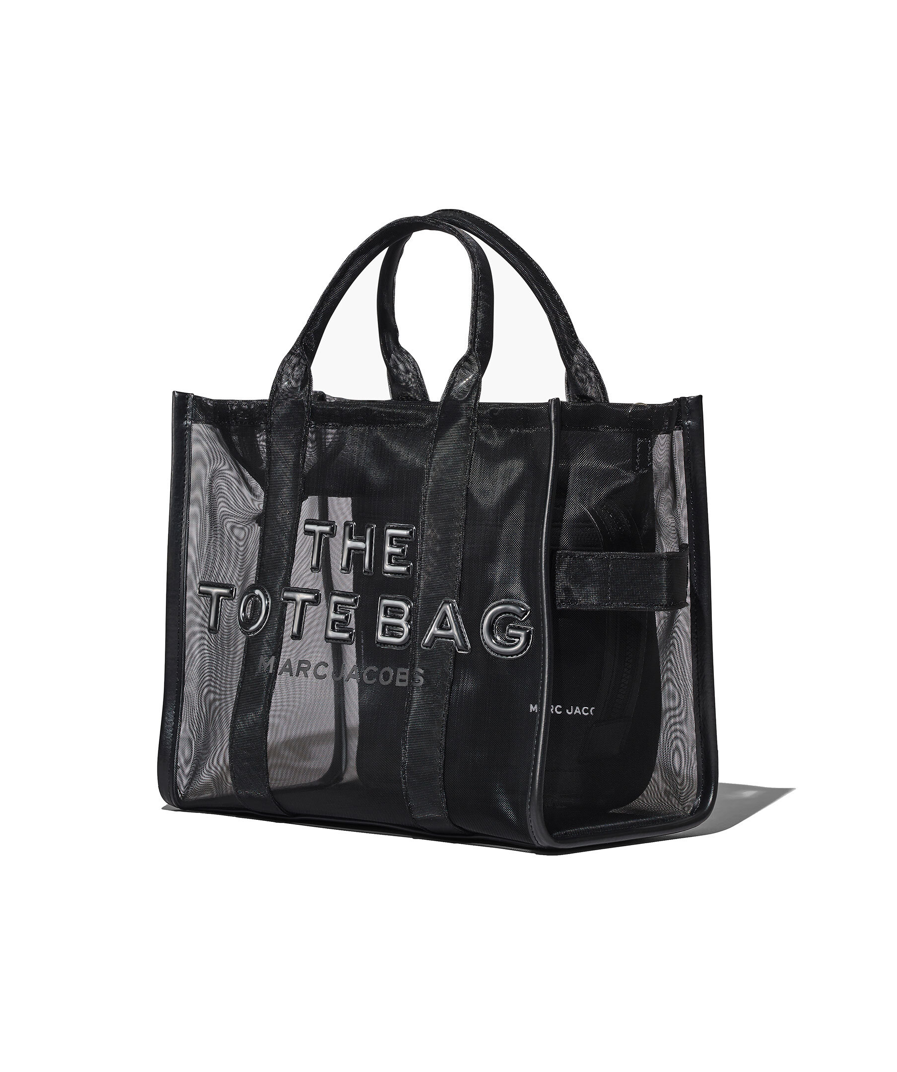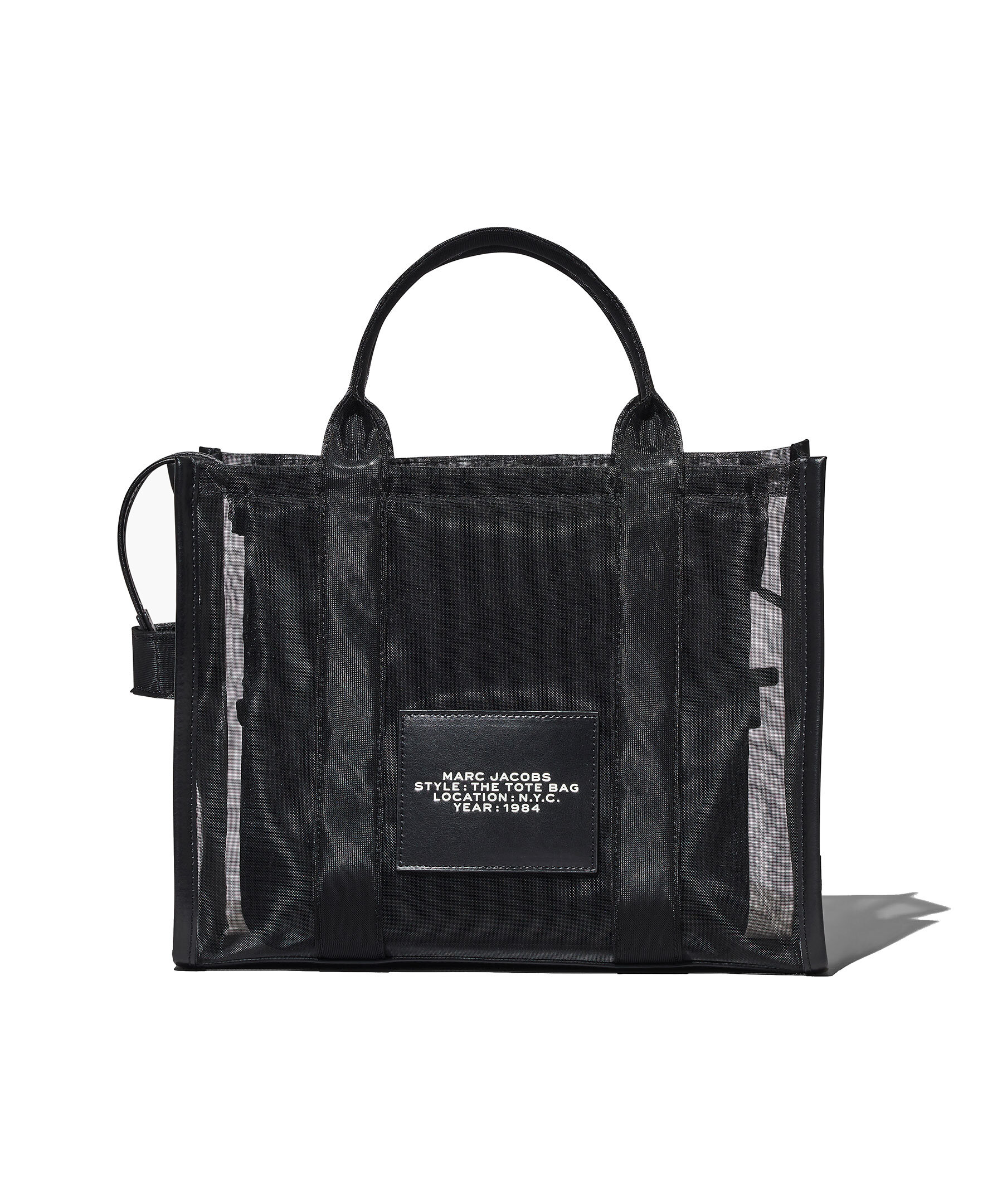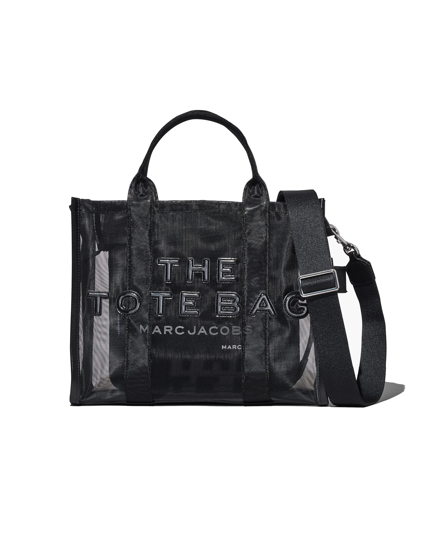 Svart tote väska från Marc Jacobs i meshtyg. Tjock dragkedja upptill, två fickor med dragkedja, en ficka med dragkedja och sydda logotyper gör den mellanstora väskan perfekt för ett ärende eller kontoret. Väskan kan bäras i de övre handtagen eller med den avtagbara, justerbara crossbody-remmen. Mått: B: 33cm, D: 16cm, H: 27cm. Rem: 146cm x 4cm. Rem drop: 69cm. Handtag drop: 13cm.
