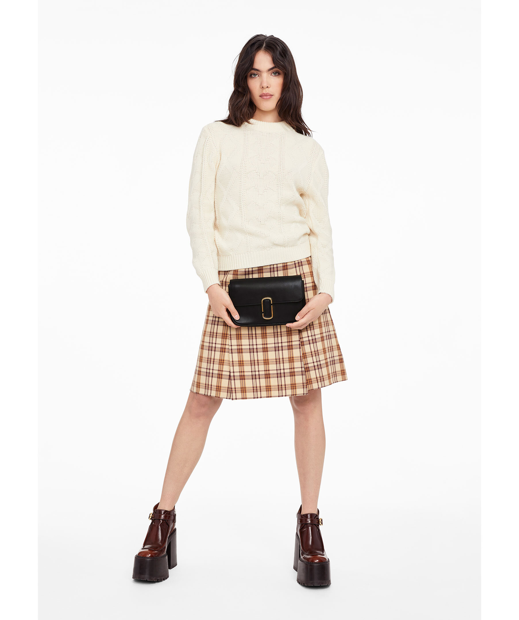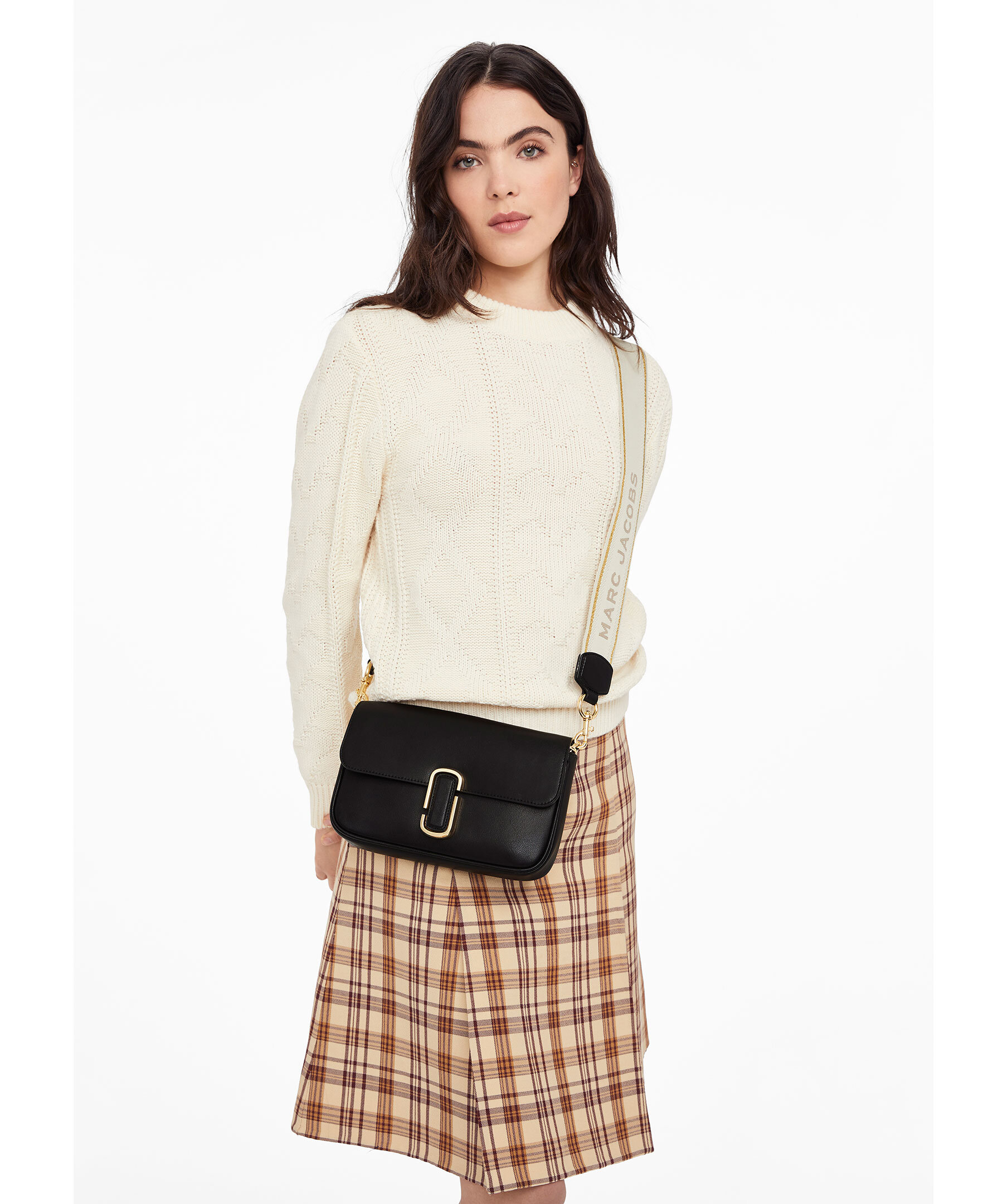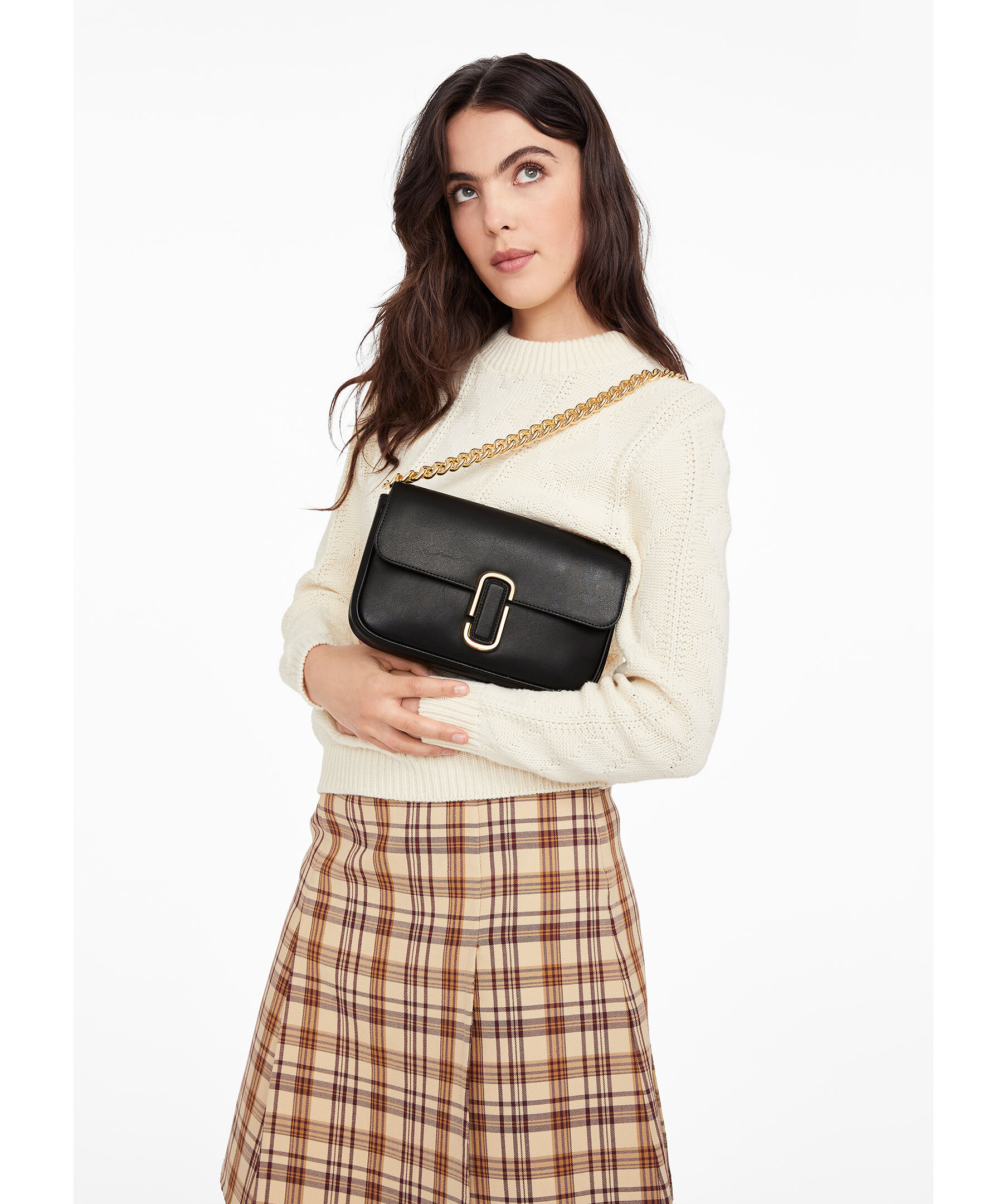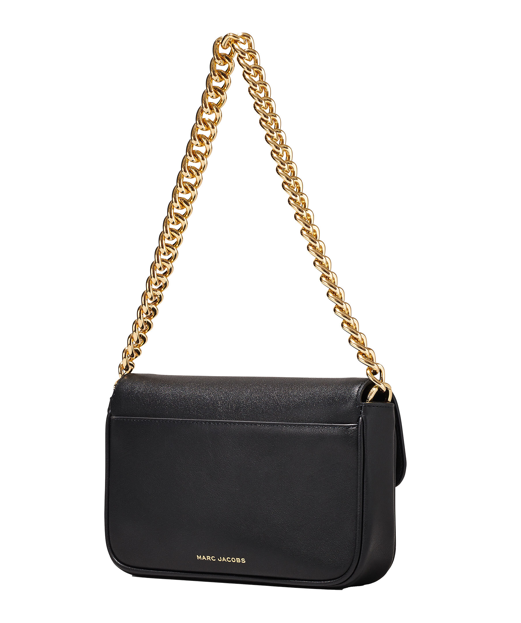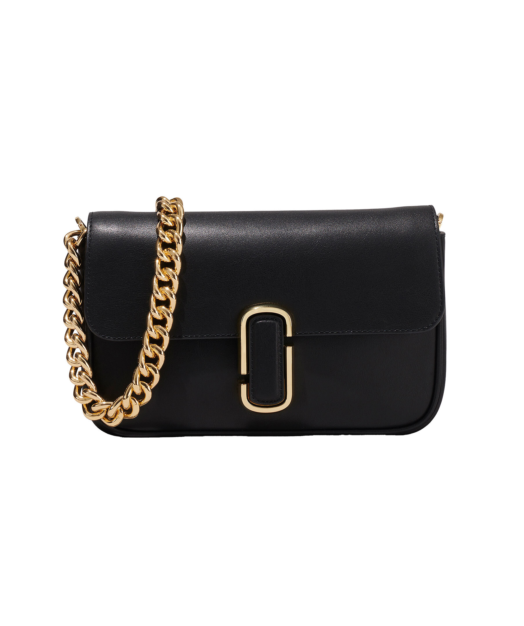 Svart axelväska tillverkad i slätt läder och förseglas av J Marc -hårdvaran. Med tre sätt att bära, gå från formell till casual genom att byta kedjesguldremmen med vävda crossbody-remmen eller bära den remlös som en koppling för ett riktigt kvällsmoment. Vävda remmen i vitt och guld är justerbart. Väskan har 1 interiörslipficka, 1 inre blixtlås, 1 ryggficka. Mått: L: 25cm, D: 5cm, H: 16cm. Rem mått: L: 144cm, D:5cm. Rem drop: 68cm. Handtagsdrop: 27cm.