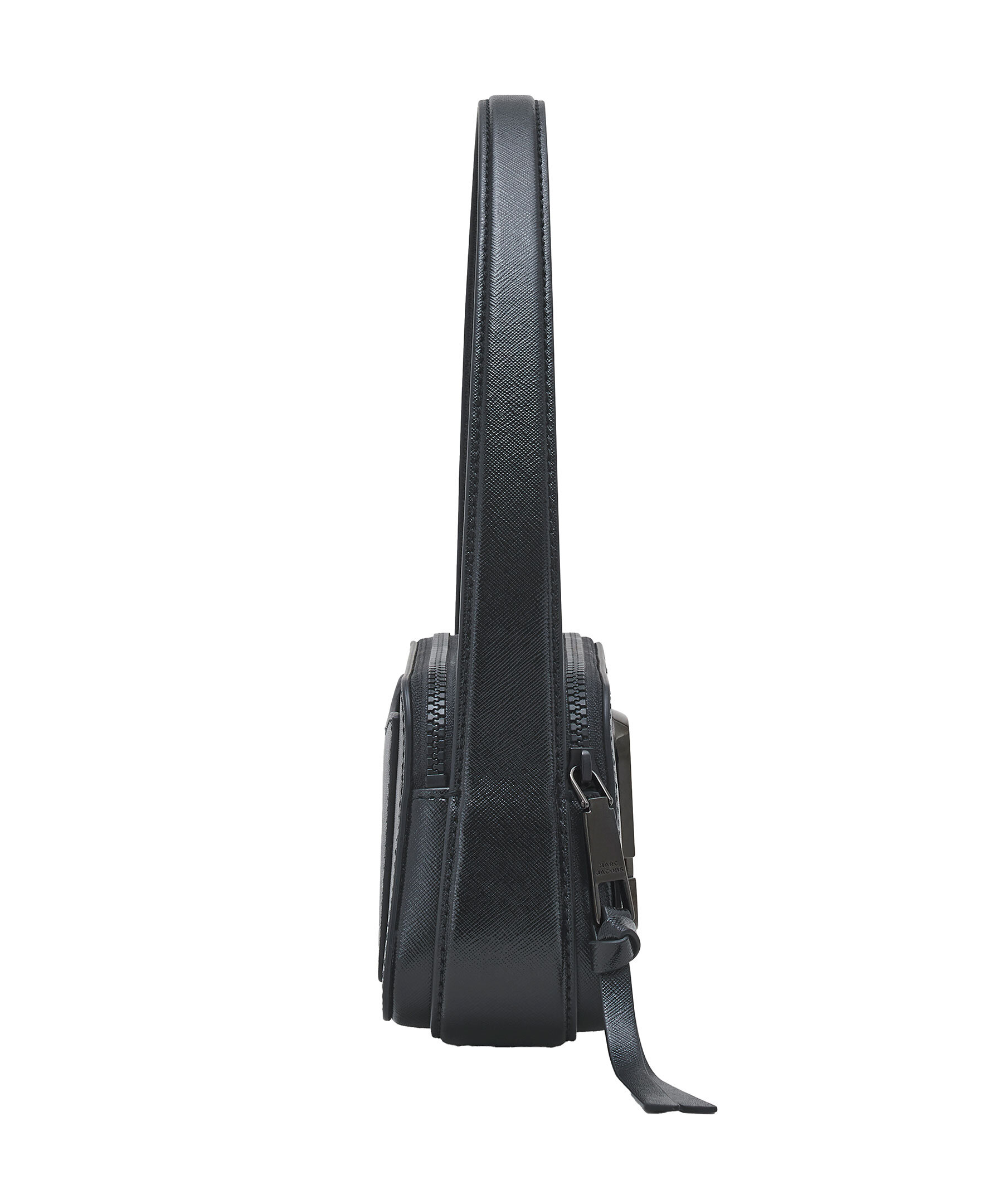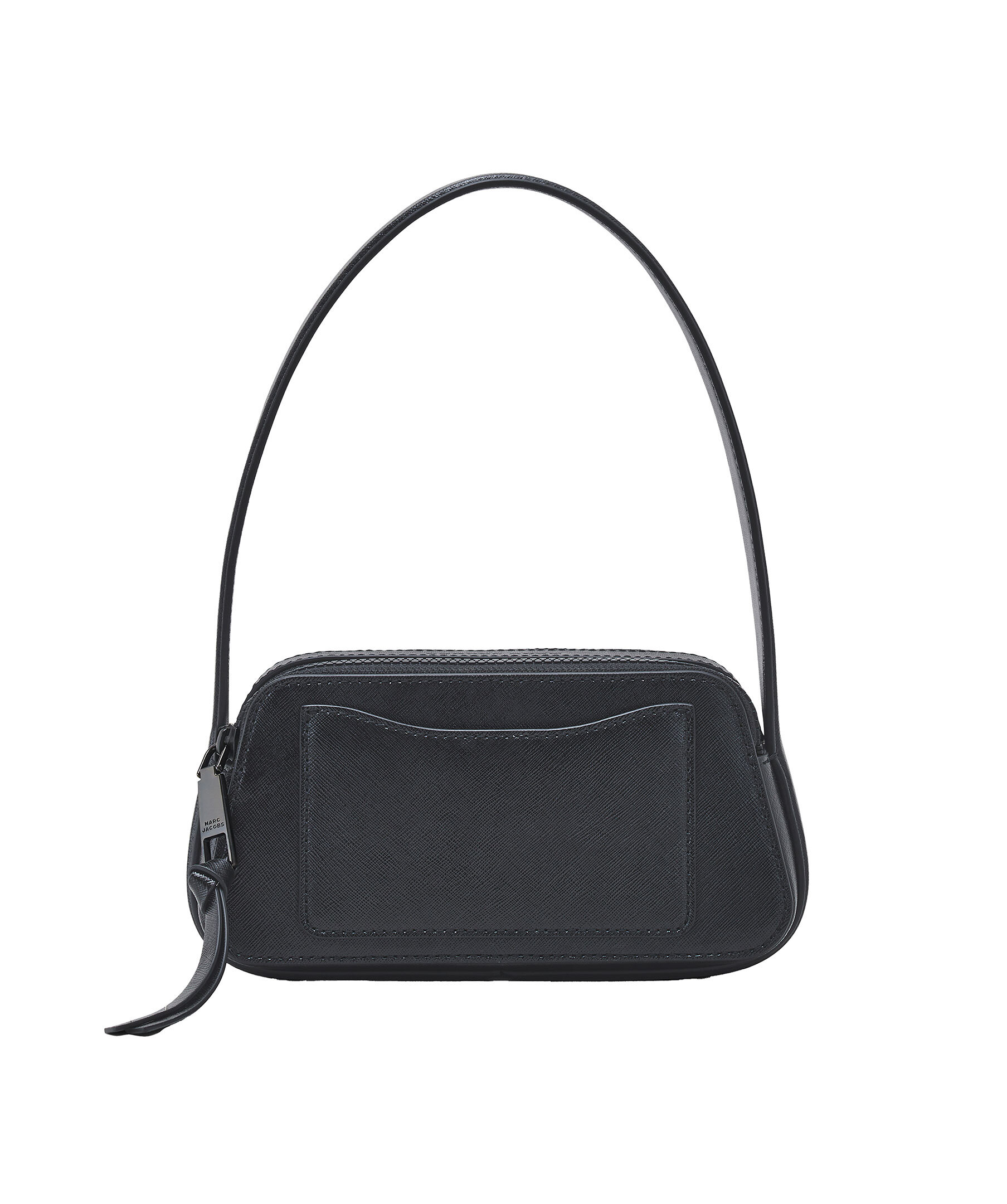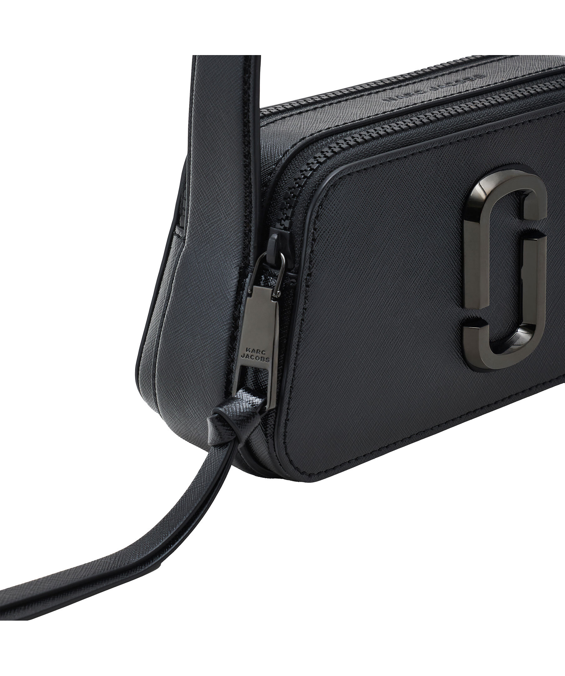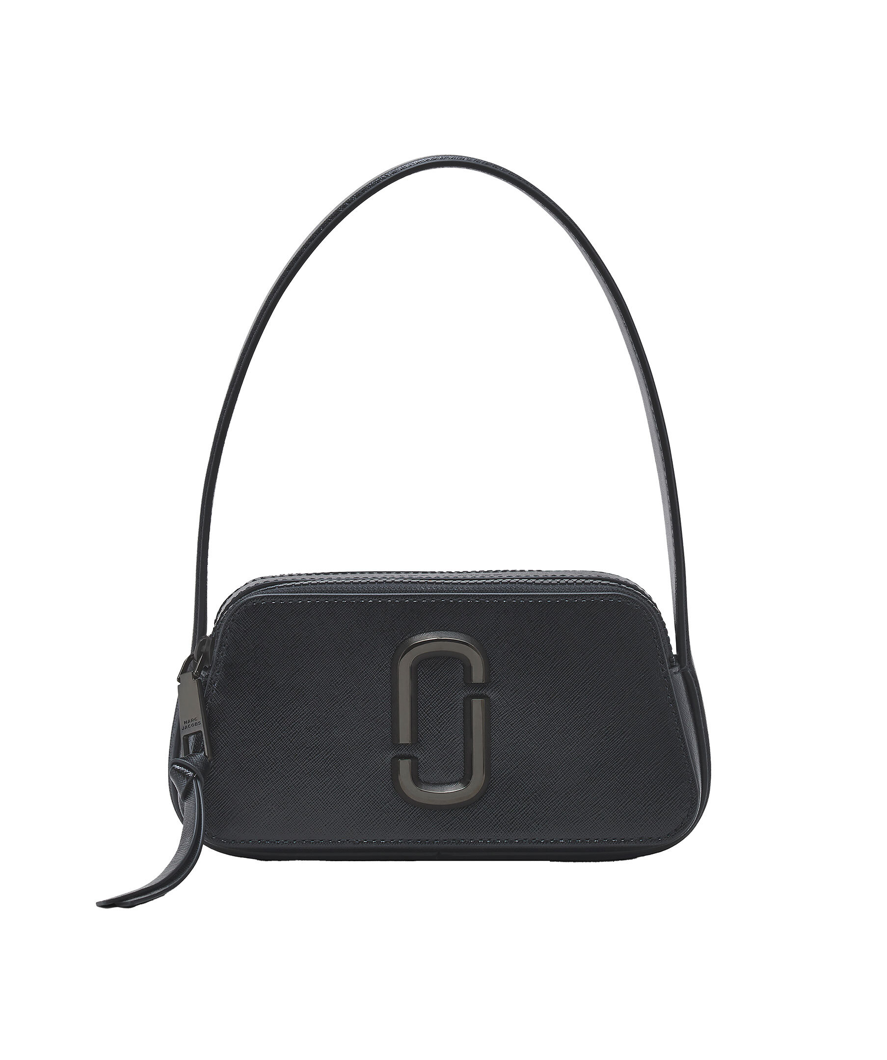 Svart handväska från Marc Jacobs. Sedan Snapshots debut 2016 utvecklades den kameraväskinspirerade silhuetten snabbt till en Marc Jacobs-ikon. Nu ombildad med en elegant axelrem, möt Slingshot. Slingshot är utformad från samma strukturerade Saffiano -läder och har deras signatur J Marc -hårdvara framtill, med en slipficka inuti och en dubbel dragkedja. Bär den på axeln eller med det övre handtaget. Mått: L: 22 cm, x D: 7cm, x H: 11 cm. Rem mått: L: 82cm x D: 2cm. Rem drop: 15cm.