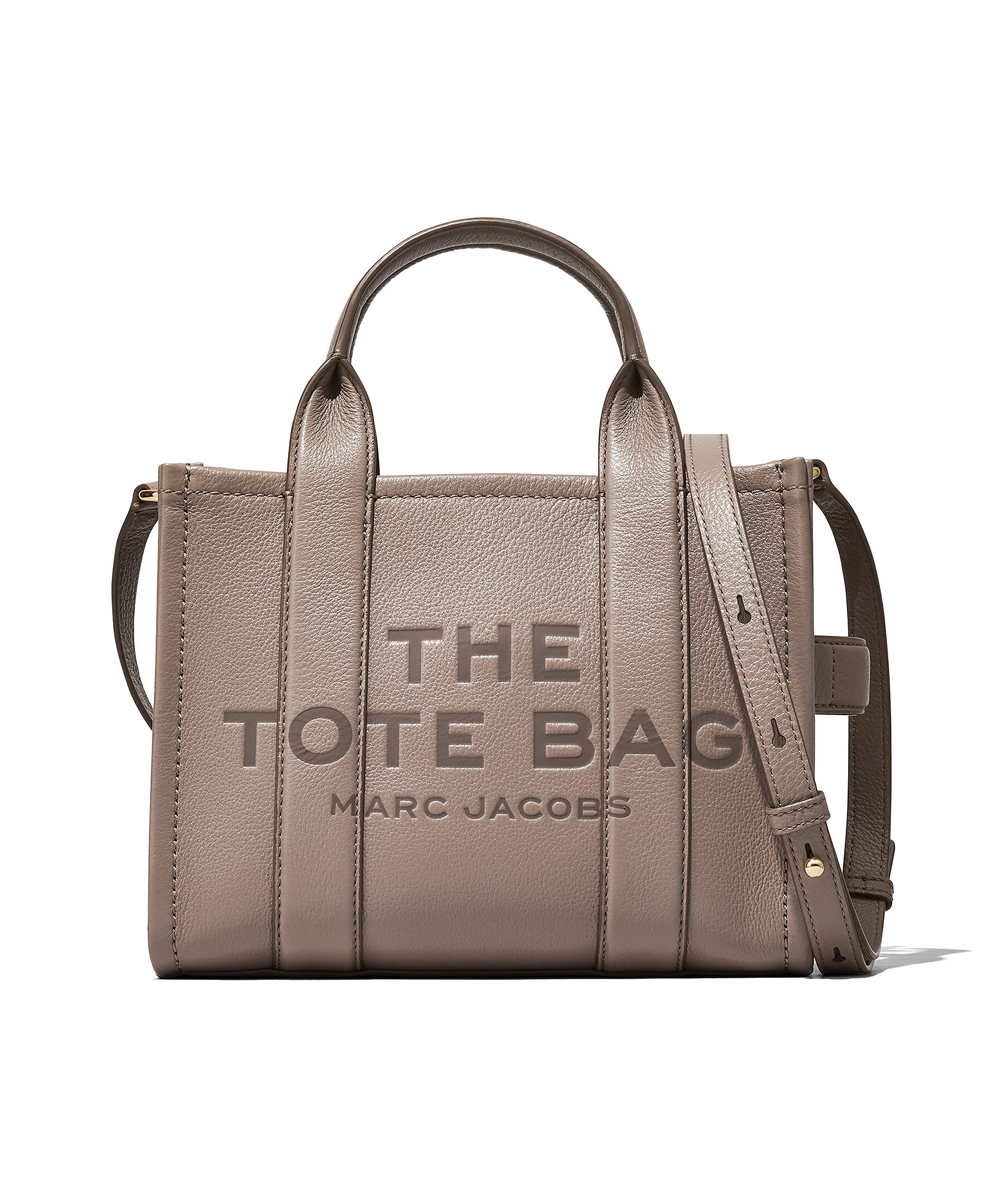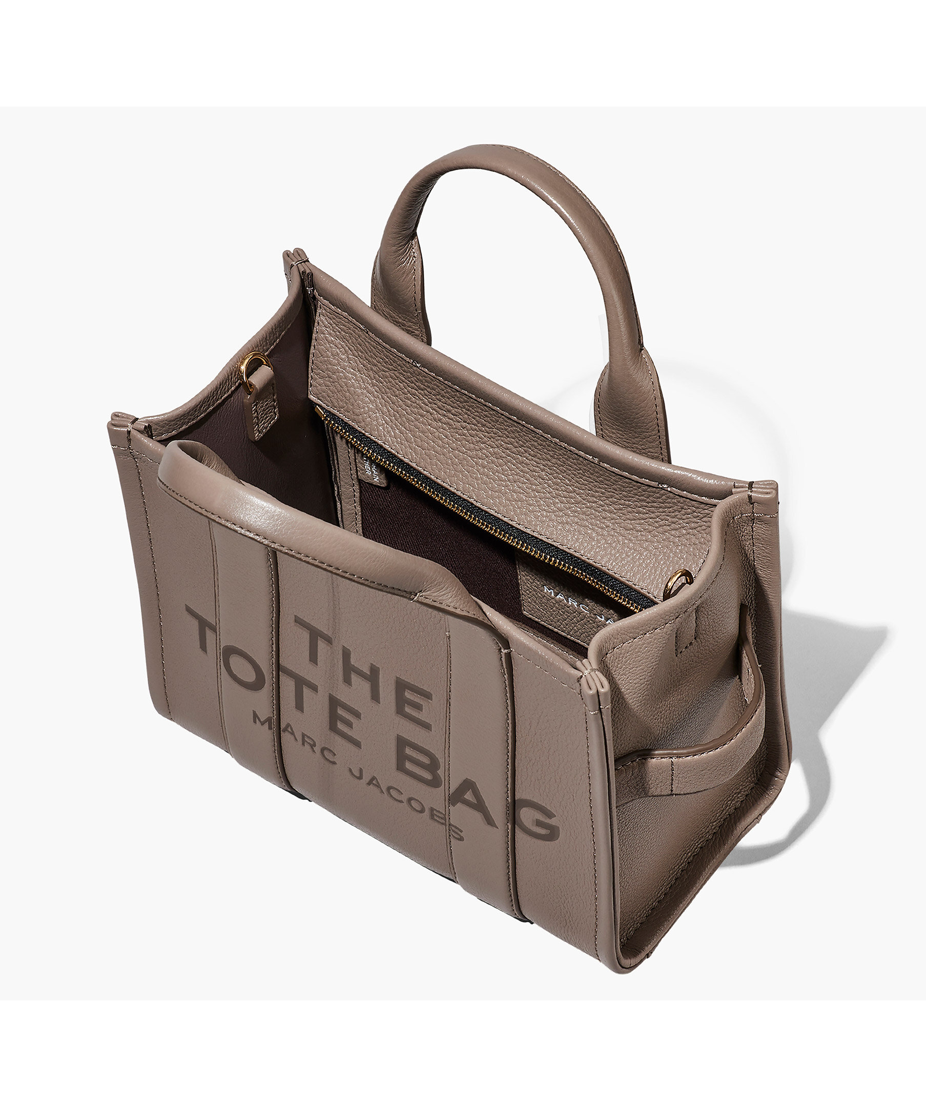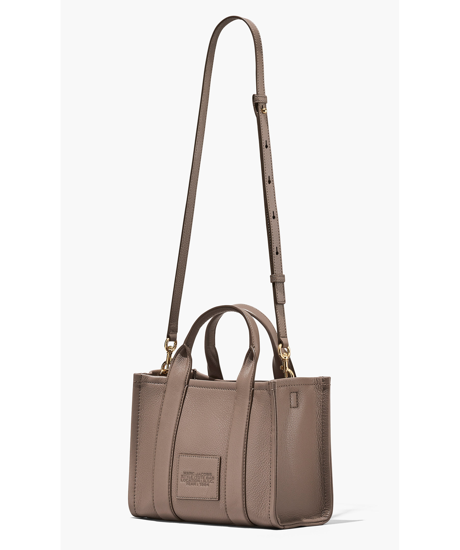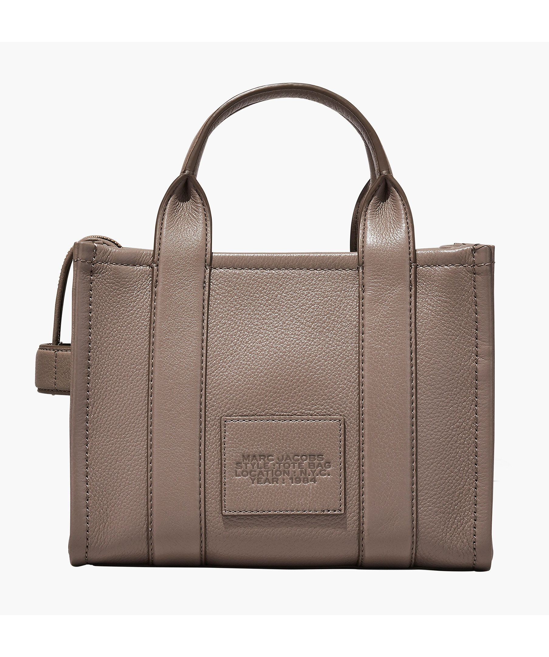 Beige, tote i läder från Marc Jacobs med två handtag upptill. Präglad logotyp fram, patch med logotyp på baksidan i läder. Stängs med blixtlås och har en innerficka med blixtlås. Mått: 27cm hög, 15cm djup, 34 cm bred. Handtaget är 12 cm högt.