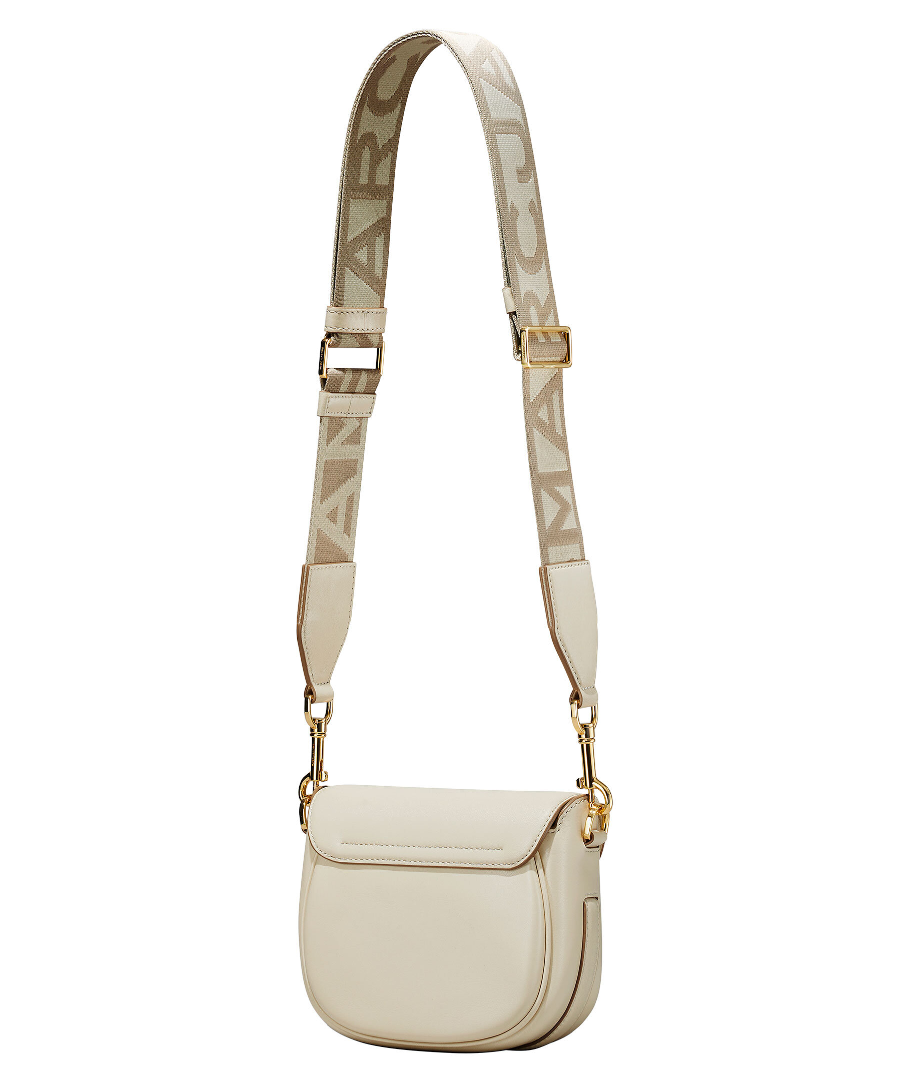 Beige väska från Marc Jacobs. Locket stängs med magnetlås. Beiget justerbar och avtagbar axelrem med logotyp. Väskans mått: H:16cm L: 21cm D: 7cm. Axelbandet är 144cm långt och 5cm brett. Axelbands dropp: ca 68cm.