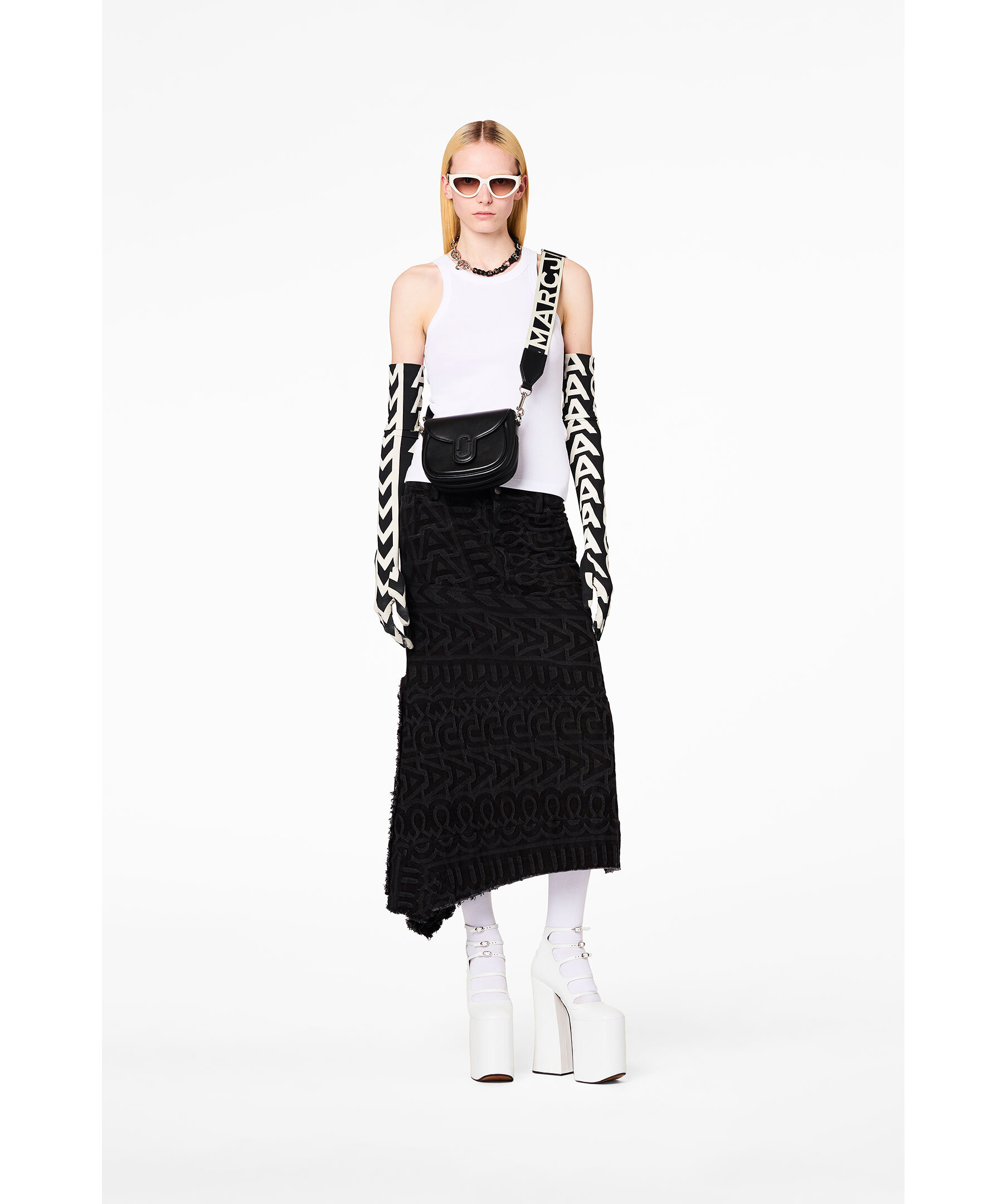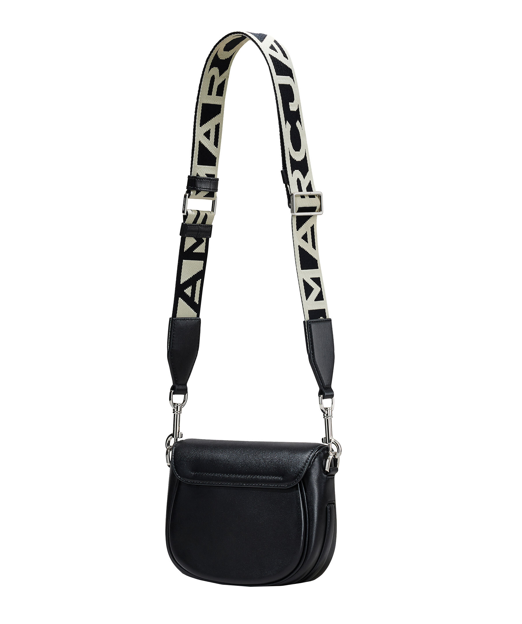 Svart väska från Marc Jacobs. Locket stängs med magnetlås. Svart och vit, justerbar och avtagbar axelrem med logotyp. Väskans mått: H:16cm L: 21cm D: 7cm. Axelbandet är 144cm långt och 5cm brett. Axelbands dropp: ca 68cm.