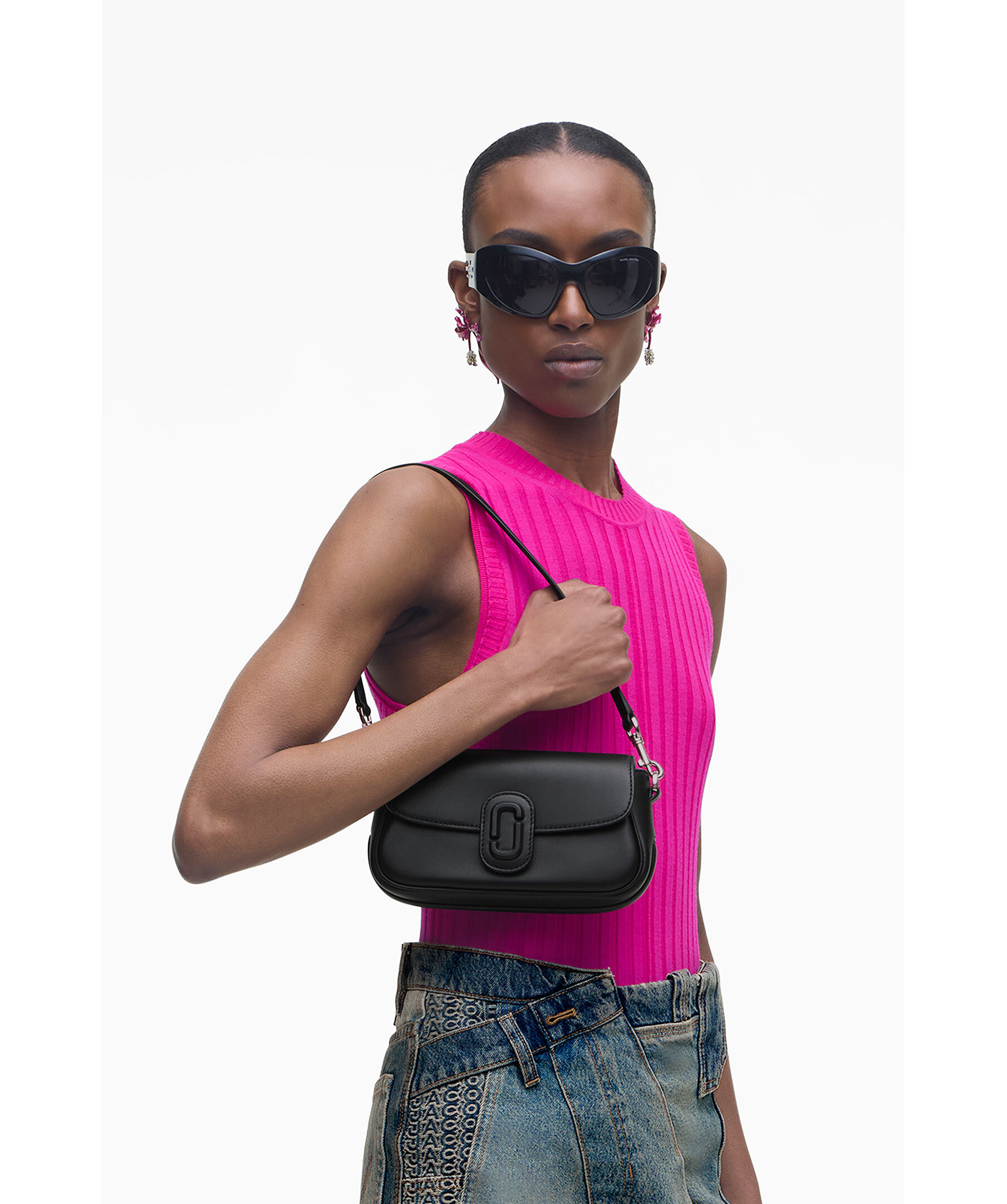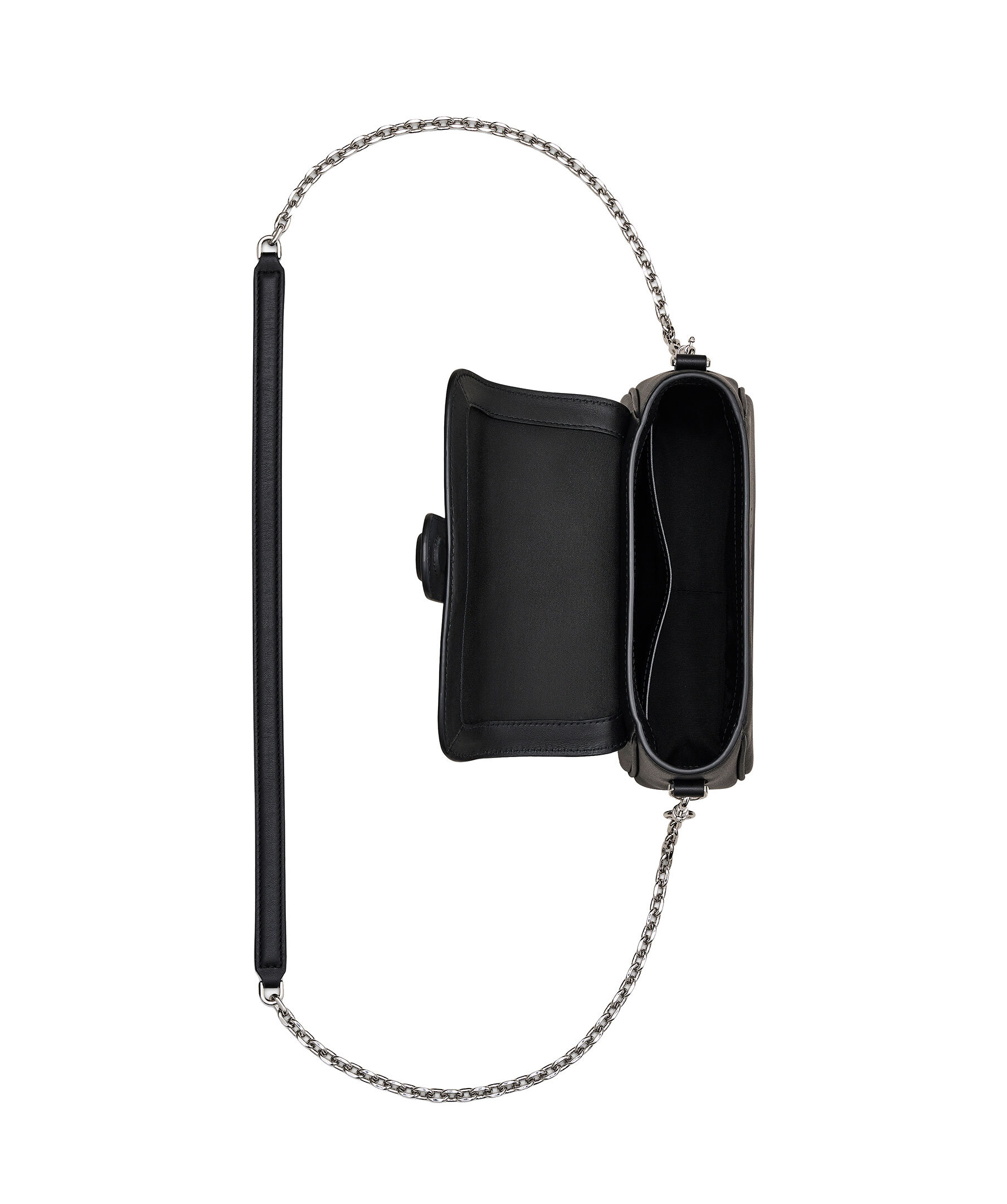 Svart axelväska i slätt läder från Marc Jacobs. Väskan har en enkel magnetisk stängning och signaturtäckt J Marc-försegling samt avtagbar axelrem i läder och en avtagbar crossbody-kedja. En invändig glidficka. Mått: B: 22cm, H: 12cm, D: 7cm.