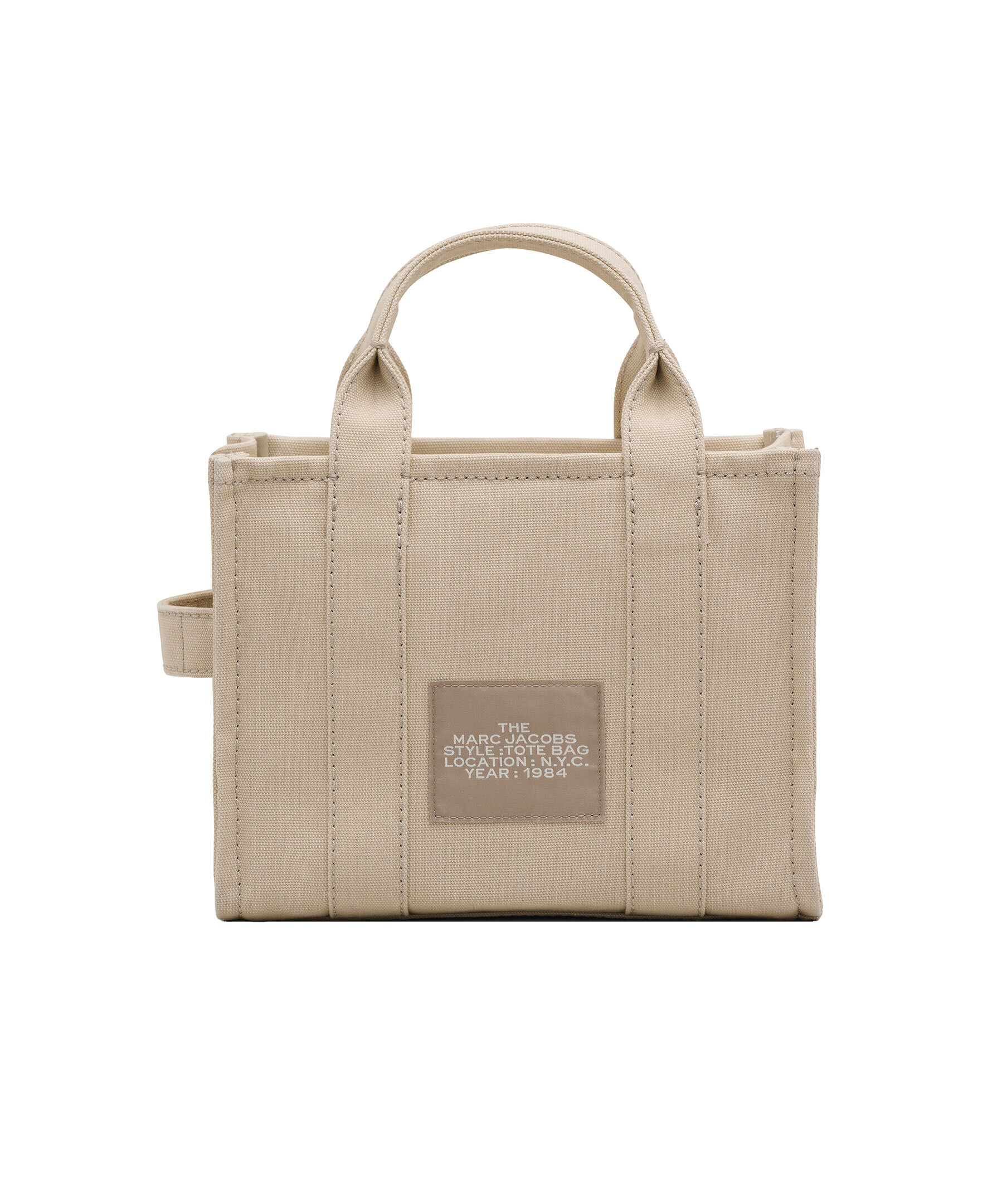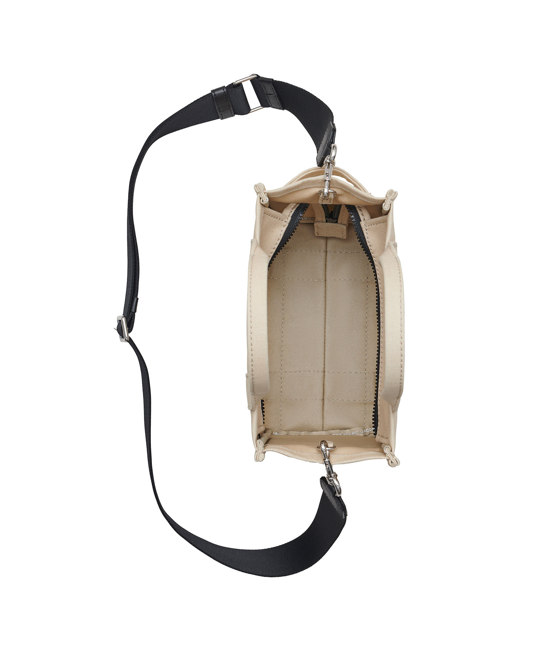 Beige, liten tote väska från Marc Jacobs. Tillverkad i en texturerad bomullscanvas. Tjock dragkedja upptill. Bär din i de övre handtagen eller fäst den justerbara, avtagbara crossbody-remmen för handsfree-styling. Mått: B: 26cm, D: 13cm, H: 21cm. Rem: 144cm x 4cm. Rem drop: 69cm. Handtag drop: 11cm.
