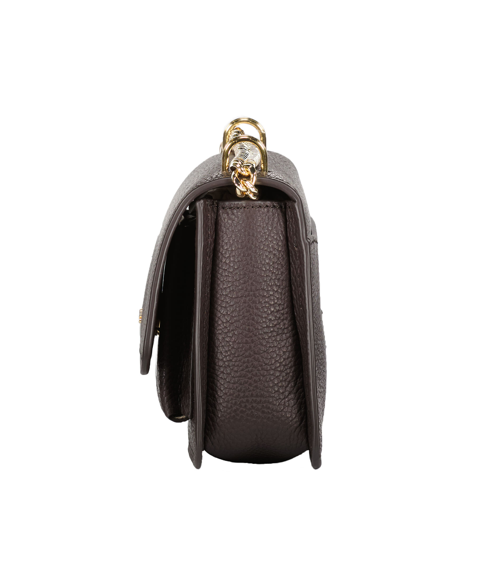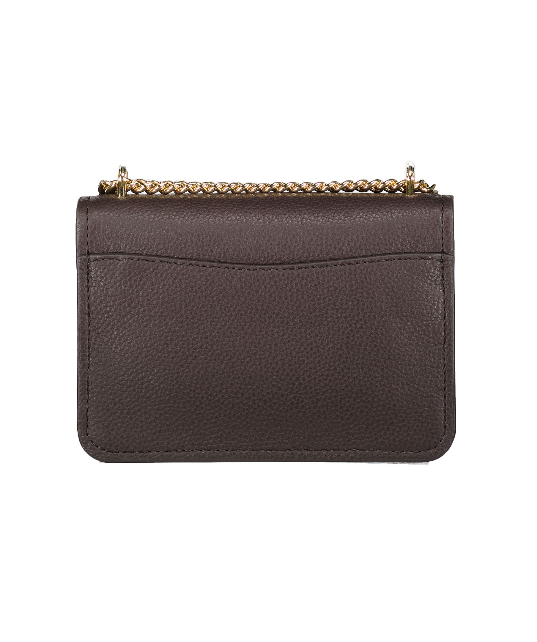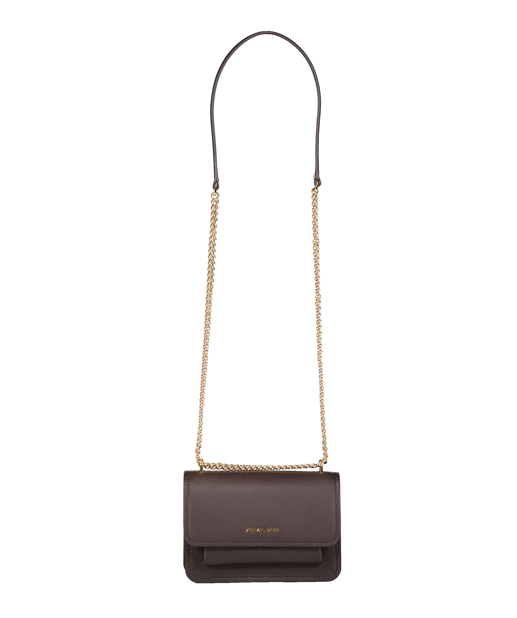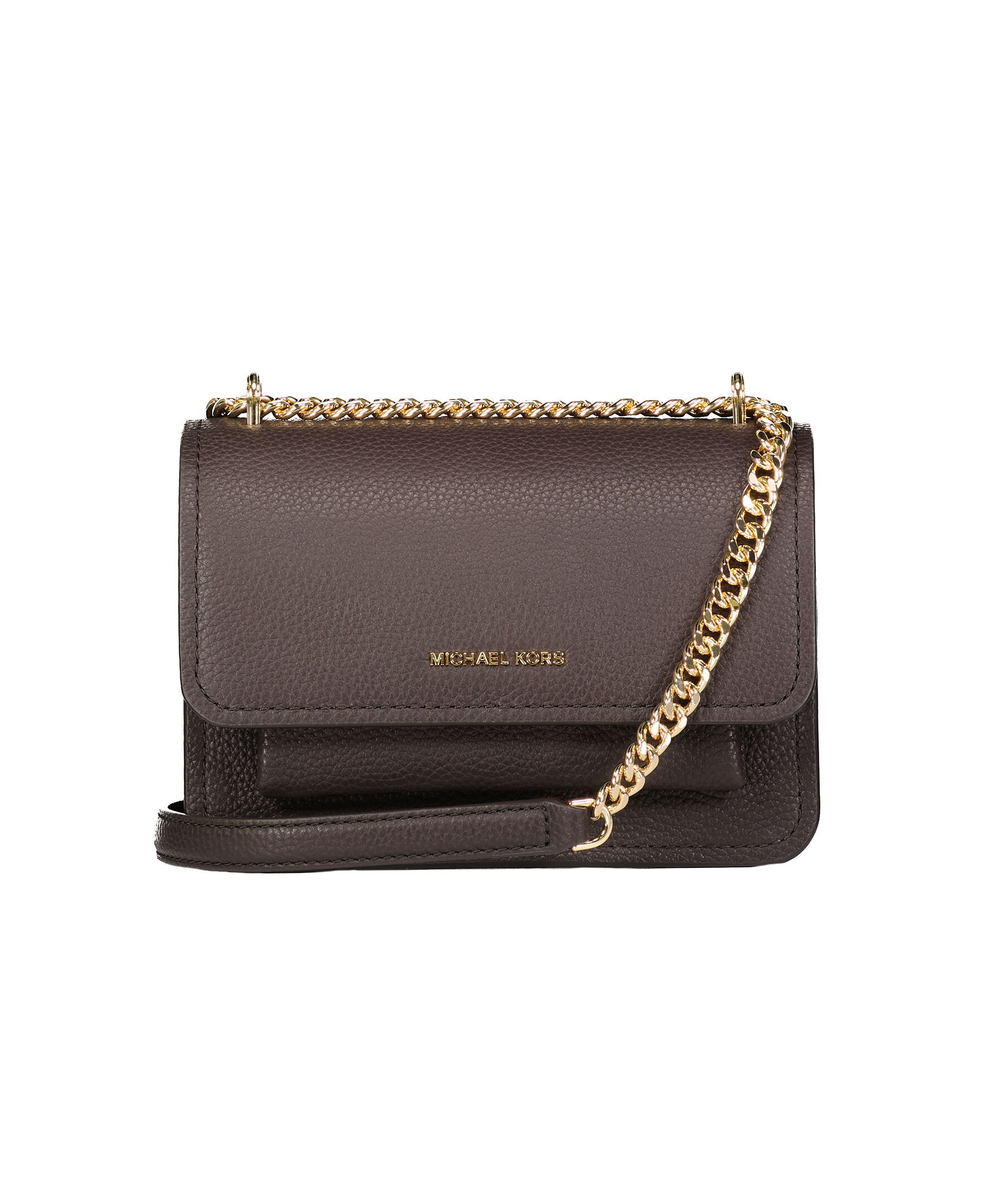 Liten chokladfärgad handväska från Michael Kors. Väskan har magnetiskt knapplås, innerfack med blixtlås och guldfärgad loggotyp på framsidan. Guldfärgad axelbandskedja på 55,5 cm som löper över väskans rygg.