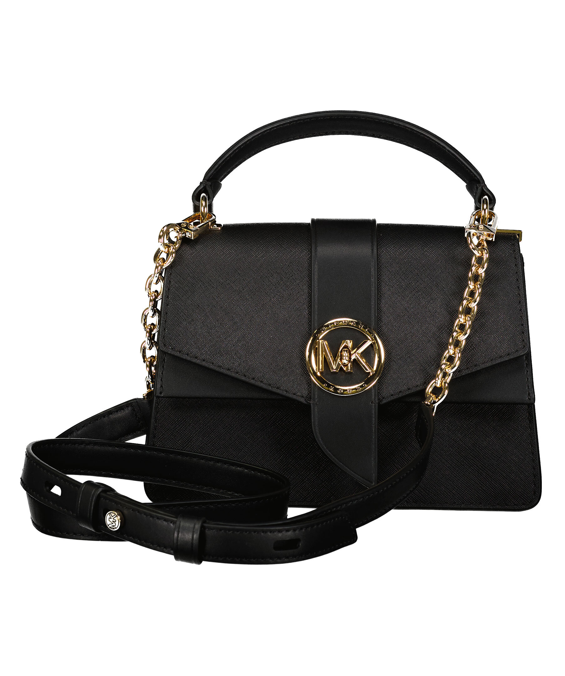 Svart crossbody-väska i Saffiano-läder från Michael Kors. Guldfärgad, elegant stängning med vridlås och en justerbar guldfärgad kedjerem - på plats med din telefon, kortfodral och nycklar i denna lilla väska. Justerbar axelrem och ett handtag uppe på väskan. Ficka fram under väsklocket och bak samt ett invändigt fack och tre kortfack. Foder i Polyester. Mått: 21 cm B x 15 cm H x 8 cm D. Justerbar axelrem: 32 cm - 55,5 cm.