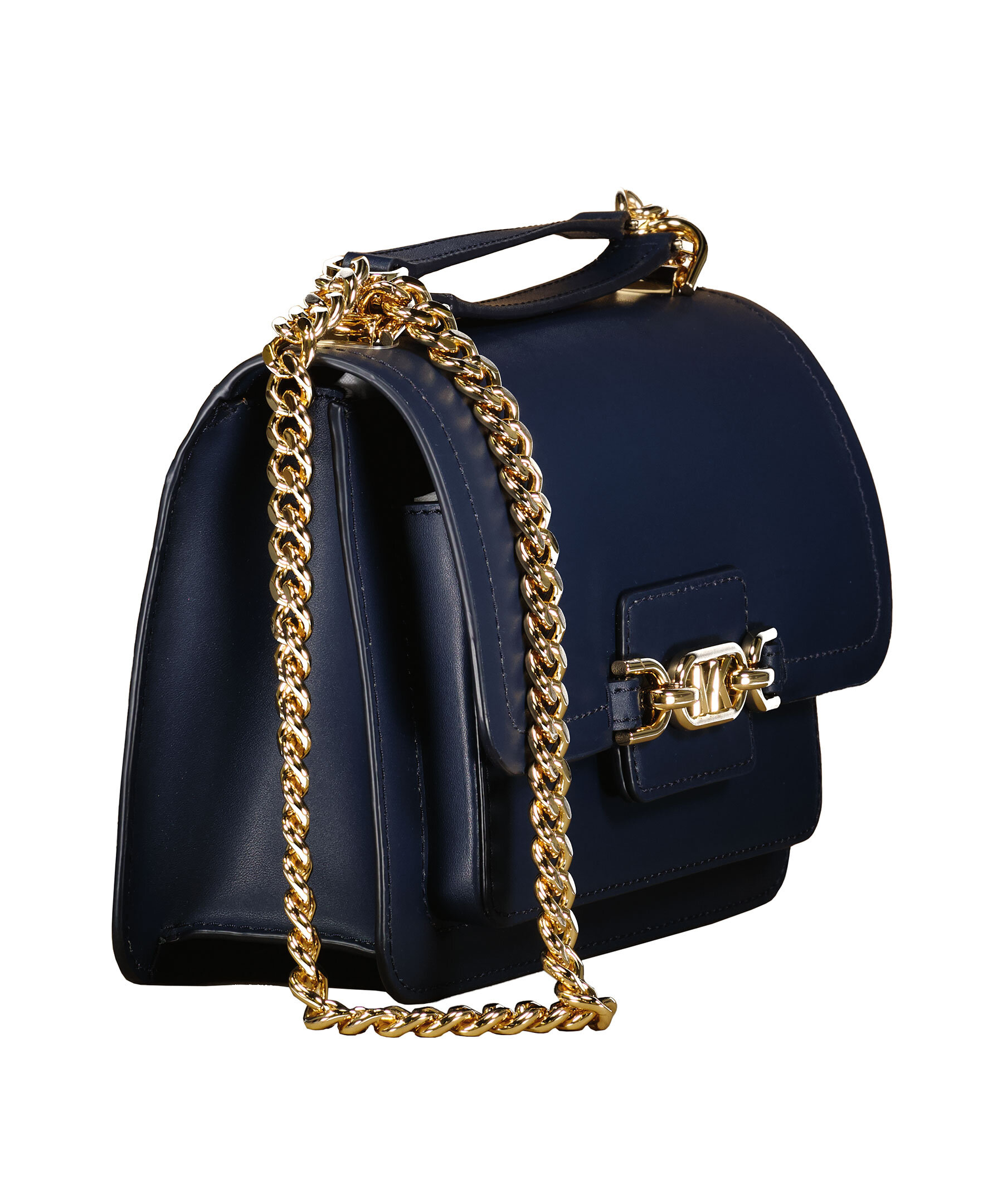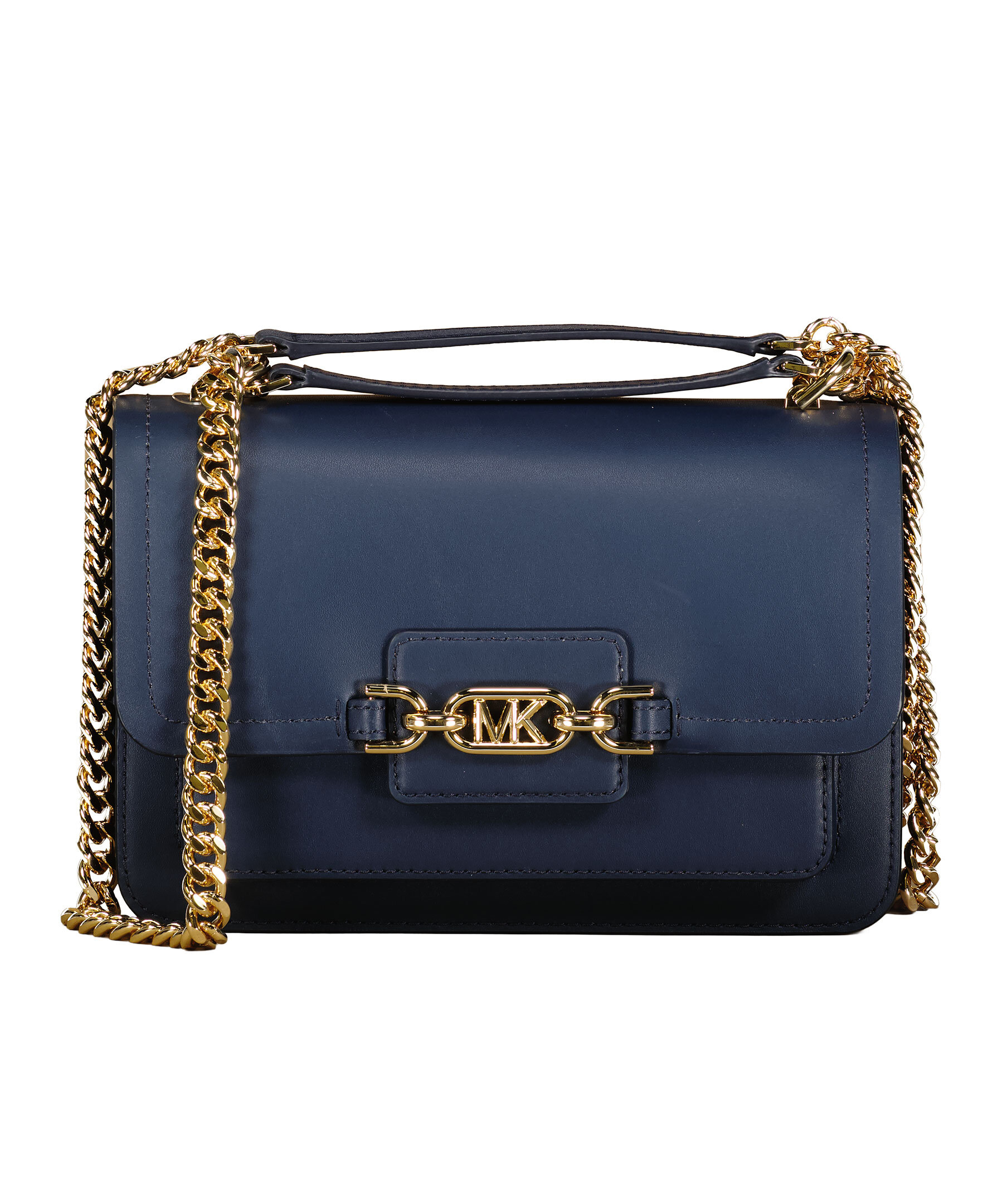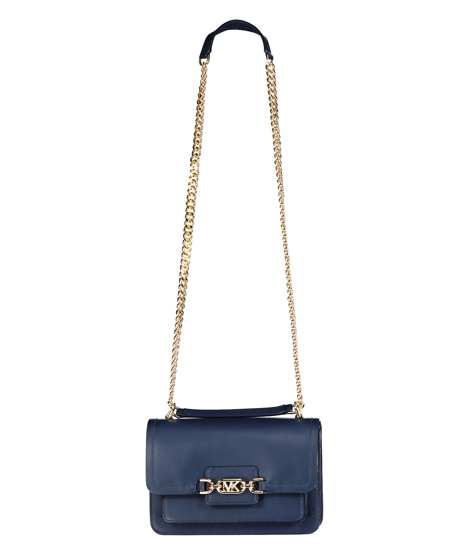 Mörkblå axelväska i läder från Michael Kors. Designad i en modern vikbar siluett med guldfärgade detaljer för en fin finish. Den har en perfekt storlek för att passa vardagliga saker med invändiga fickor att stoppa i din telefon och kortfodral. Bakficka med tryckknappsstängning, framficka och 6 kortfack på insidan. Justerbar axelrem med måtten: 29-53 cm. Mått på väskan: B 23,5 cm x H 18 cm x D 9 cm.