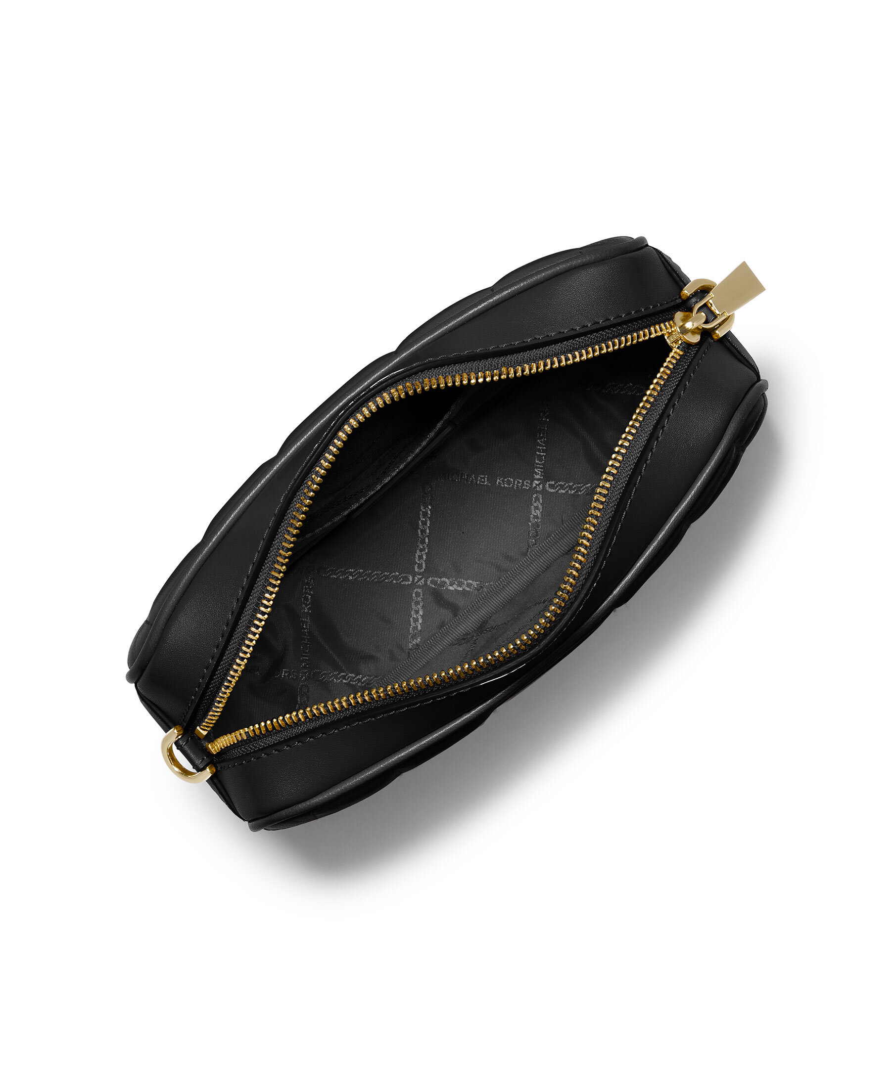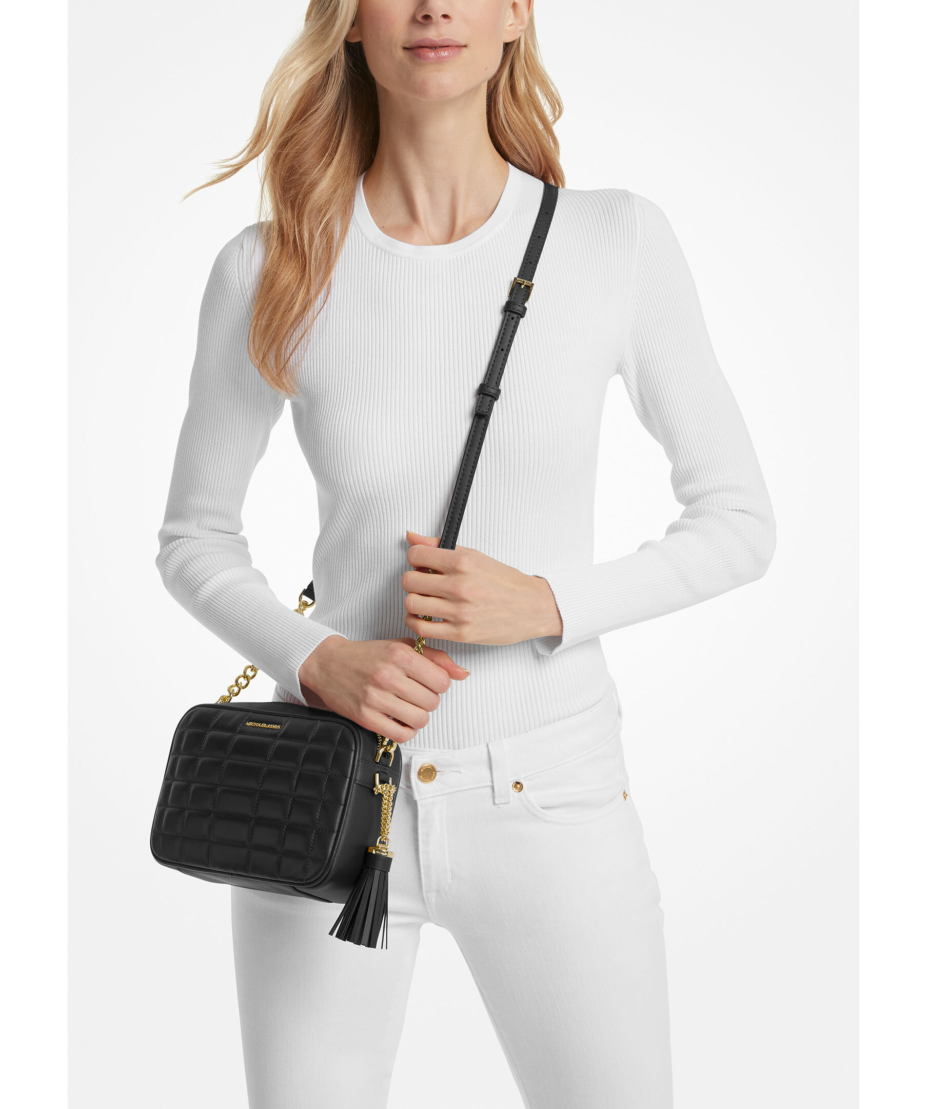Svart handväska från Michael Kors. Väskan har den perfekta balansen mellan diskret och lyxig, med en lätt strukturerad läderdesign som har en quiltad finish. Komplett med kedjelänkade accenter och en överdimensionerad tofs, är denna vardagsfavorit ett enkelt sätt att lyfta vilken outfit som helst. Stängs med dragkedja och har en justerbar rem. Tillverkad i 100% läder, foder tillverkat av 100% polyester. Mått: B: 22cm, H: 15cm, D: 5cm.