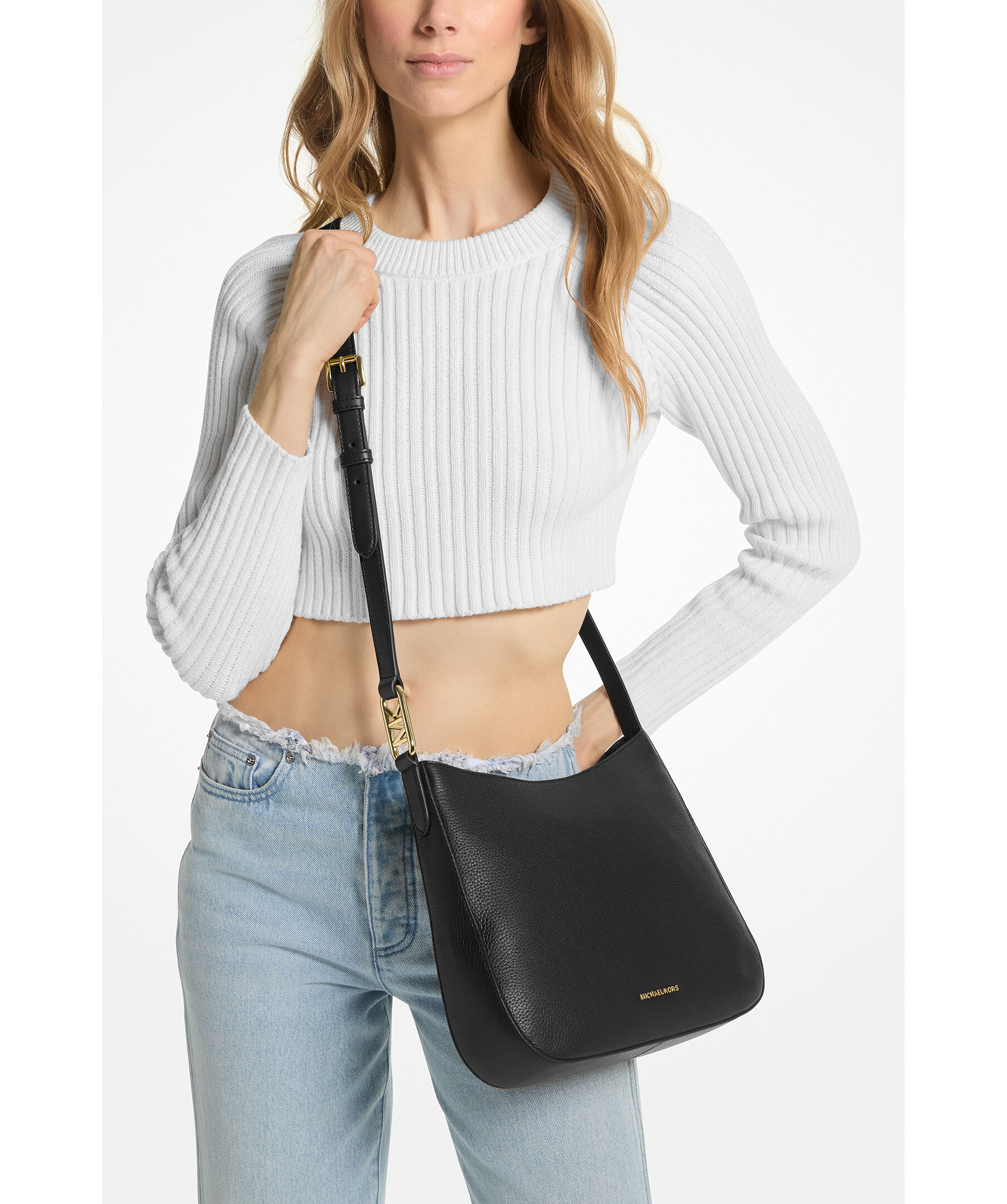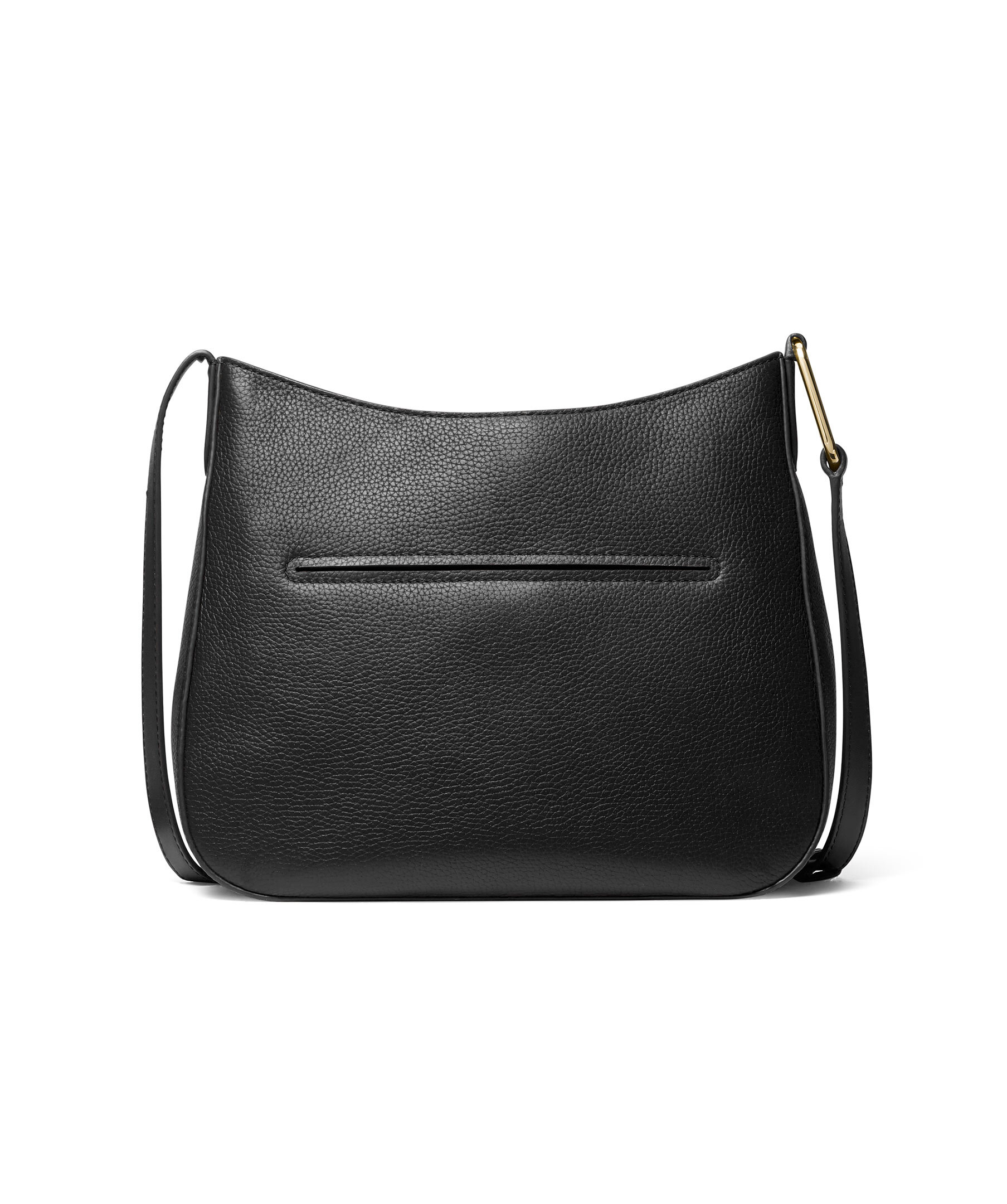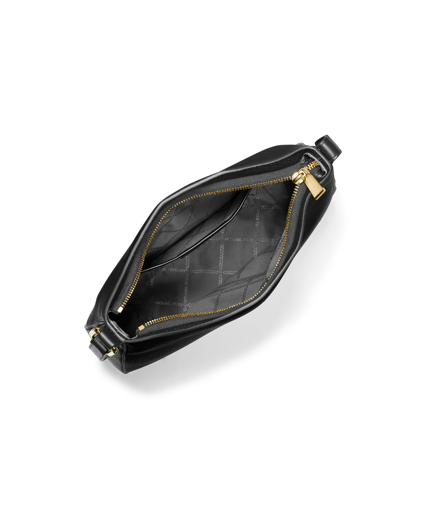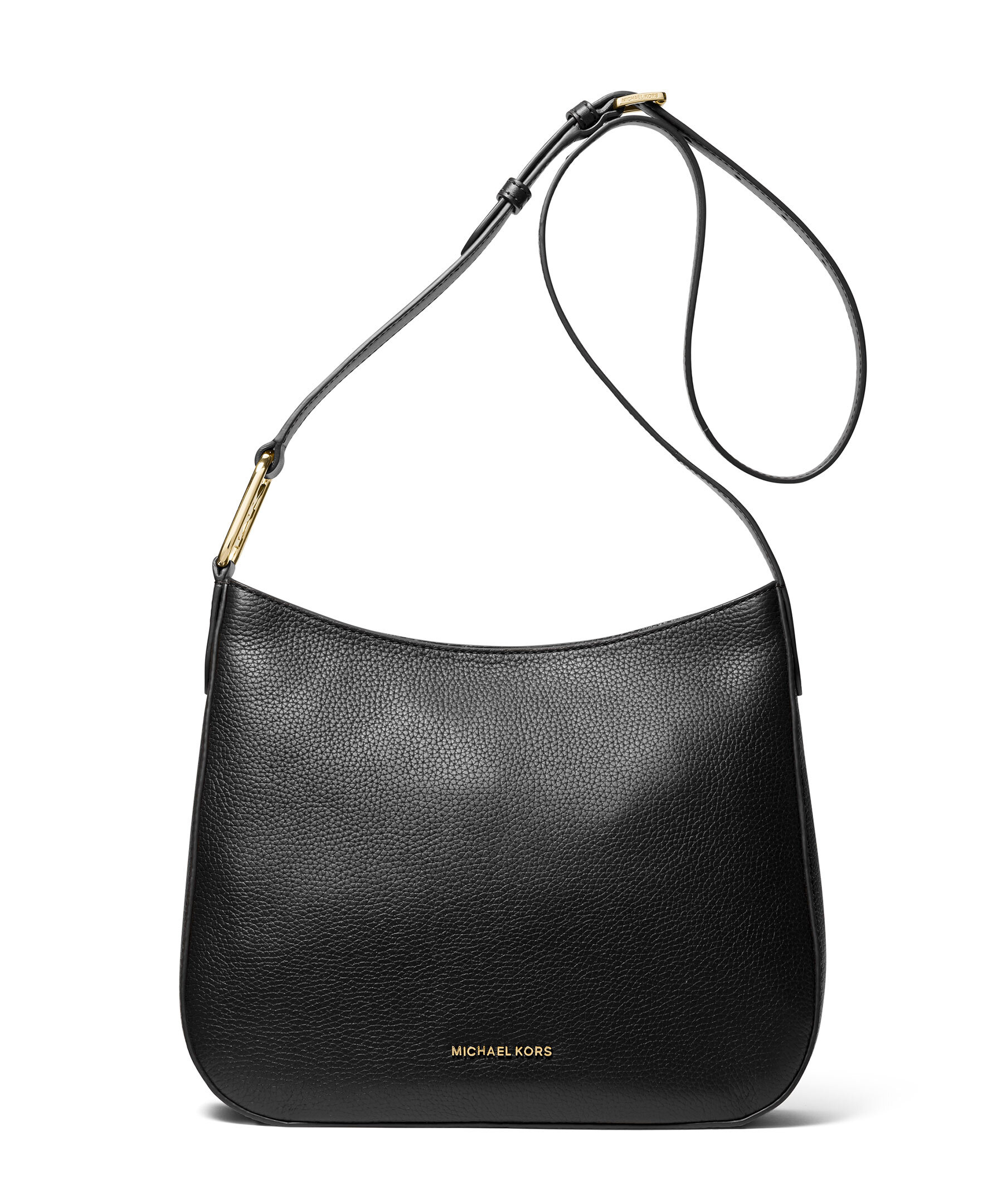 Svart crossbody väska från Michael Kors. Tillverkad av pebble läder och är uppdaterad med en elegant, minimalistisk form. Dess strömlinjeformade design har en bekväm axelrem. Huvudfacket med dragkedja håller dina väsentligheter säkra, medan invändiga och yttre fickor håller mindre föremål snyggt organiserade. Guldfärgad hårdvara. Justerbar rem: 47cm - 56cm. Mått på väskan: B: 29cm, H: 24cm, D: 7cm.