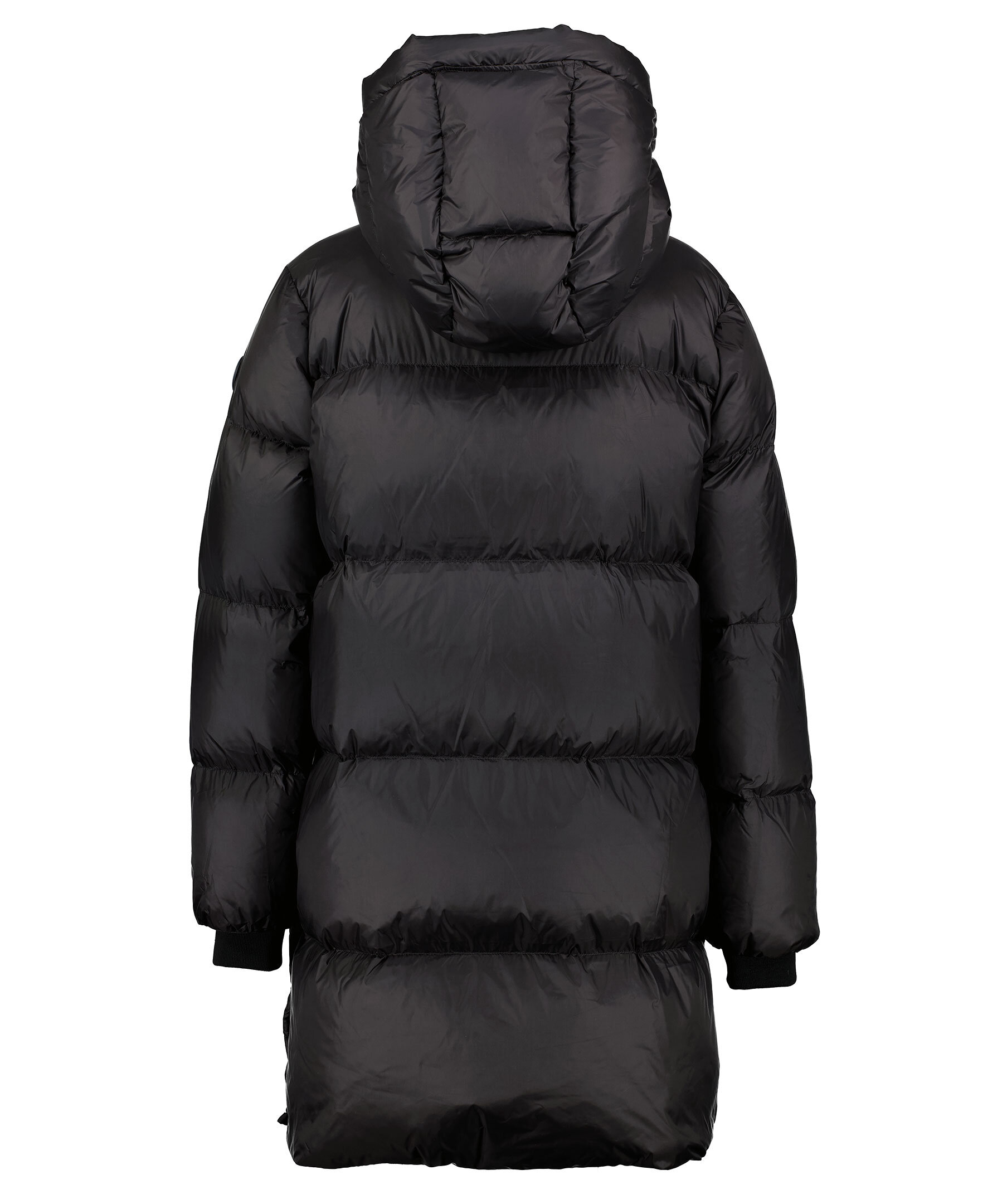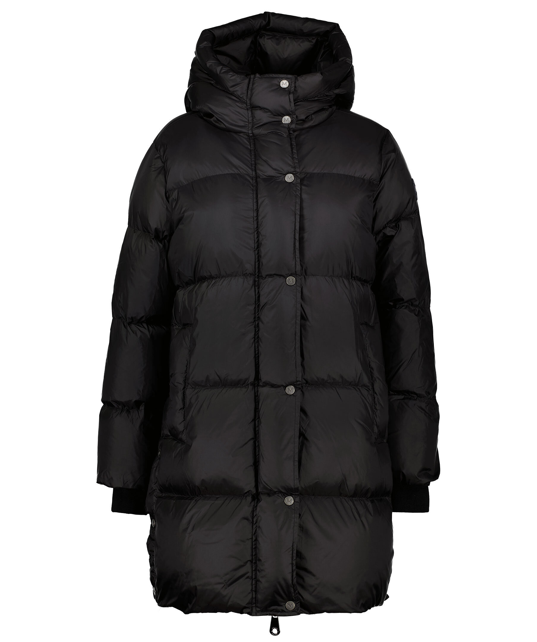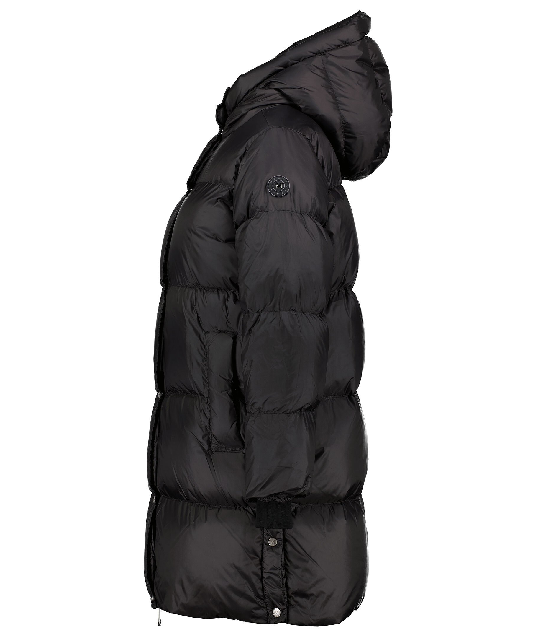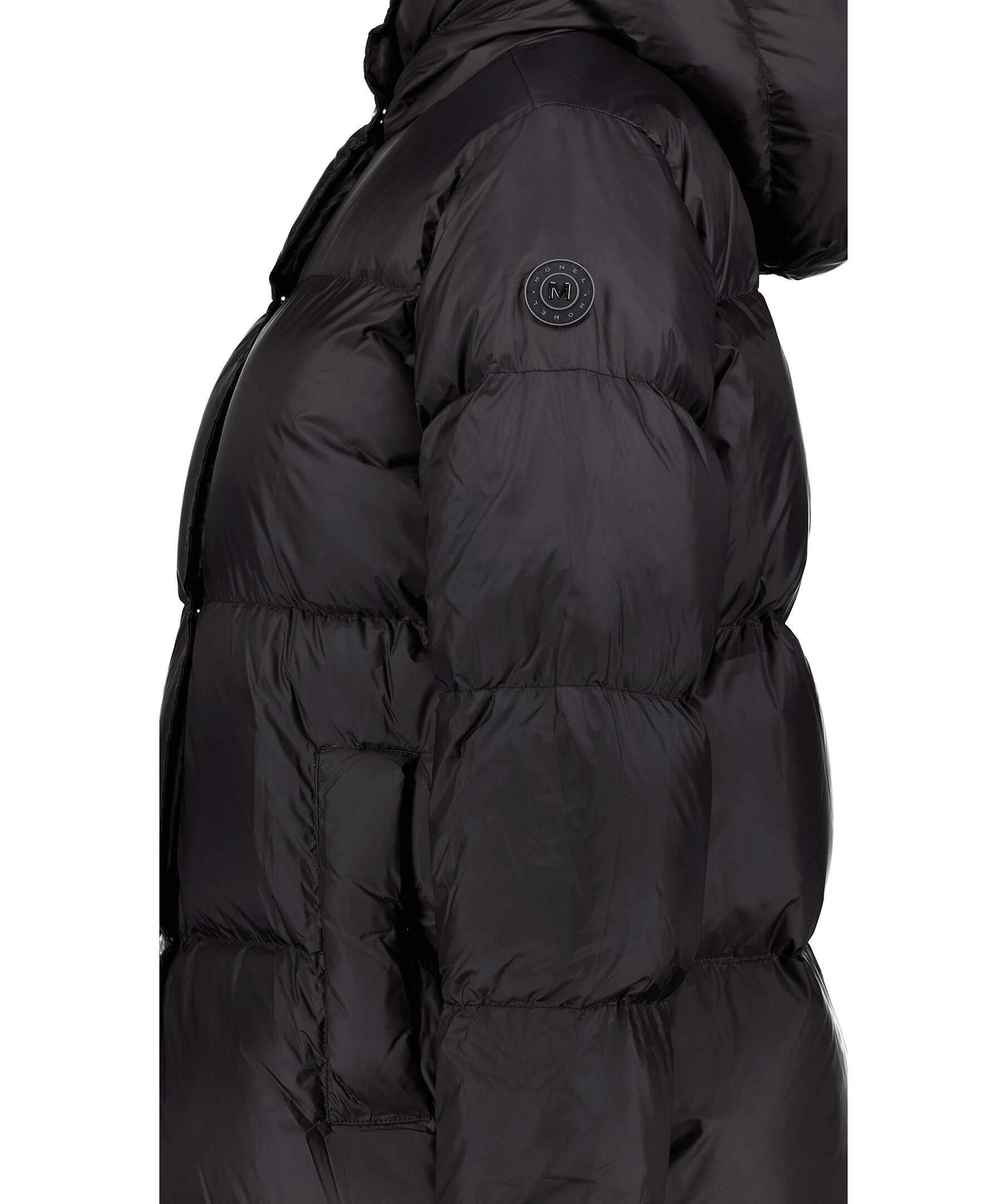 Svart quiltad dunjacka från Monel som stängs med tryckknappar och dragkedja. Två fickor framtill som stängs med tryckknappar. Innerfickor som stängs med dragkedja. Ribbstickade muddar vid ärmslut. Slitsar i sidorna med tryckknappar. Gummerad logotyp med metall på vänster ärm.