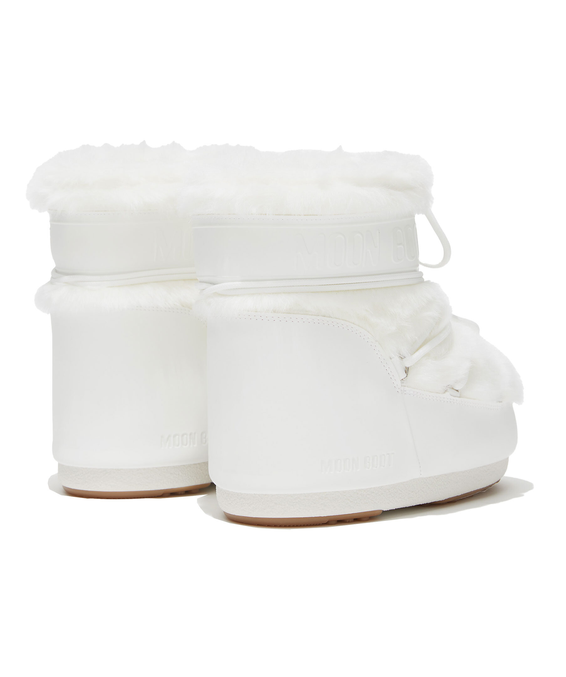 Vita, fluffiga boots från Moon Boot i en låg modell. Skorna har en ovandel i mjuk fuskpäls och är isolerade och utrustade med en lätt mellansula samt sugkuddar på gummisulan som ger bättre markkontroll. Logotyp runt skon samt snörning framtill. Dragsko upptill. 100% vattenavvisande. Skorna är inspirerade av månlandningen 1969.