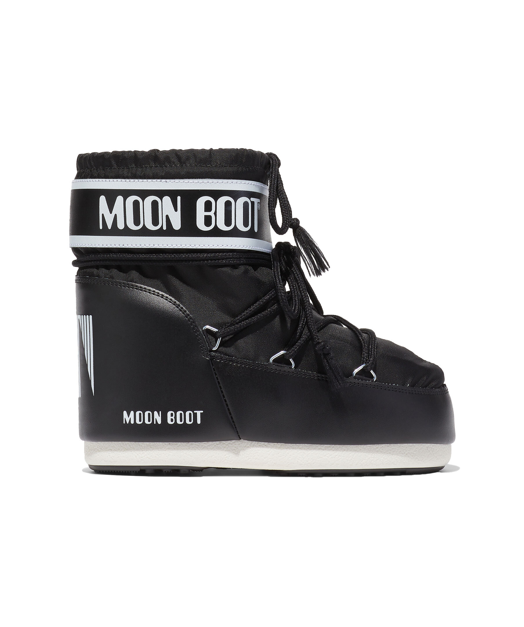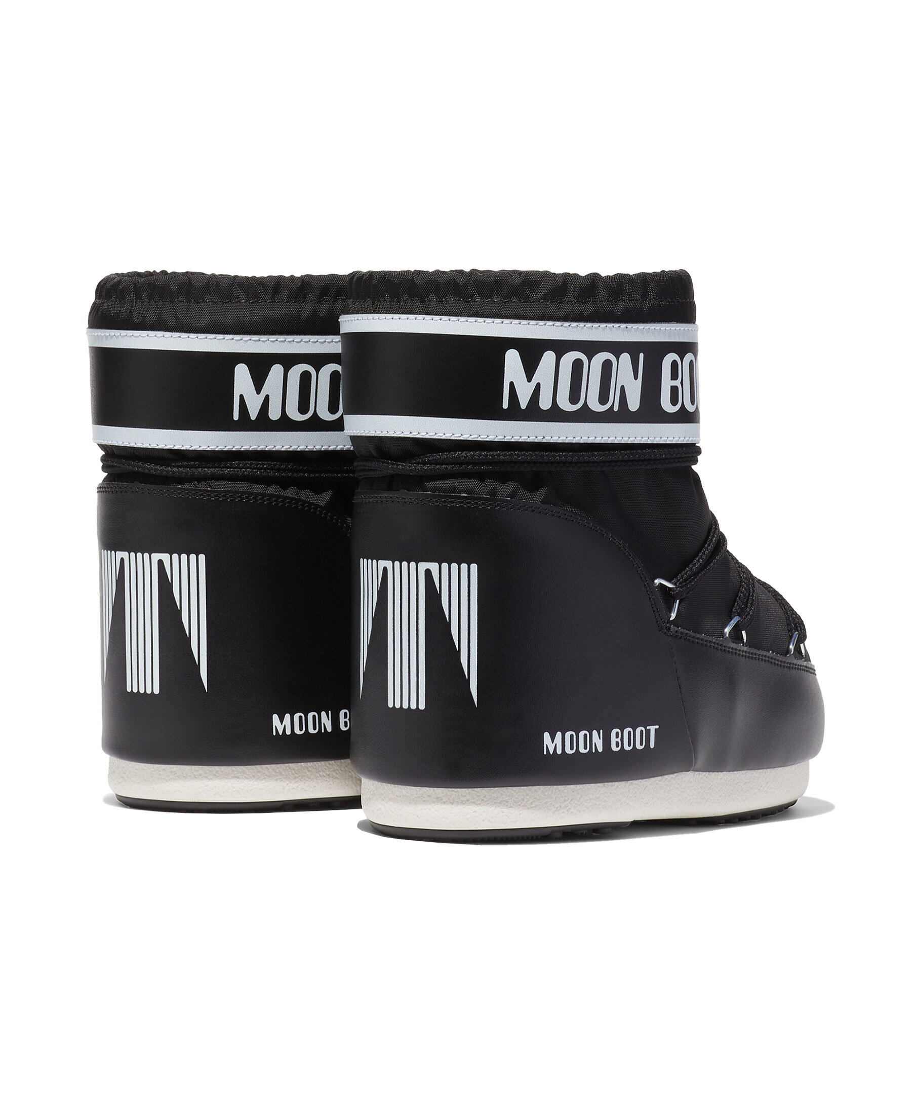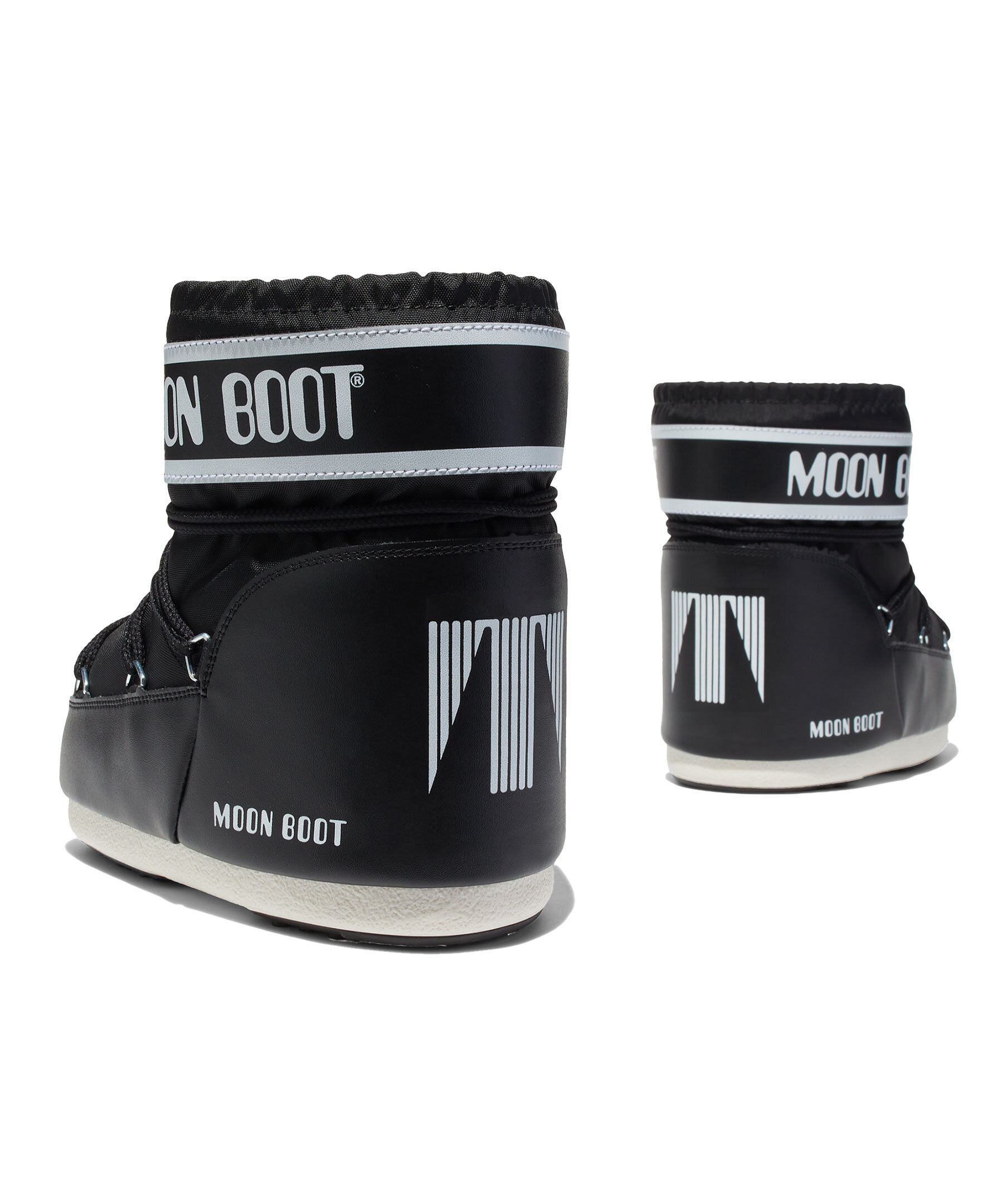 Svarta boots med vita detaljer från Moon Boot i en låg modell. Skorna är isolerade och utrustade med en lätt mellansula samt sugkuddar på gummisulan som ger bättre markkontroll. Logotyp runt skon samt snörning framtill. Dragsko upptill. 100% vattenavvisande. Skorna är inspirerade av månlandningen 1969.