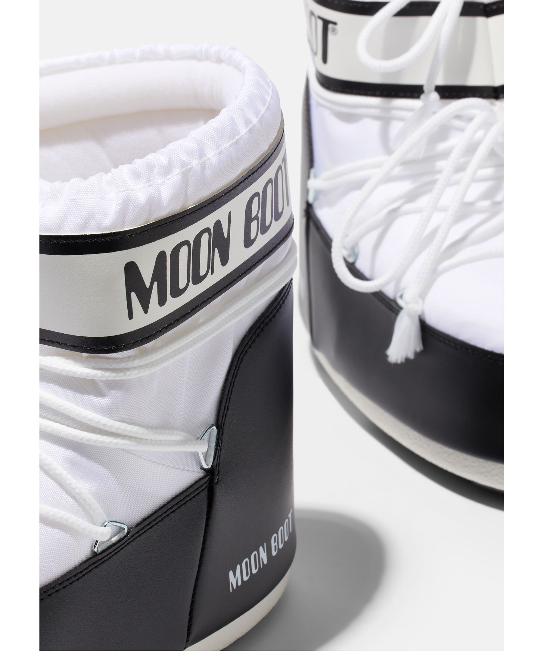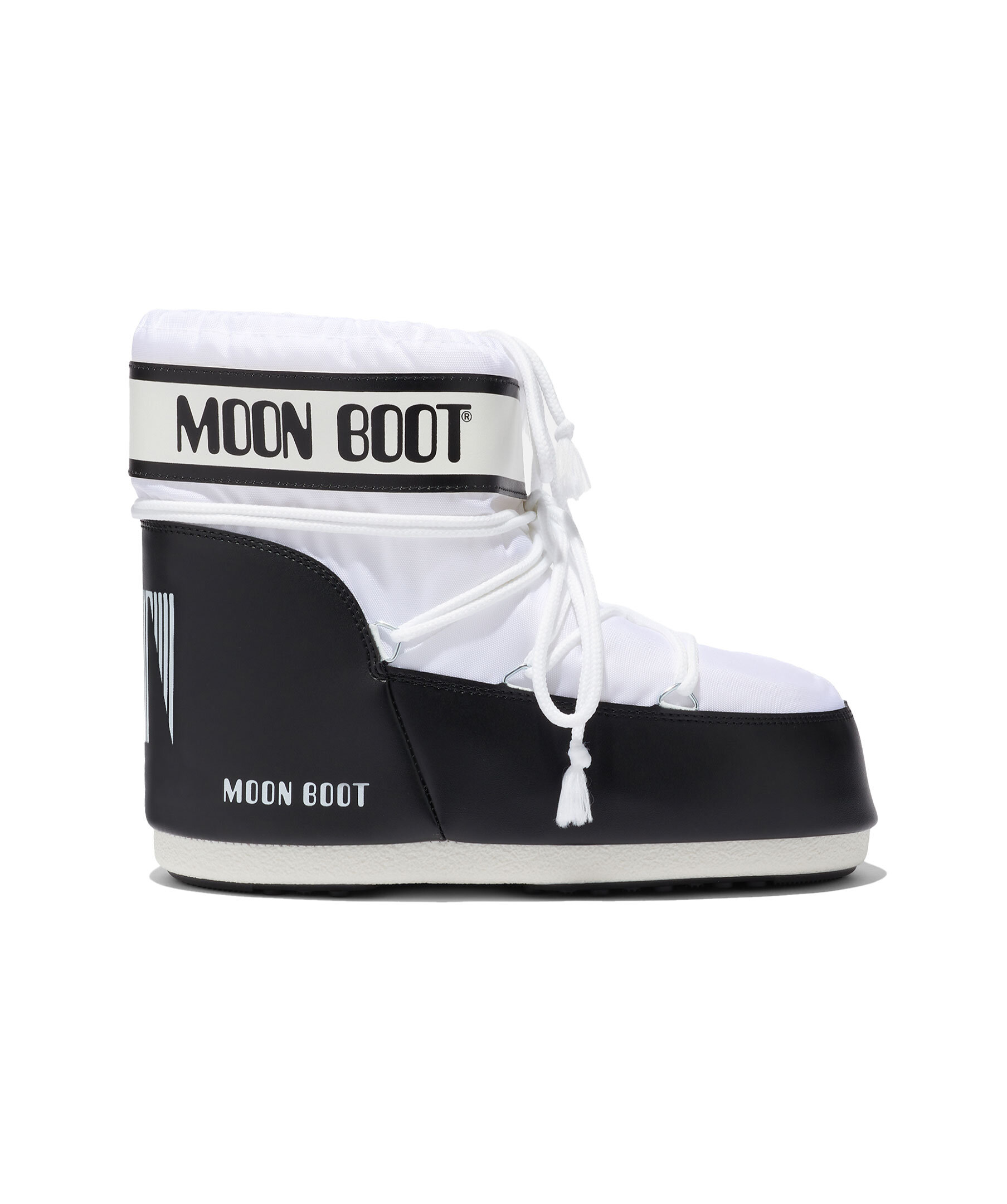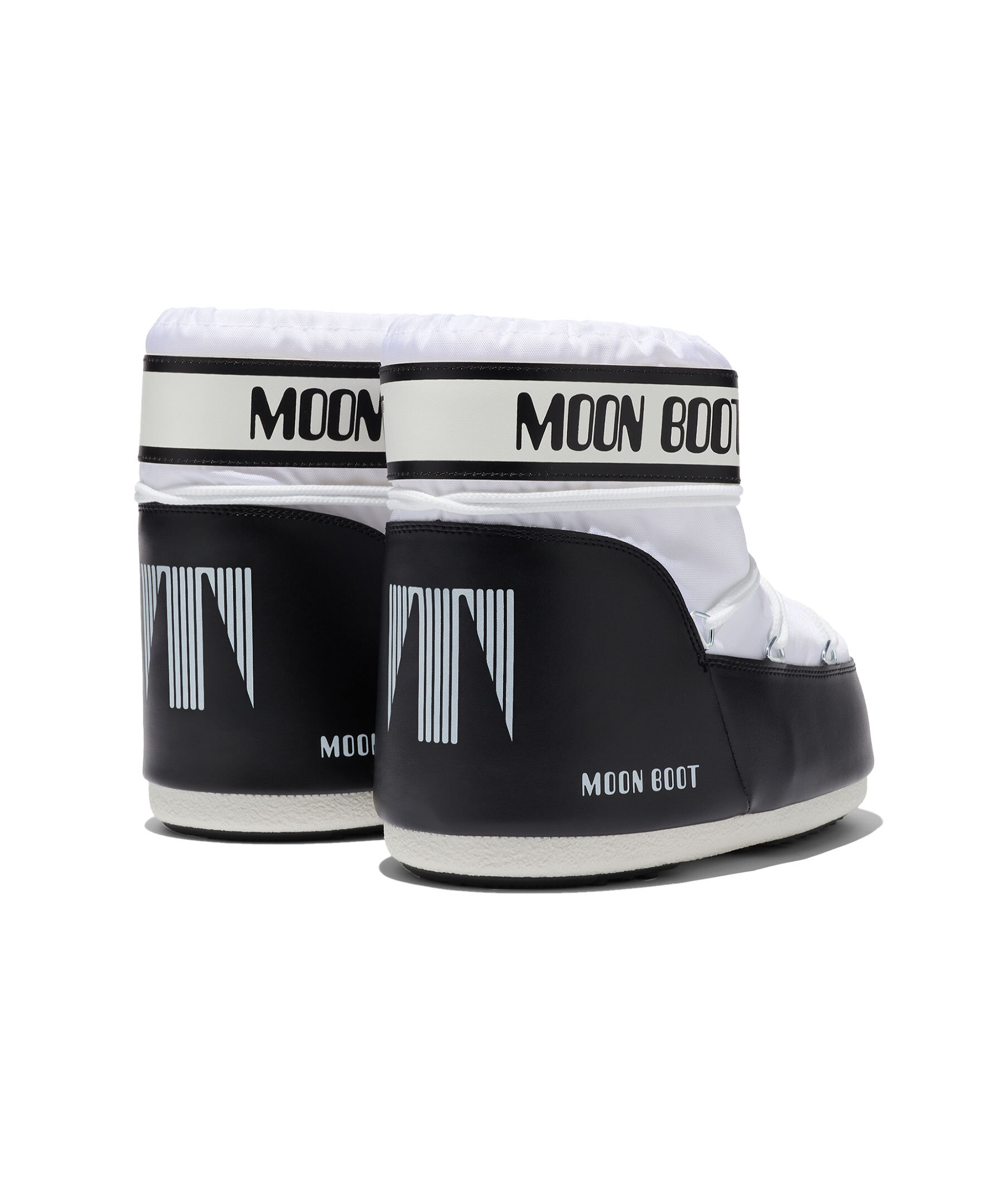 Vita boots med svarta detaljer från Moon Boot i en låg modell. Skorna är isolerade och utrustade med en lätt mellansula samt sugkuddar på gummisulan som ger bättre markkontroll. Logotyp runt skon samt snörning framtill. Dragsko upptill. 100% vattenavvisande. Skorna är inspirerade av månlandningen 1969.