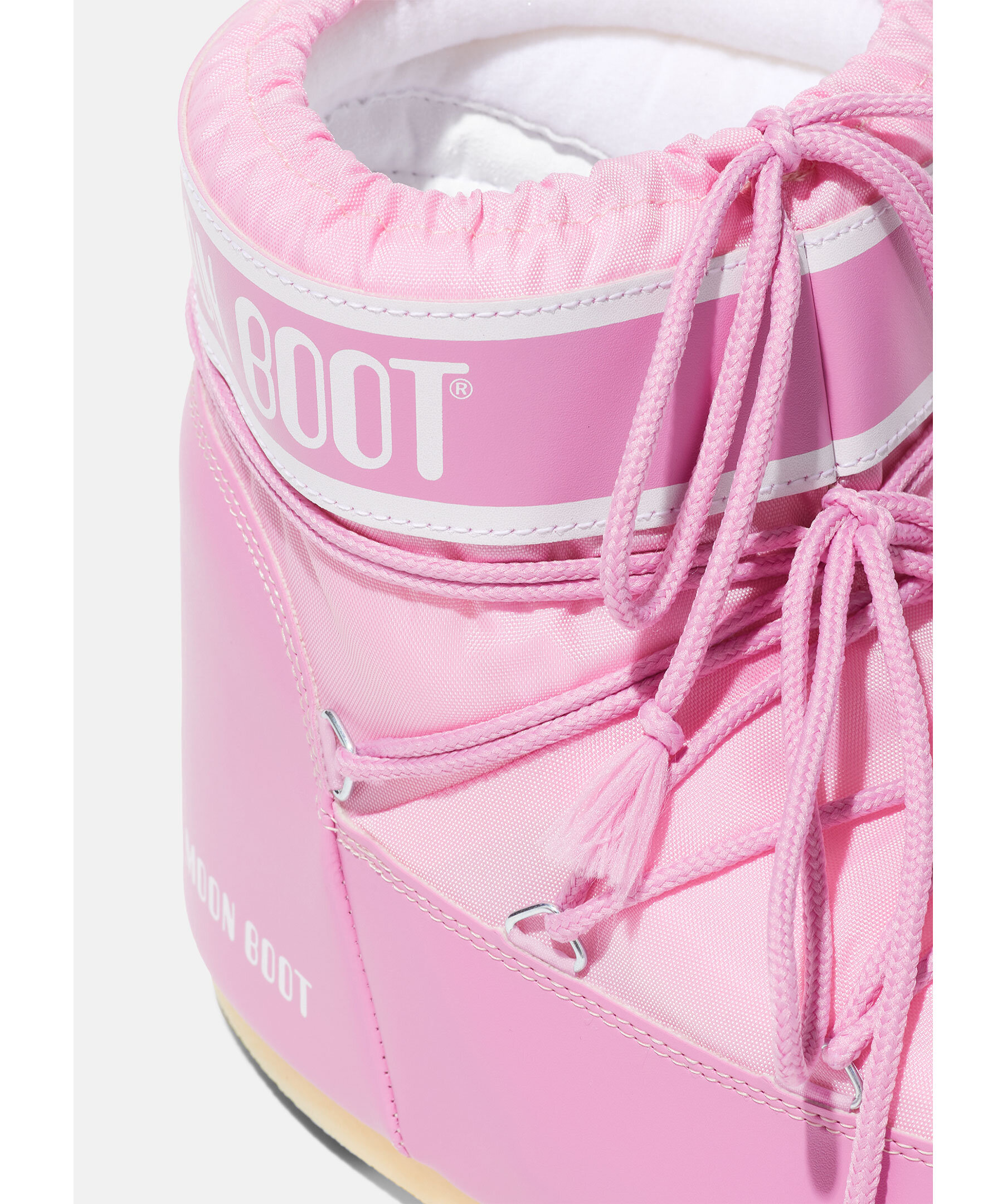 Ljusrosa boots från Moon Boot i en låg modell. Skorna är isolerade och utrustade med en lätt mellansula samt sugkuddar på gummisulan som ger bättre markkontroll. Logotyp runt skon samt snörning framtill. Dragsko upptill. 100% vattenavvisande. Skorna är inspirerade av månlandningen 1969.