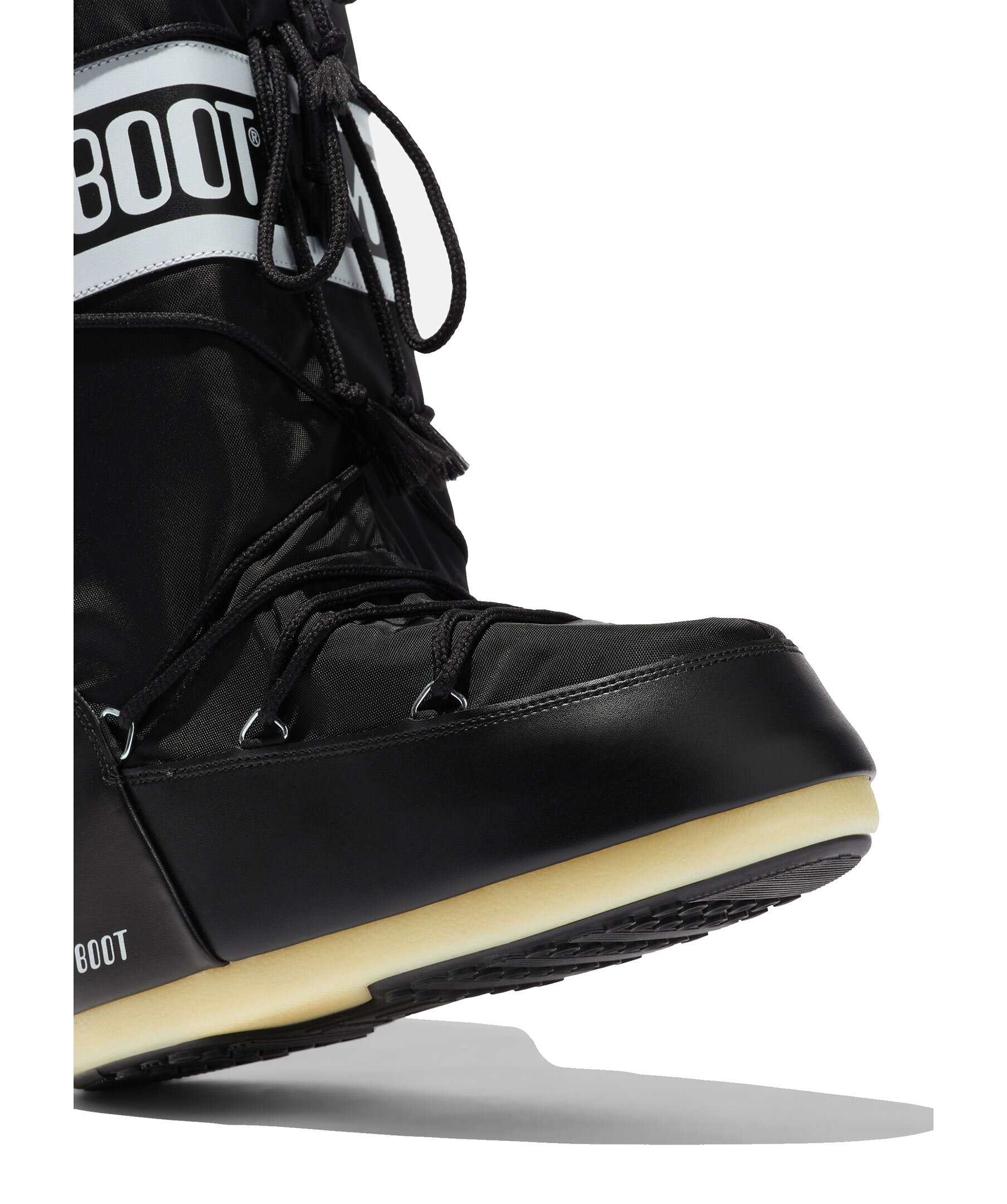 Svarta höga boots från Moon Boot. Skorna är isolerade och utrustade med en lätt mellansula samt sugkuddar på gummisulan som ger bättre markkontroll. Logotyp runt skon samt snörning framtill. Dragsko upptill. 100% vattenavvisande. Skorna är inspirerade av månlandningen 1969.
