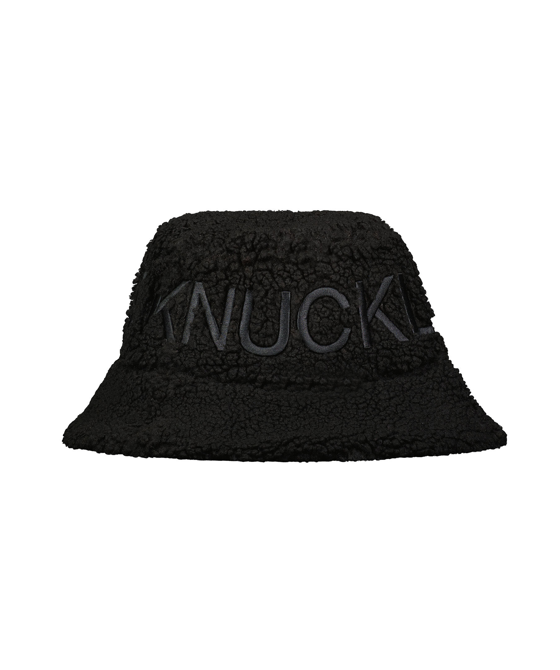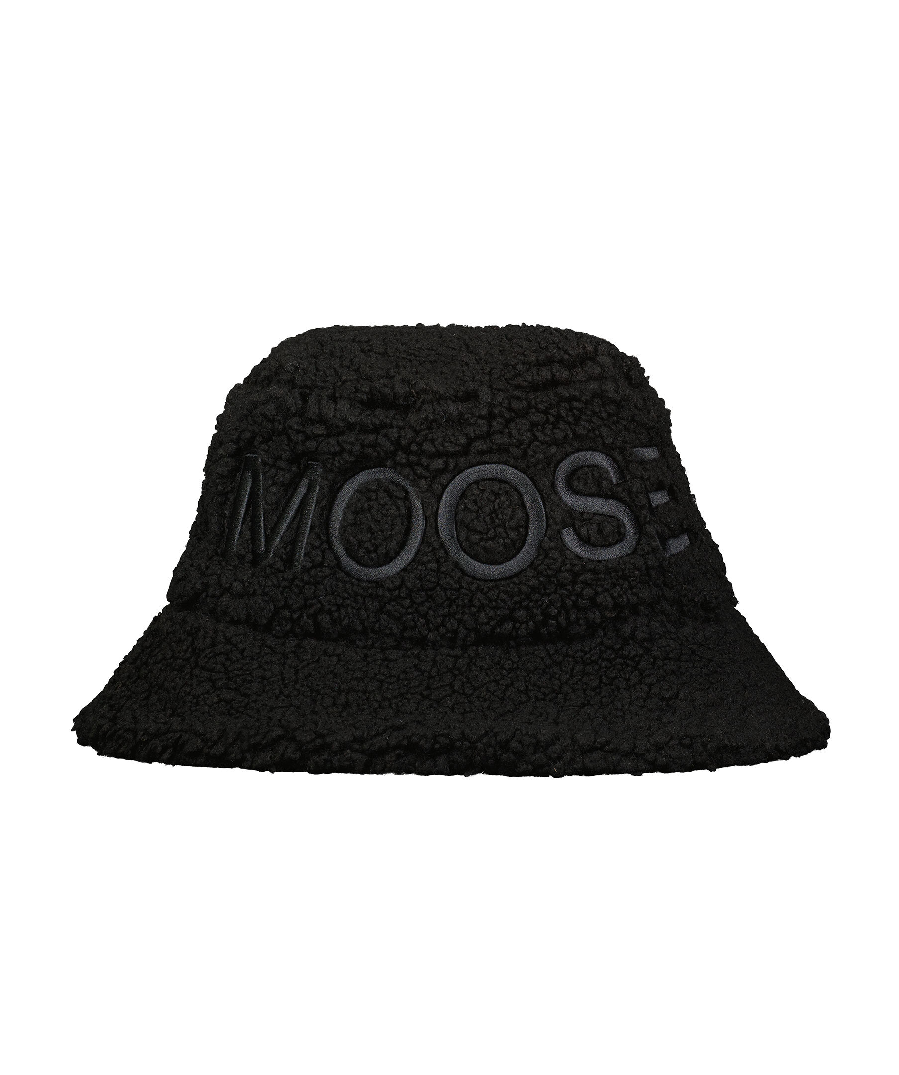 Svart bucket hat i mjukt piletyg från Moose Knuckles. Tillverkad av varm och luddig återvunnen sherpa i polyester, den har en bred kant runt om för att skydda ditt ansikte från snö och vind samt har en svart, 3D-broderad logotyp med stora bokstäver fram.