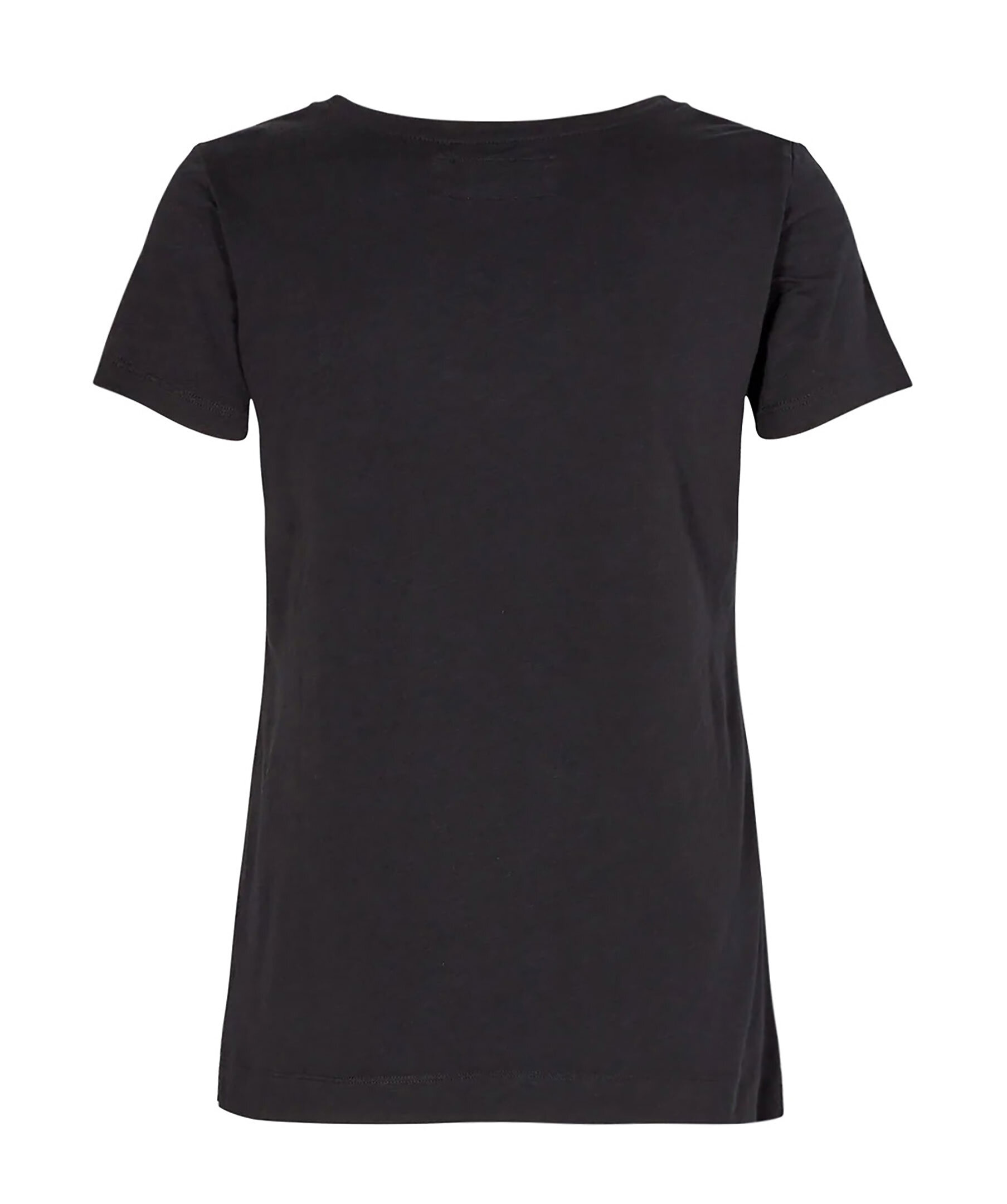 Svart t-shirt tillverkad av ekologisk bomull för en andningsbar och mjuk känsla från Mos Mosh. Slimmad siluett och v-ringning fram.