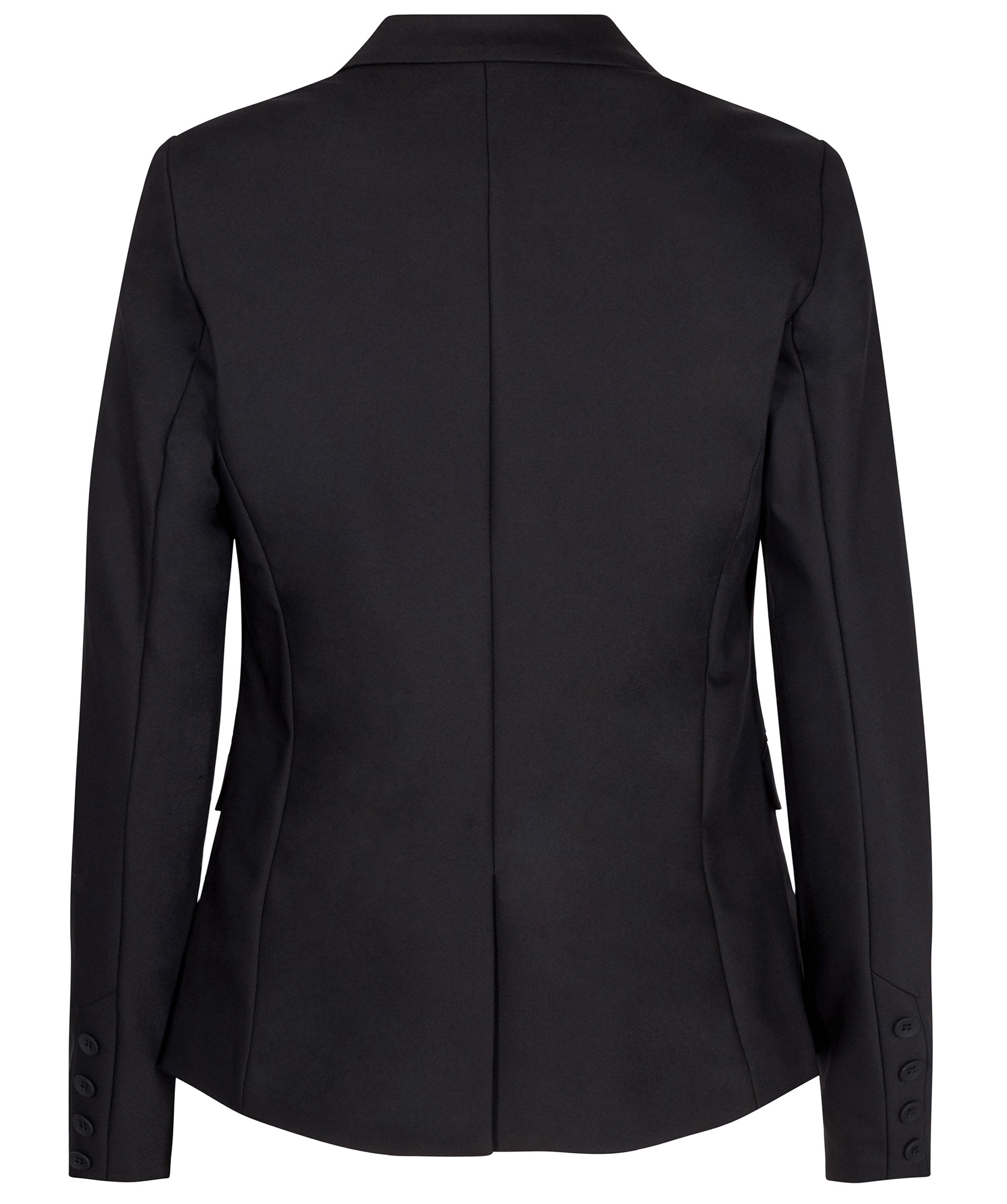 Svart kavaj från Mos Mosh tillverkad i stretchig bomull och återvunnen polyamid. Långärmad med fyra knappar längs ärmslut och stängs med en knapp i mitten fram. Två framfickor med lock.