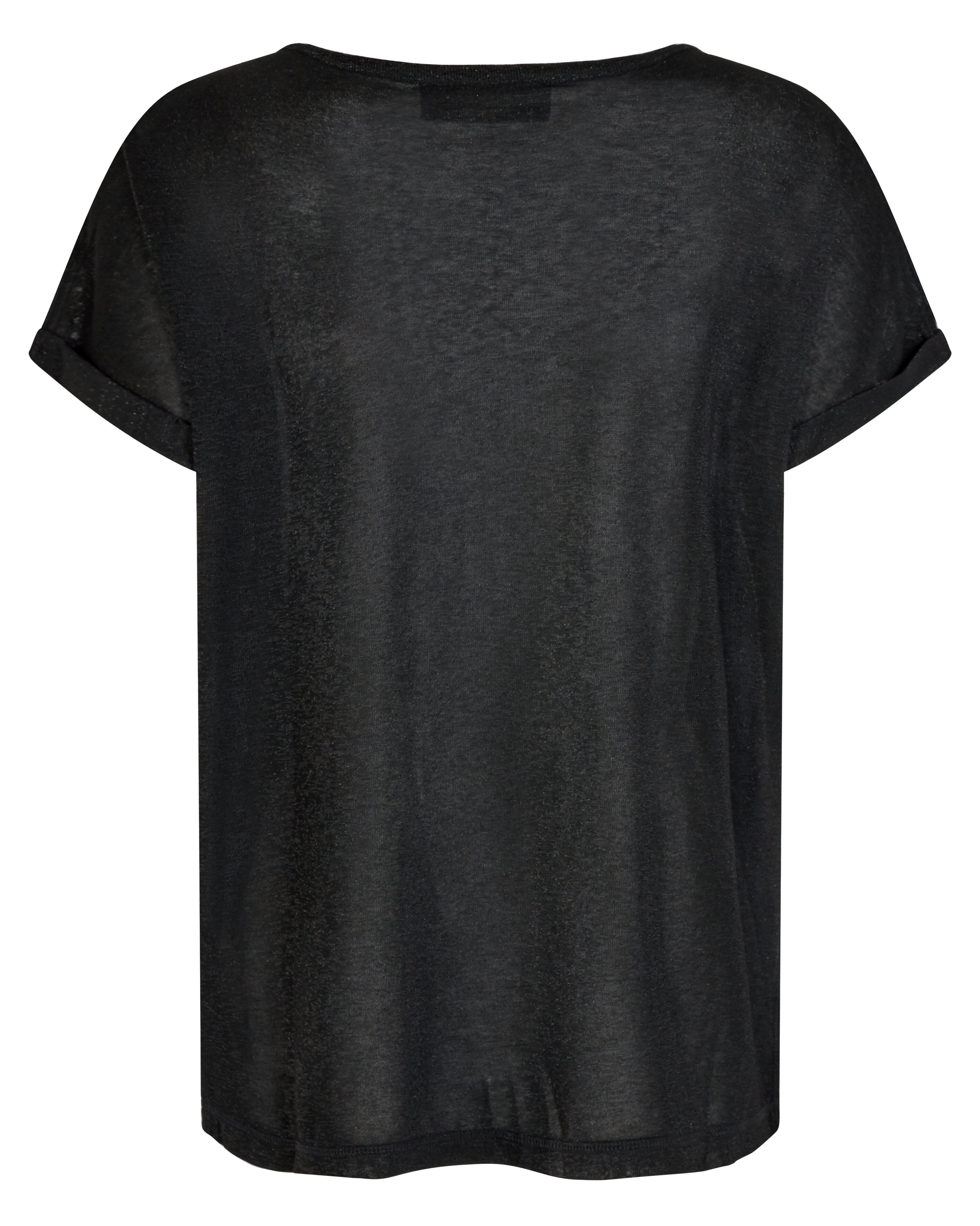 Svart finstickad t-shirt med glittriga trådar från Mos Mosh. Avslappnad passform, logotyp i metall vid plaggslut i plaggslut.