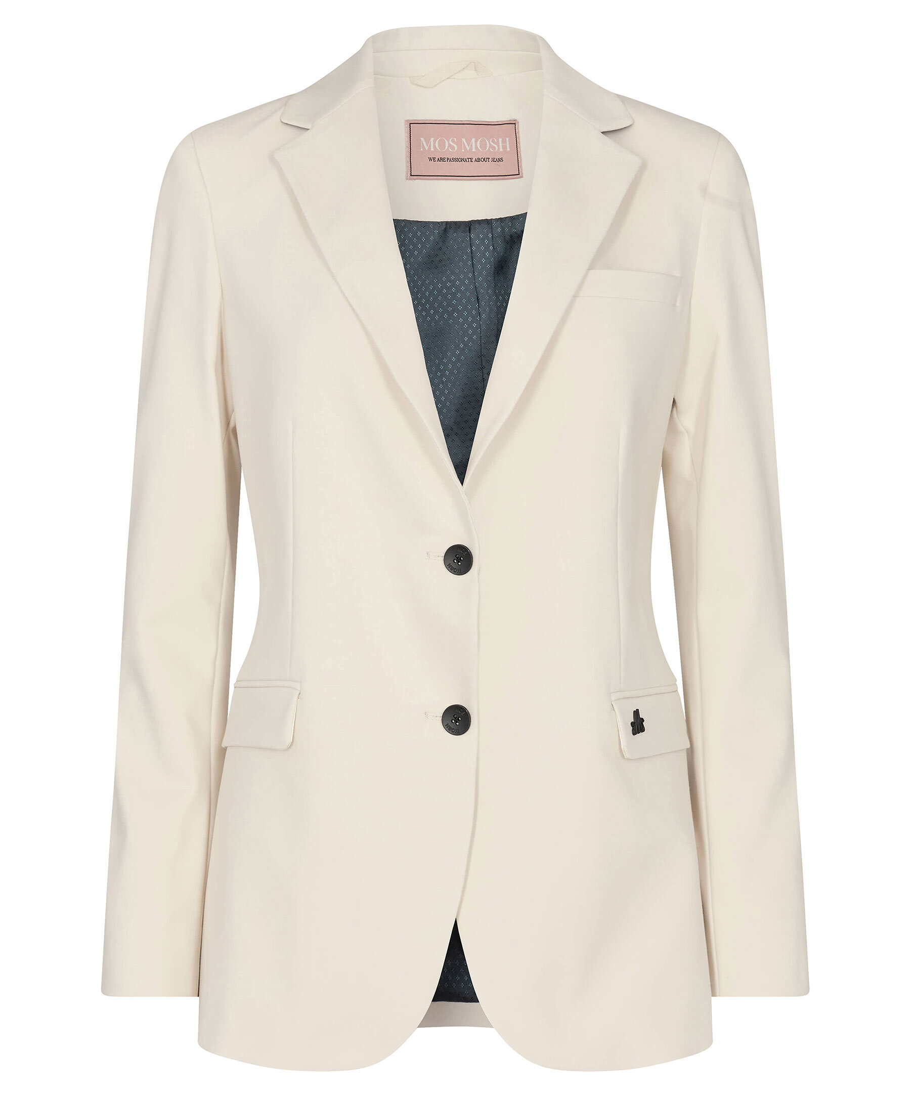 Ljusbeige kavaj från Mos Mosh i en avslappnad passform. Gjord i en bomullsblandning, två knappstängning, två framfickor med ficklock och en bröstficka.