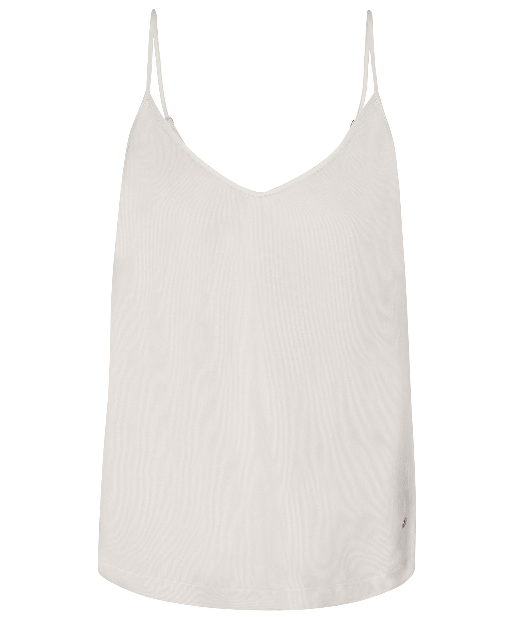 Ljusbegie linne i sammet från Mos Mosh. Tillverkad i viskostyg. Tunna justerbara axelband. Finspårigt mönster i tyget för en manchester liknande uttryck. Liten logga i metall på plaggets nederkant.