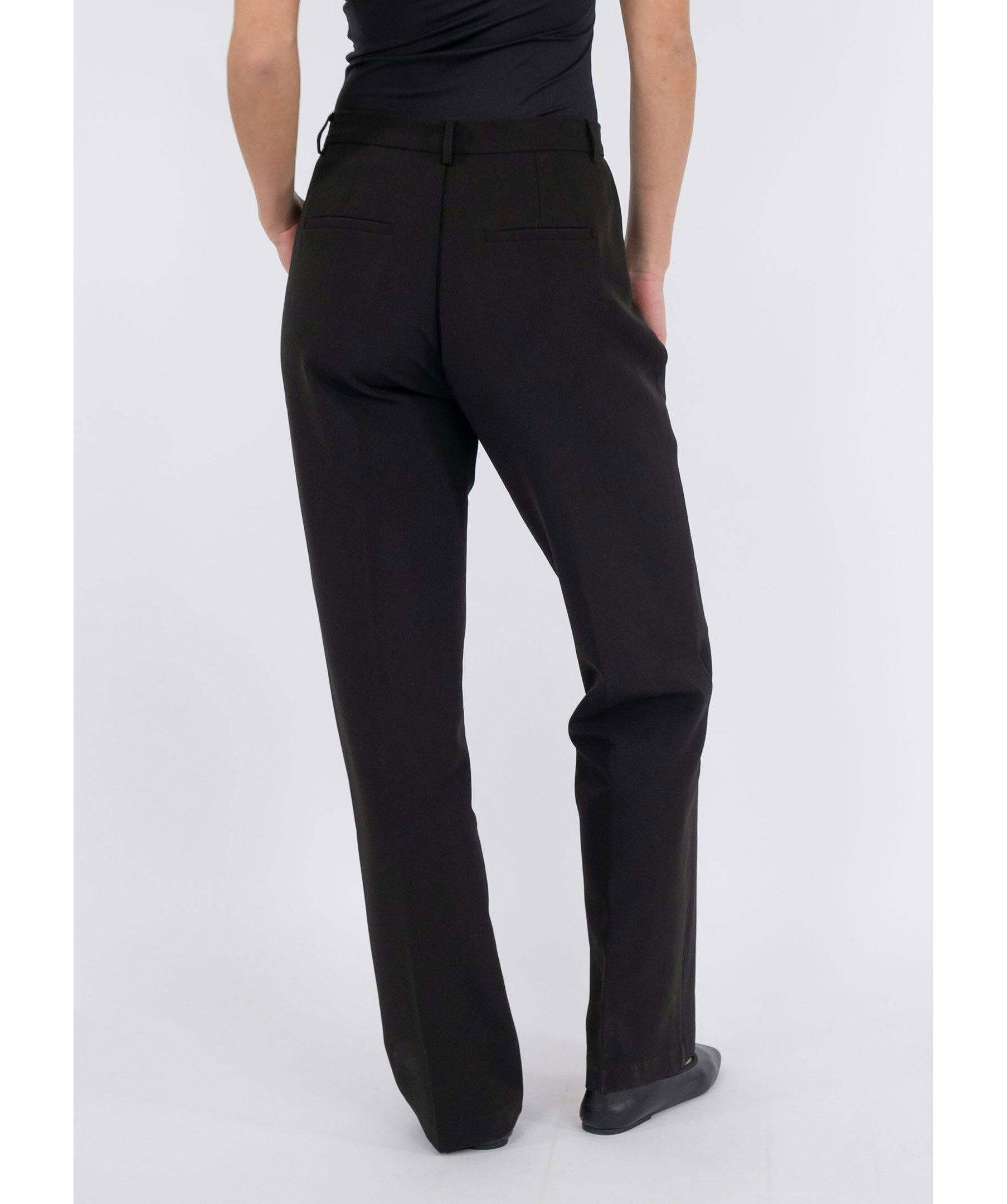 Svarta kostymbyxor från Neo Noir. Byxorna har bälteshällor i midjan, breda ben samt pressveck. Tillverkade i en polyesterblandning.